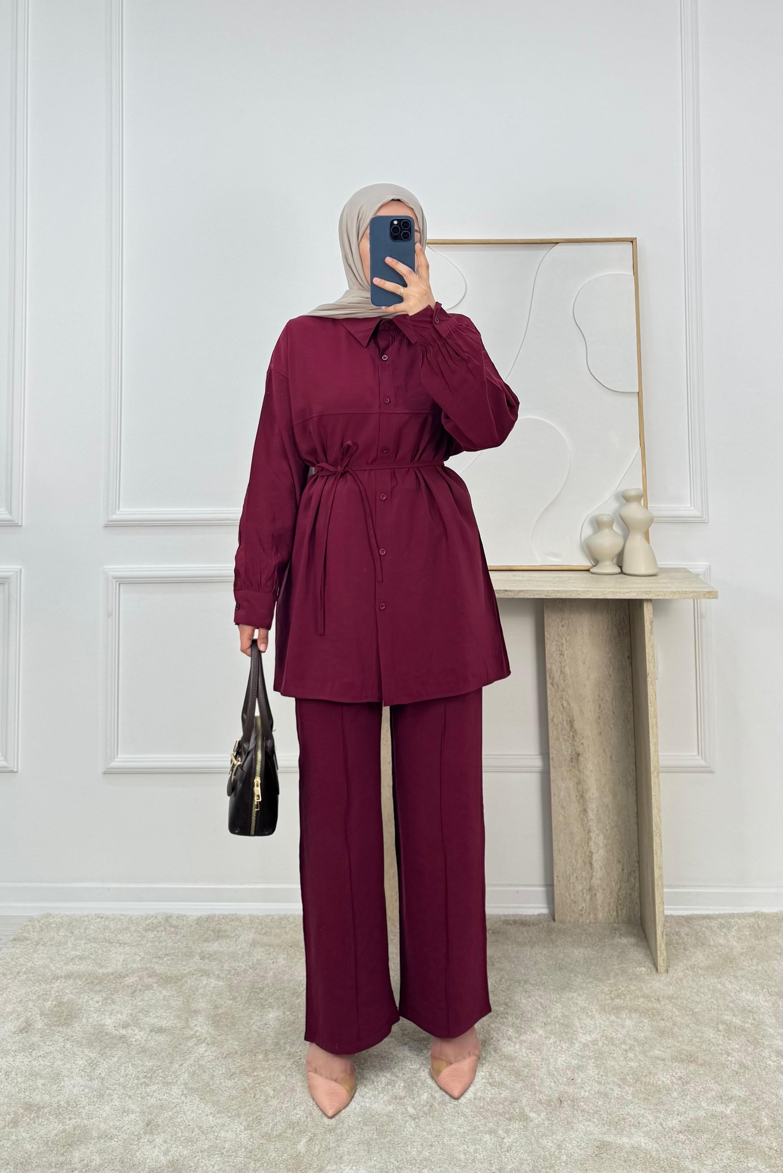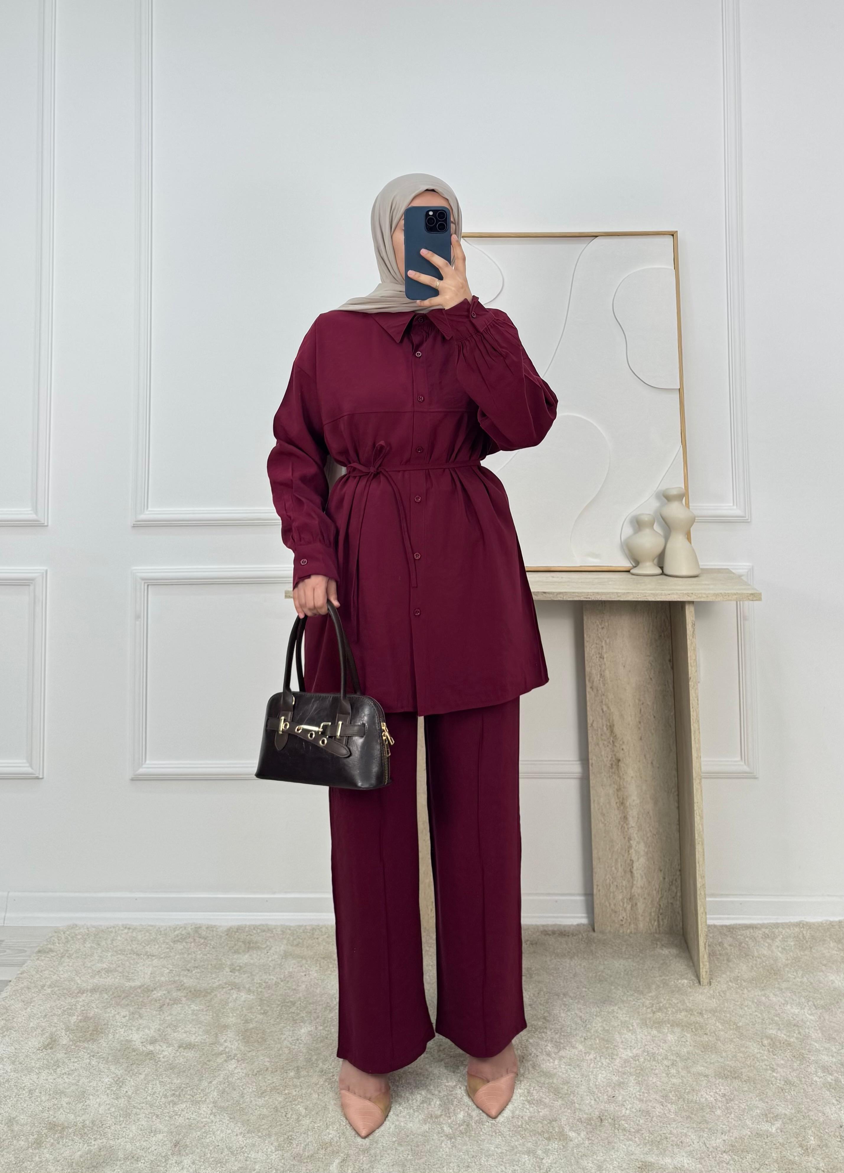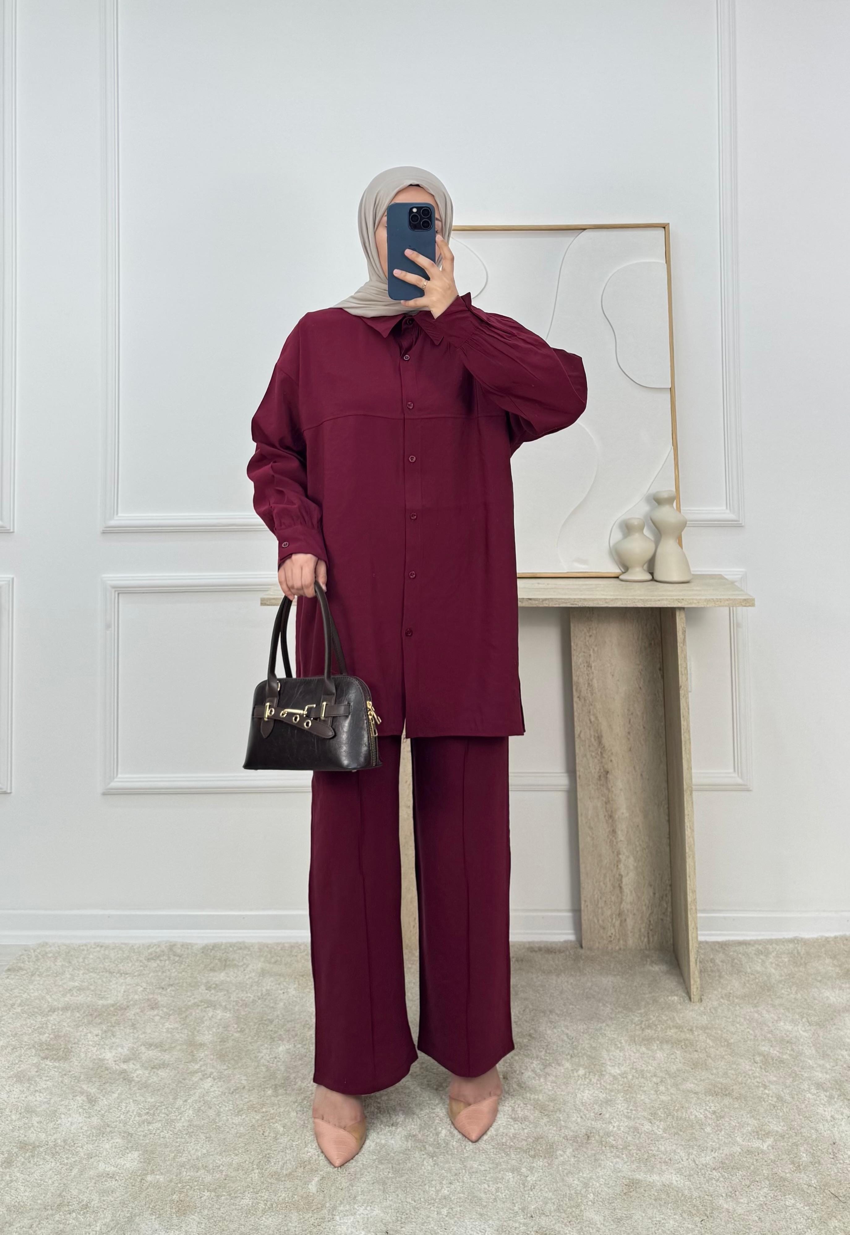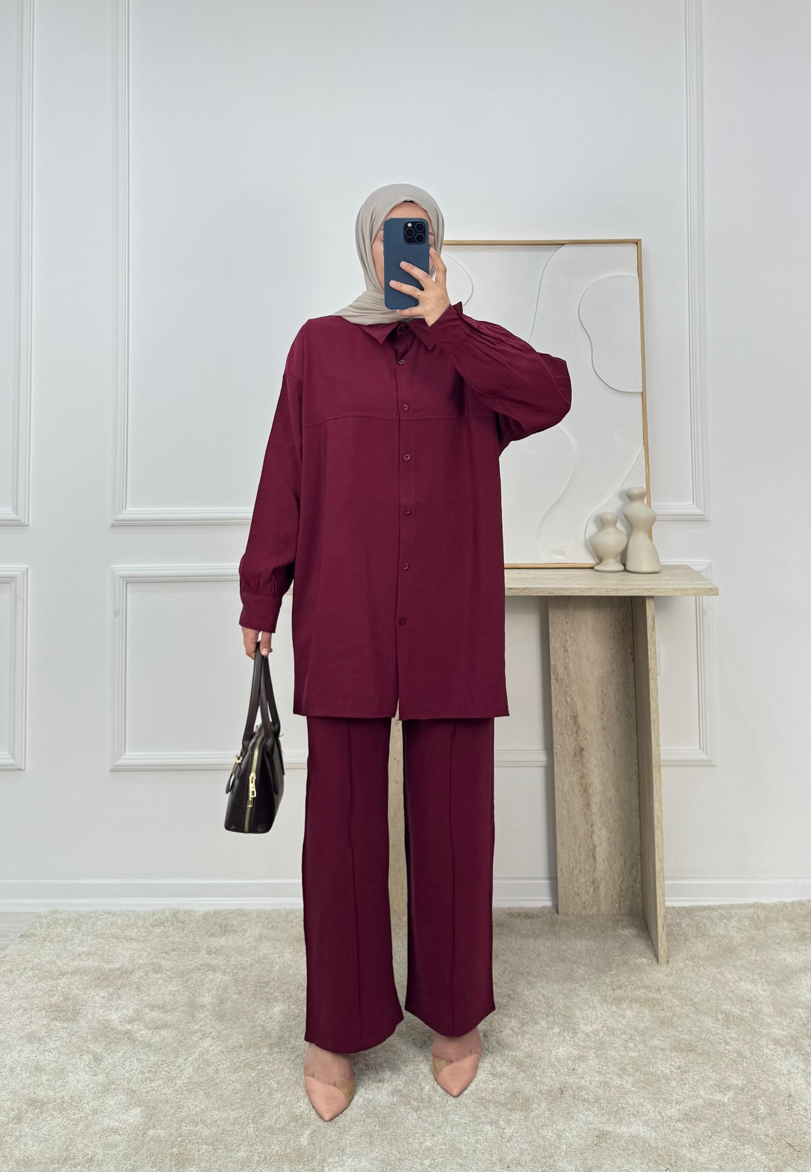 8531 - modal kubra kumaş pantolonlu takım -bordo (8531)