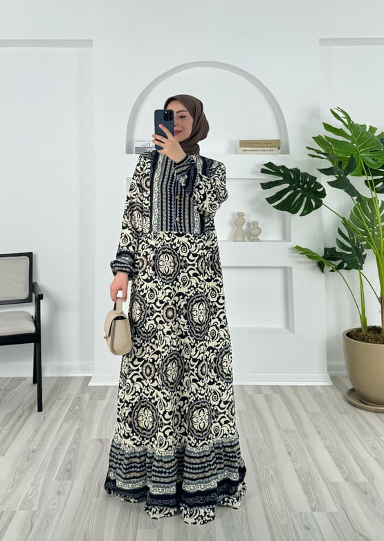 beline kadar düğmeli bilek ucu büzgülü elbise