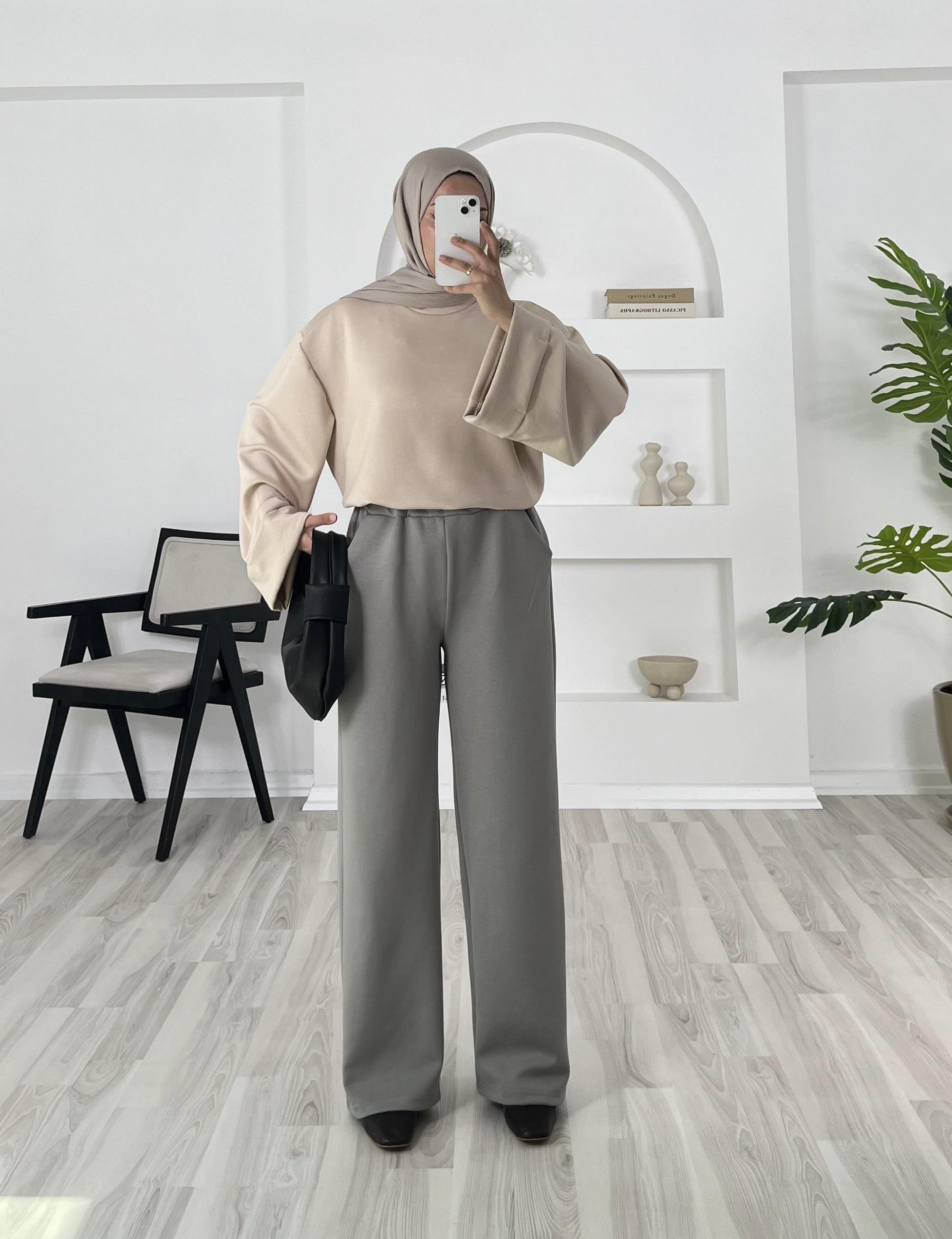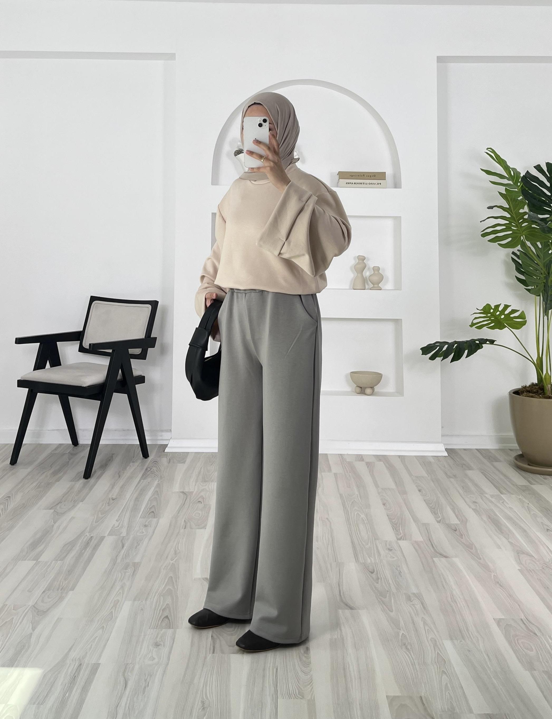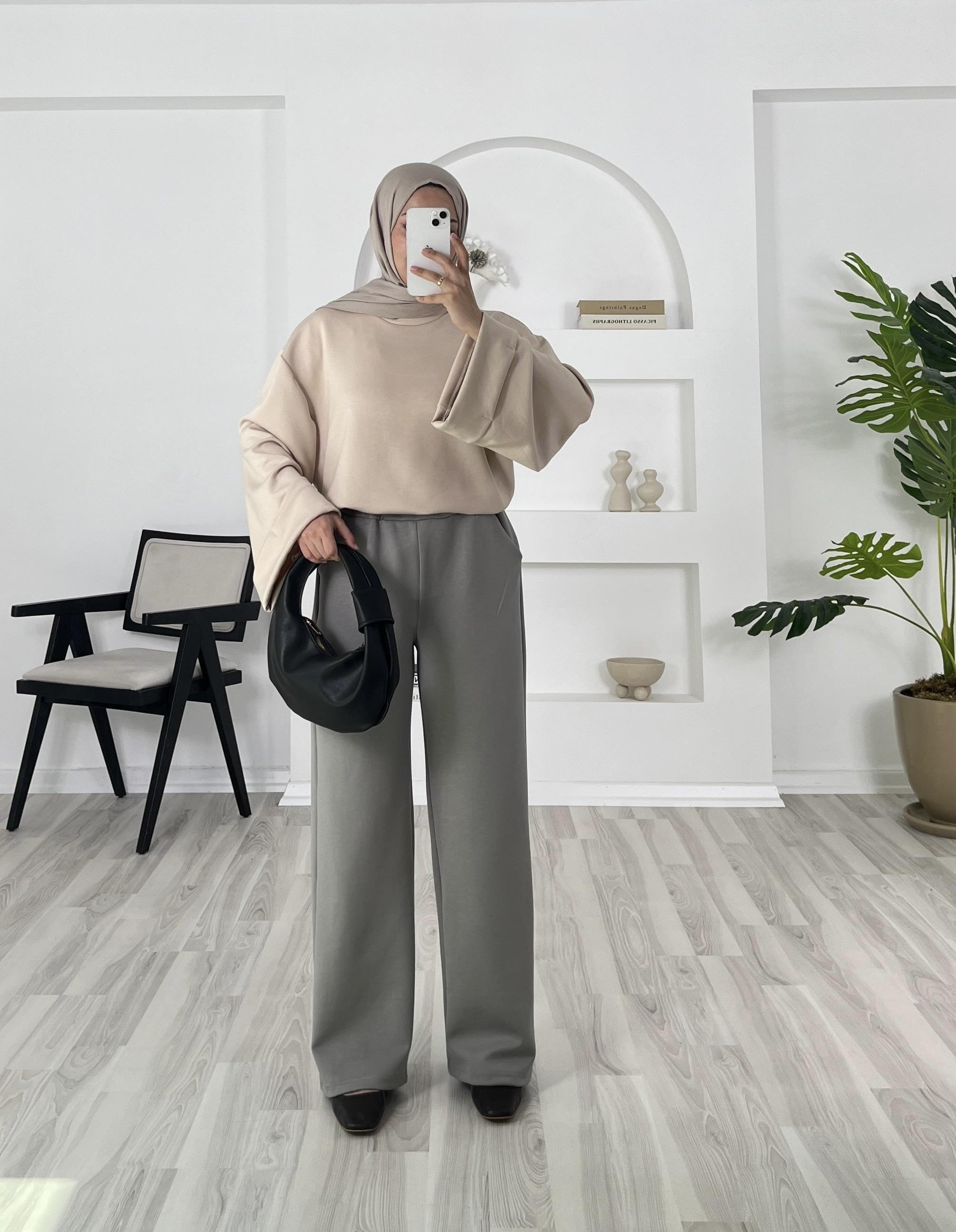 8613 - oysho kumaş bol paça beli lastikli eşofman - gri (8613)