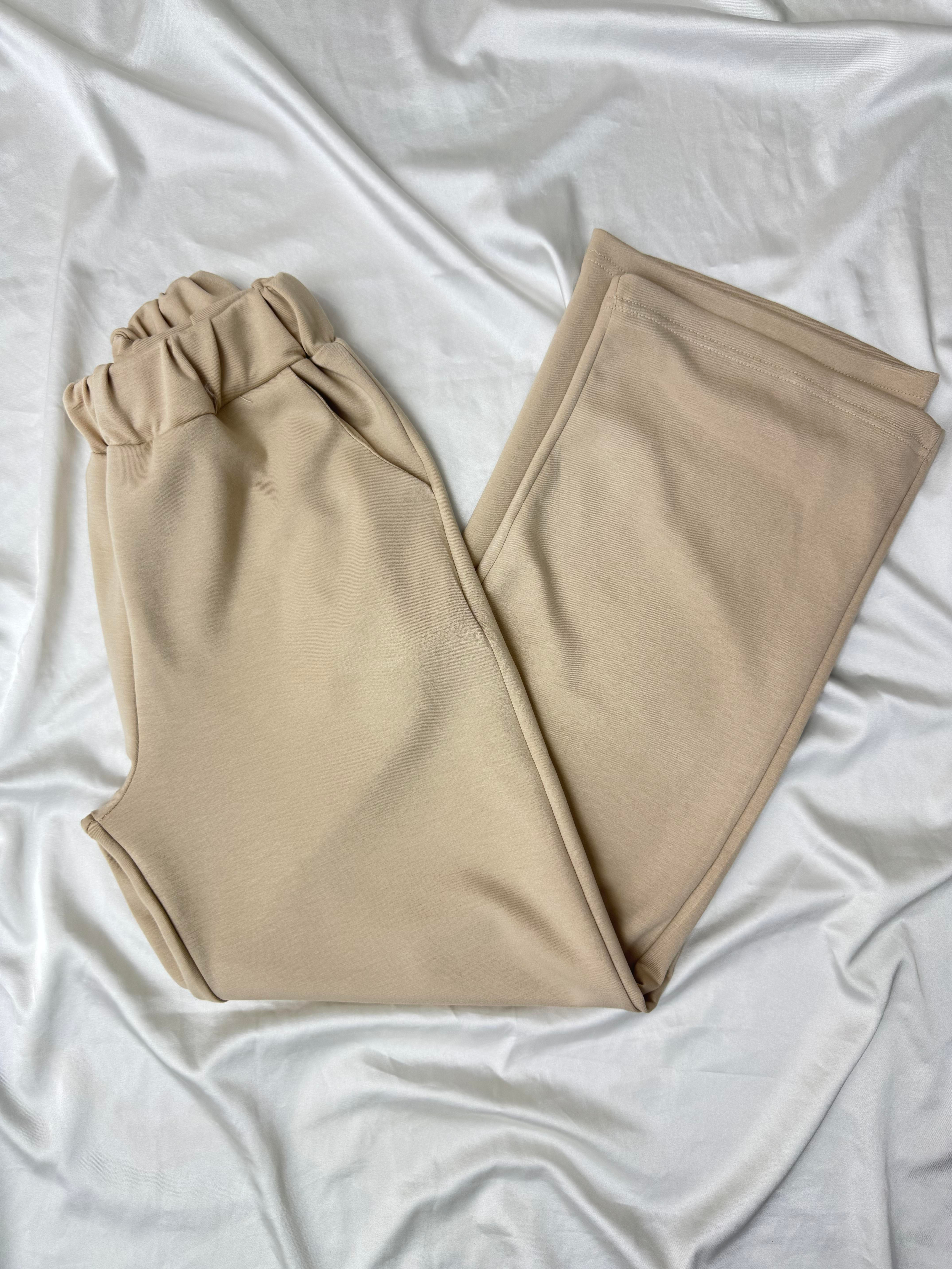 8613 - oysho kumaş bol paça beli lastikli eşofman - krem (8613)