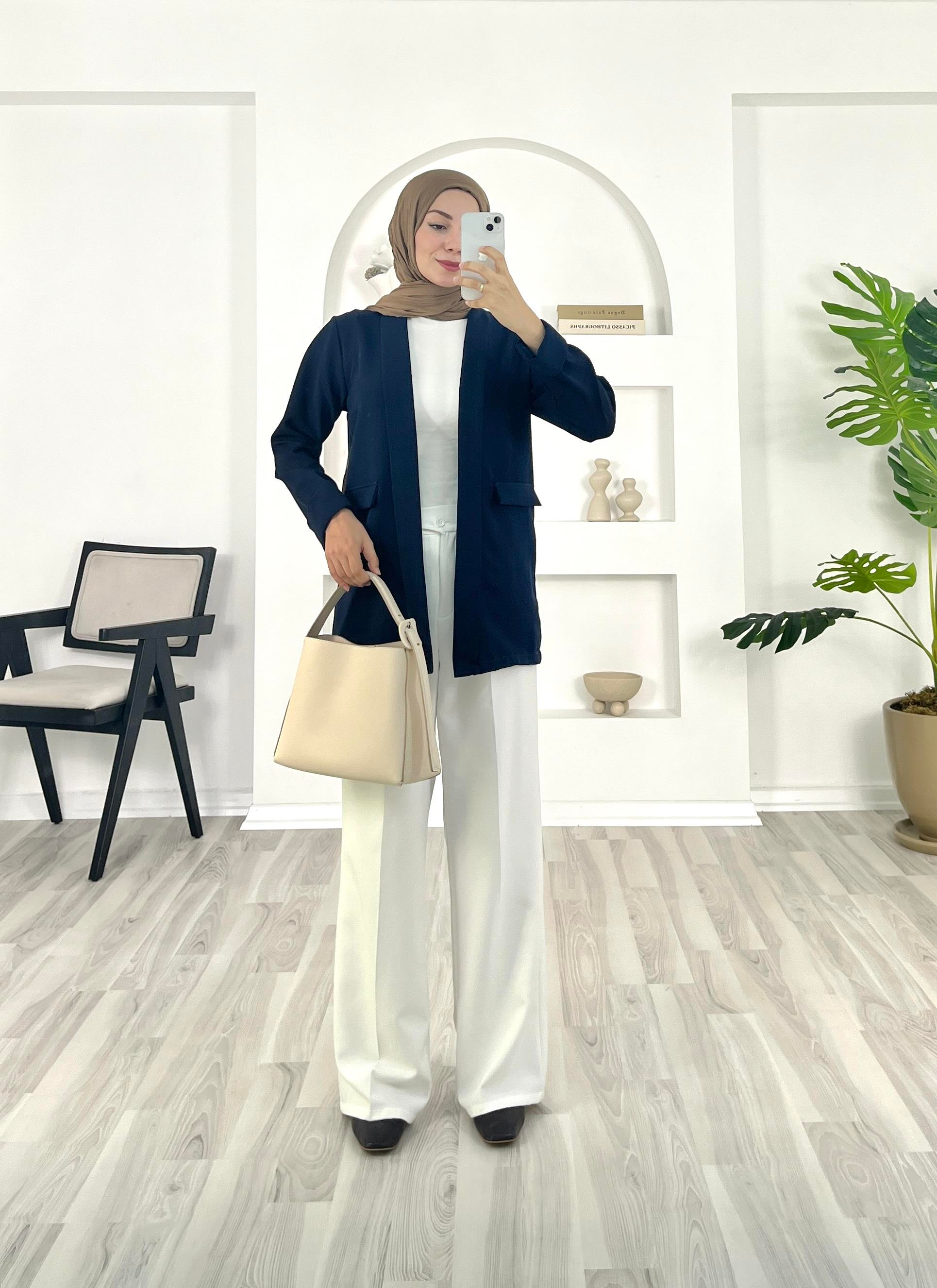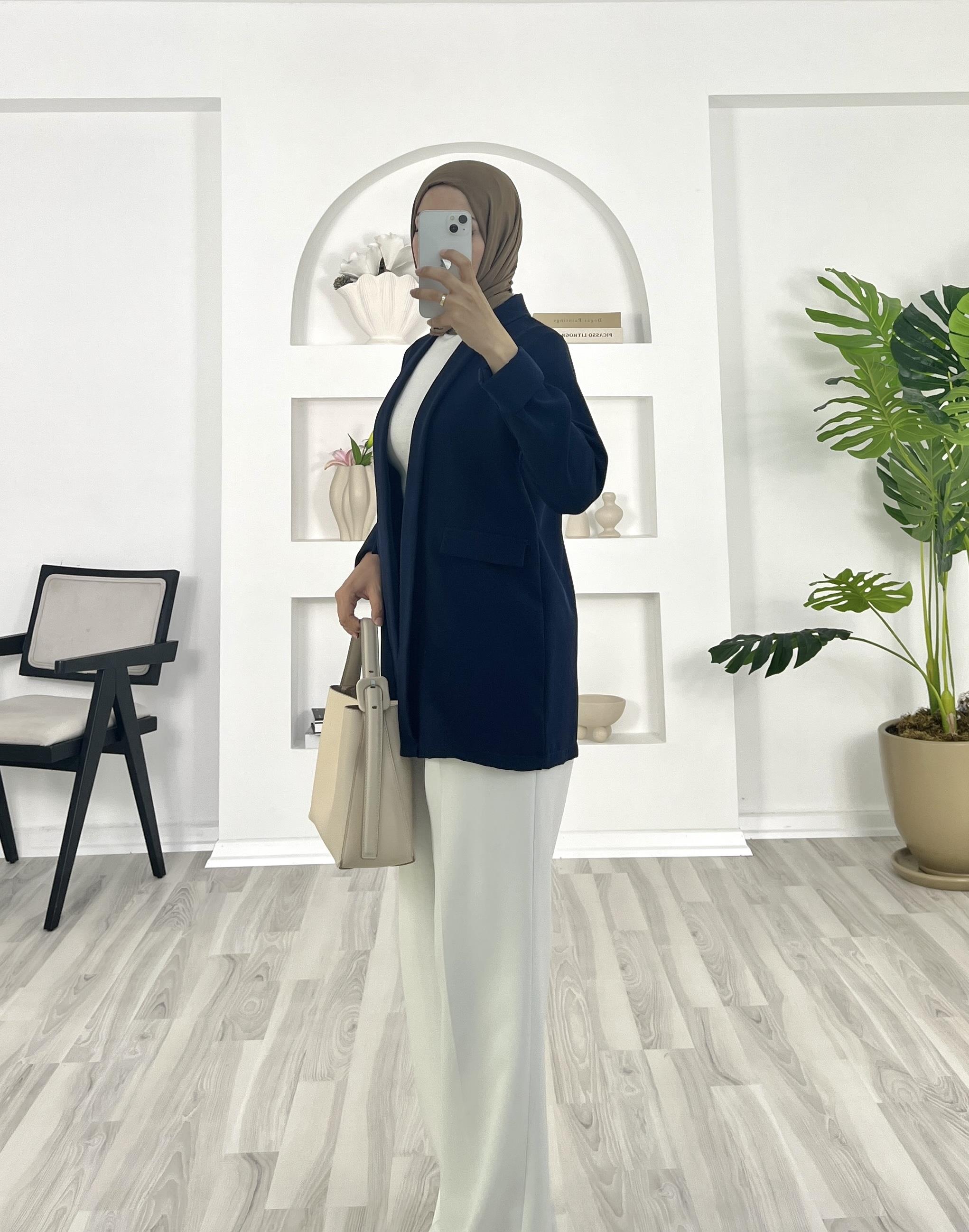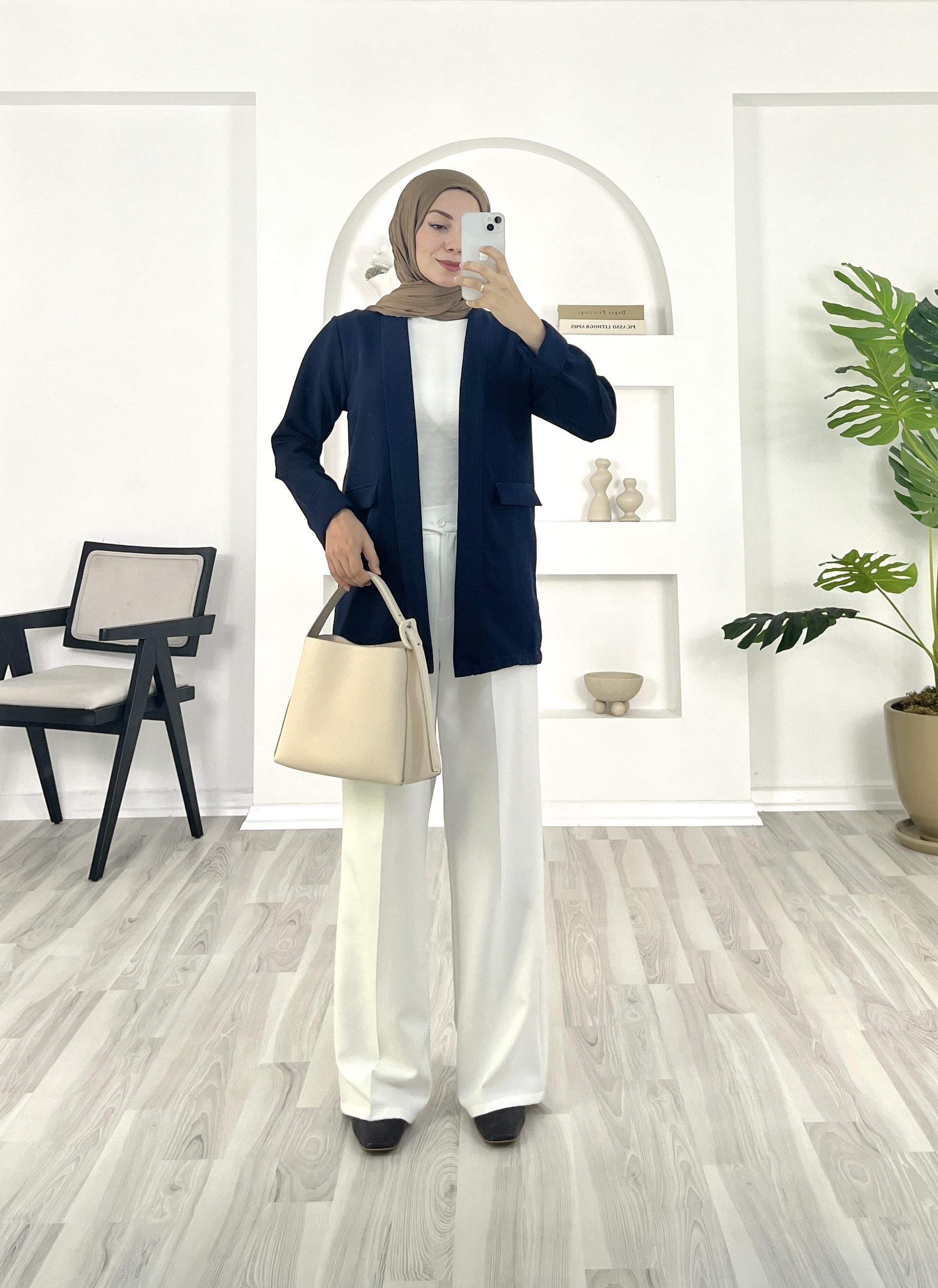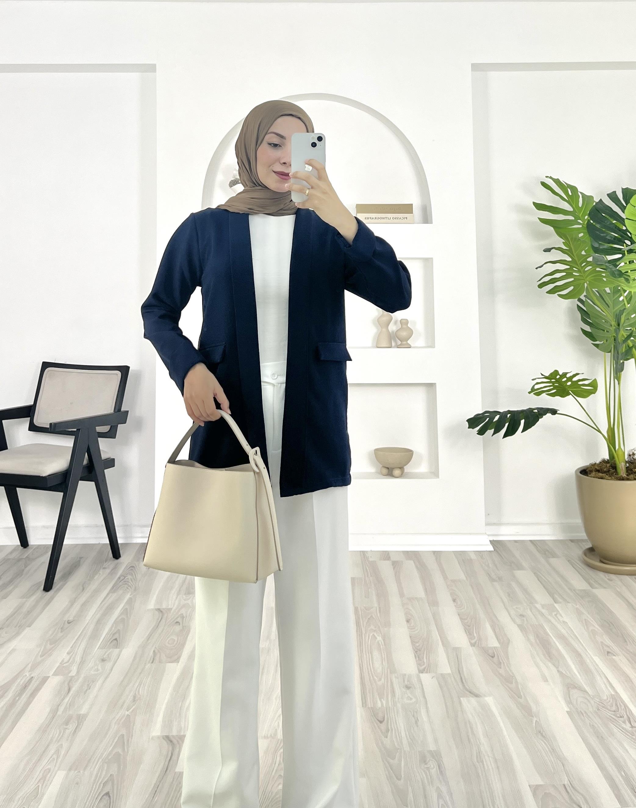 8743-dabıl krep kumaş-süs cep detaylı ceket-lacivert (8743)