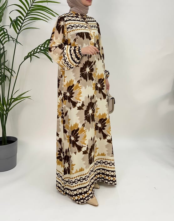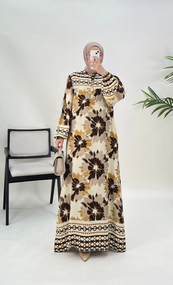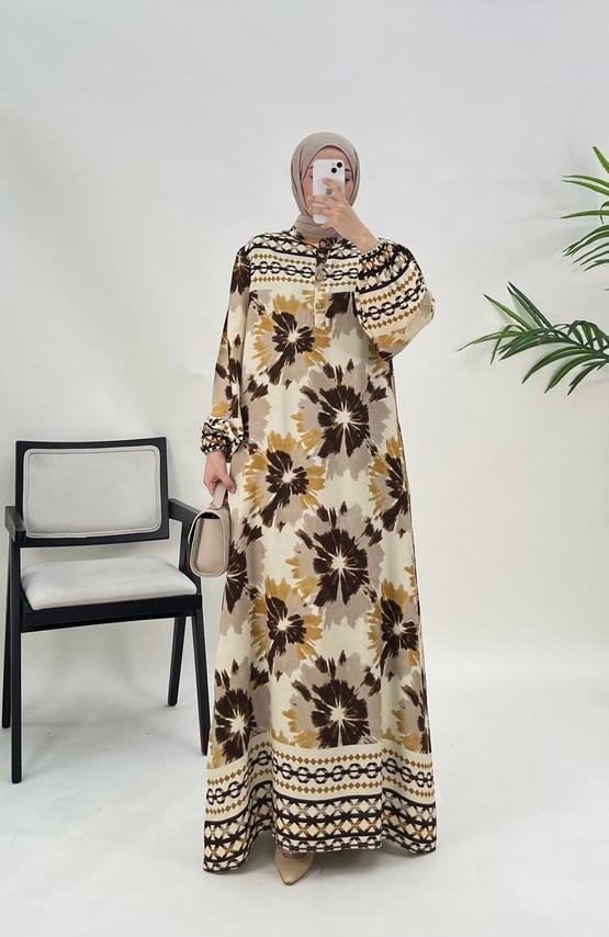 bilek ucu büzgülü çiçek desenli elbise