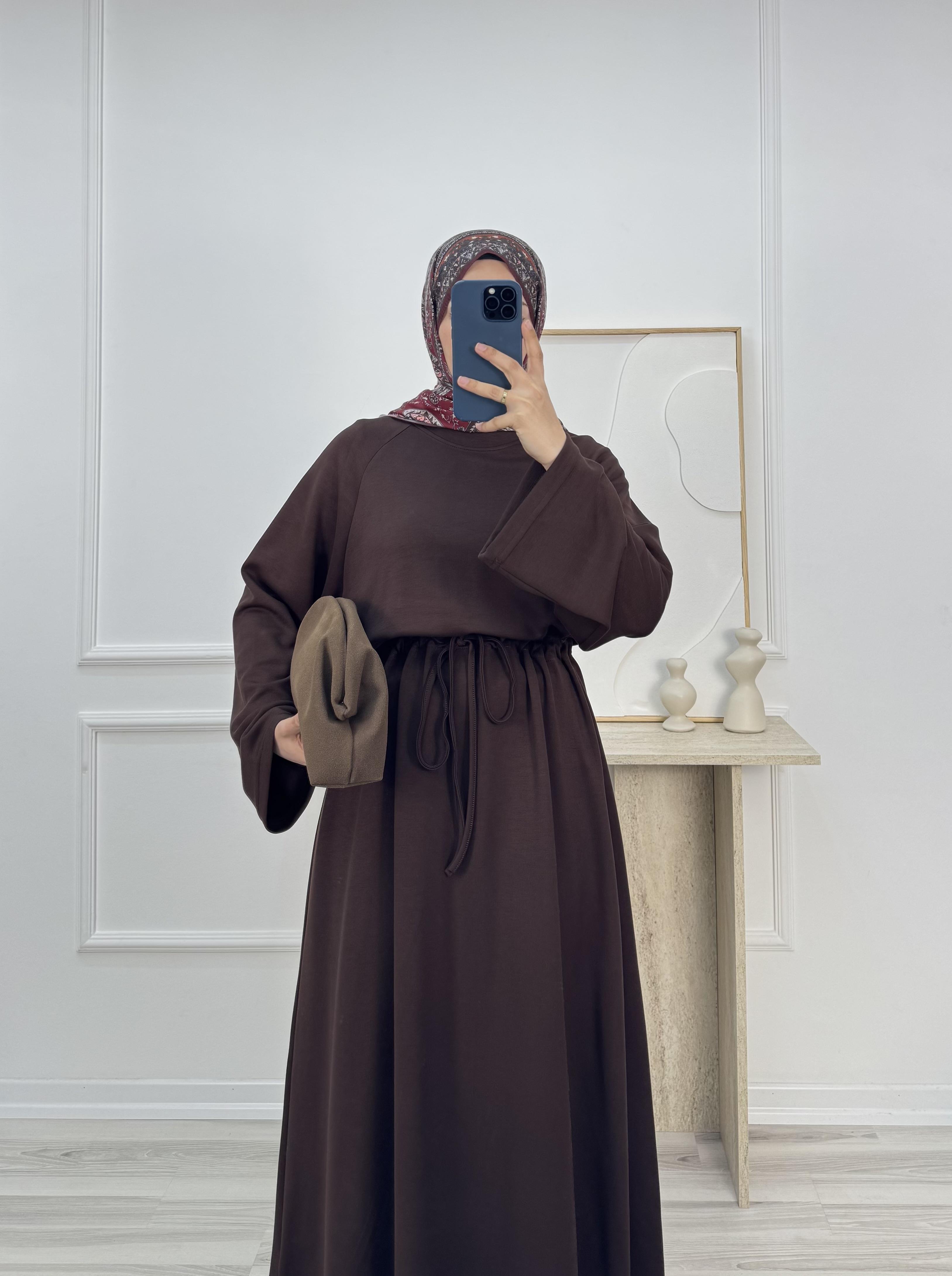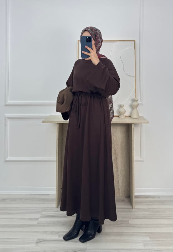 9026-oysho kumaş beli büzgülü elbise-acı kahve (9026)