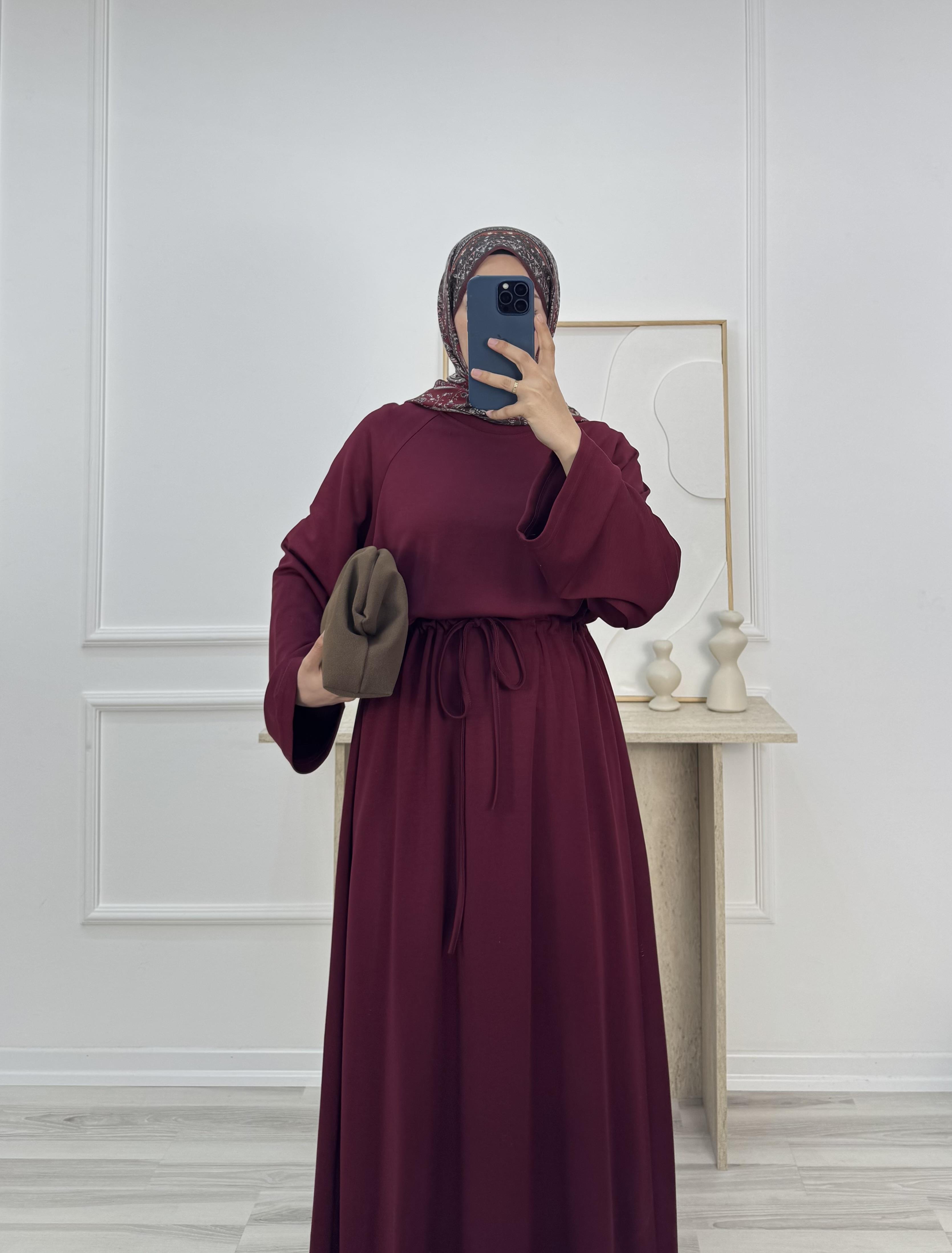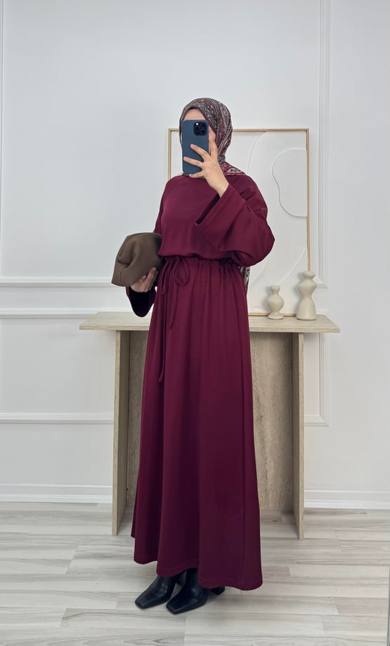 9026-oysho kumaş beli büzgülü elbise-bordo (9026)
