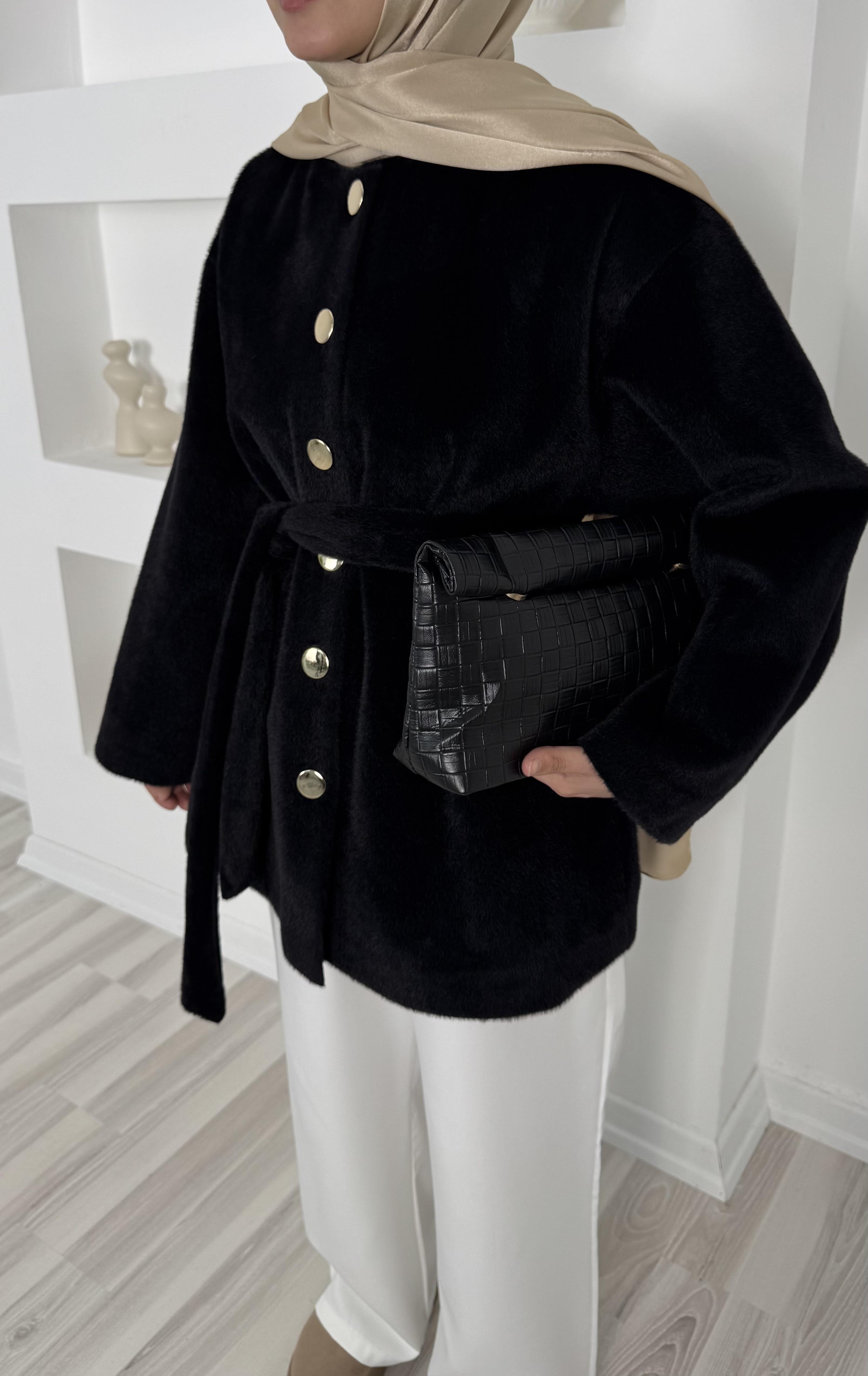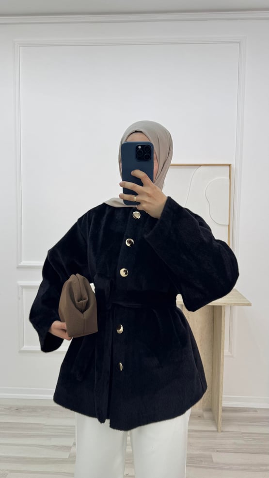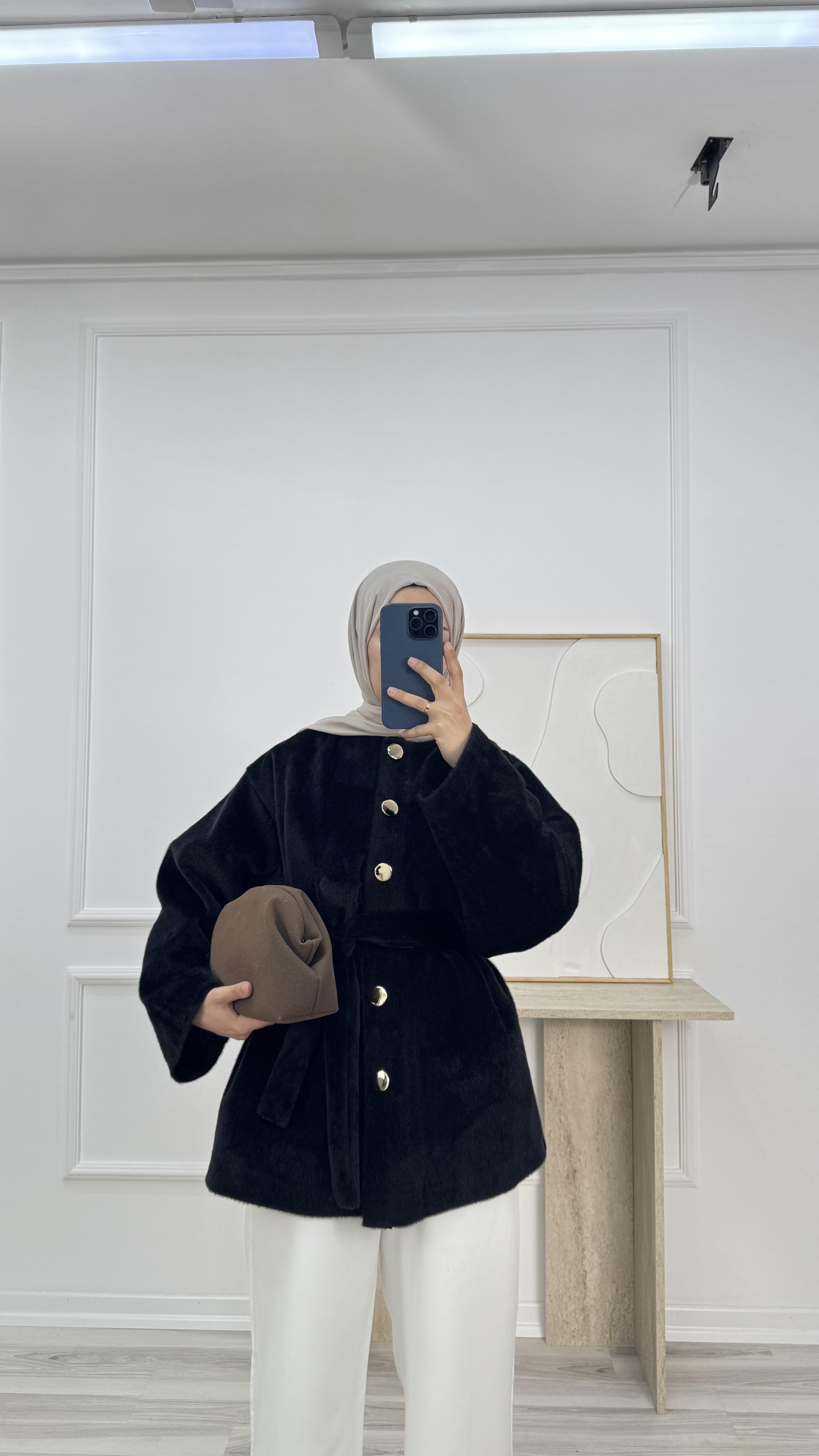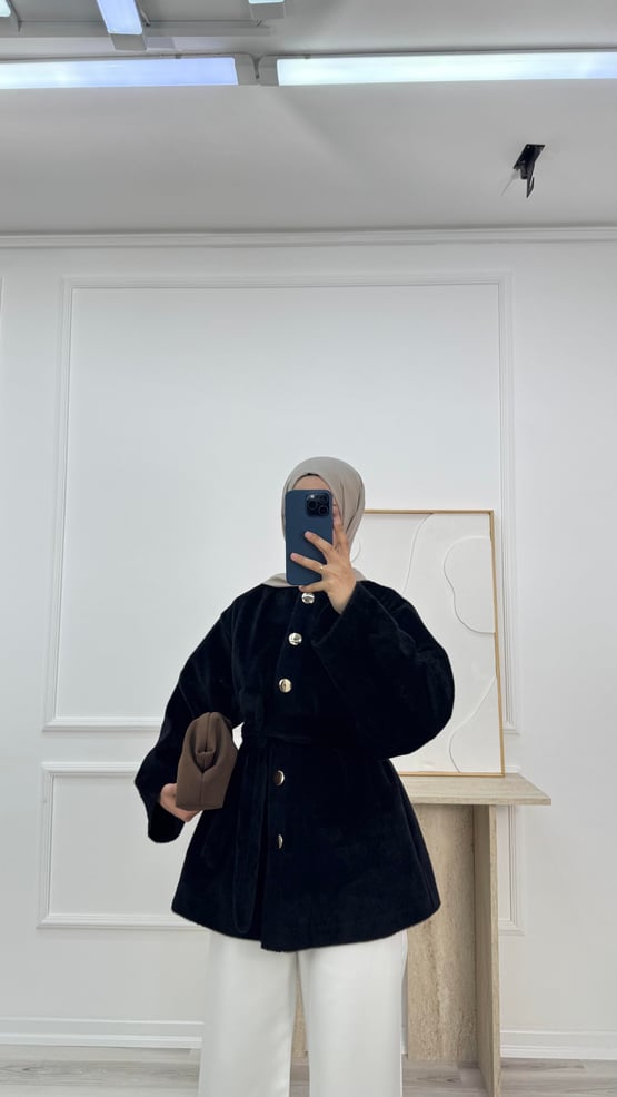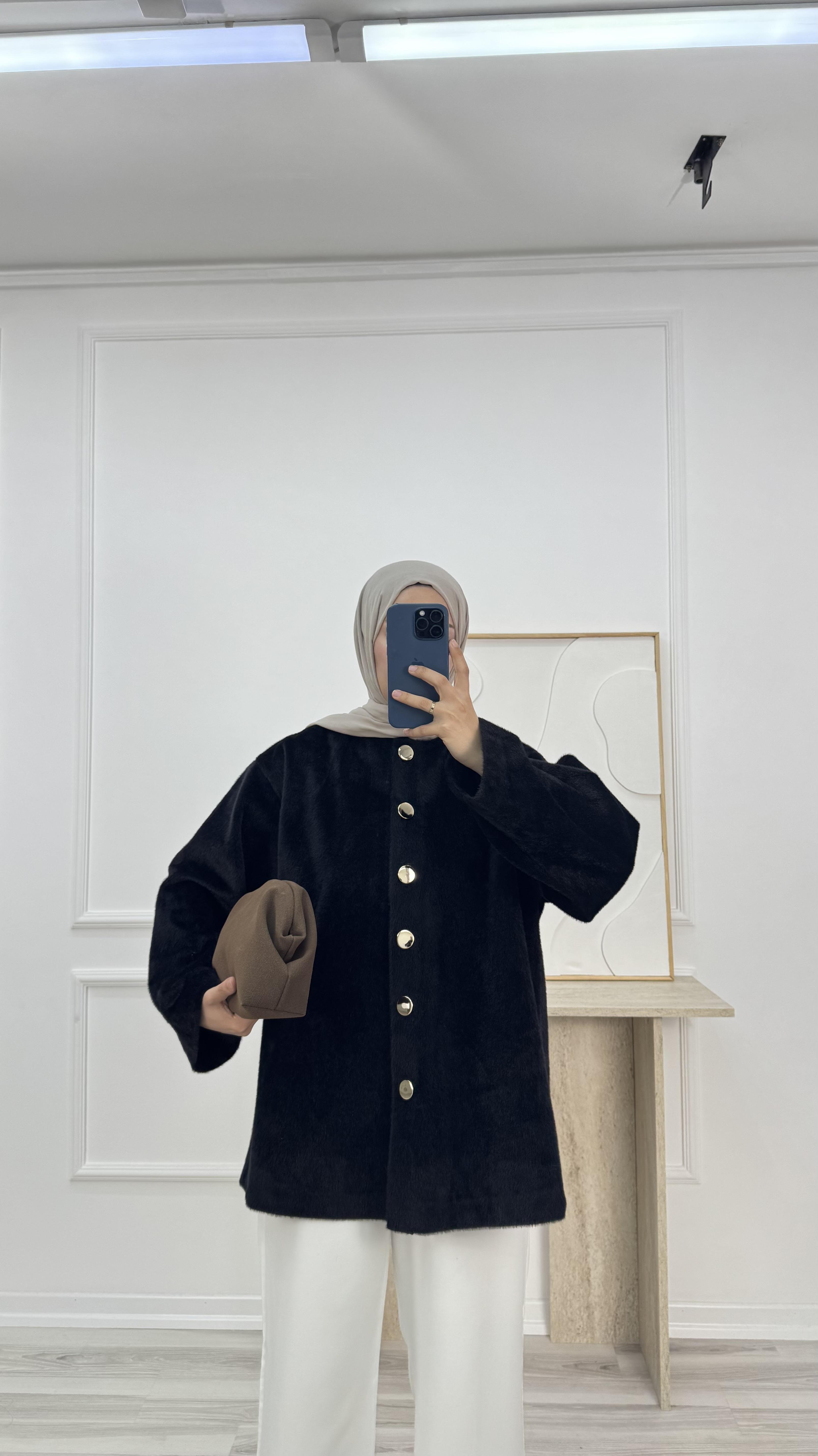 9300-fox kumaş bisiklet yaka kaban-siyah (9300)