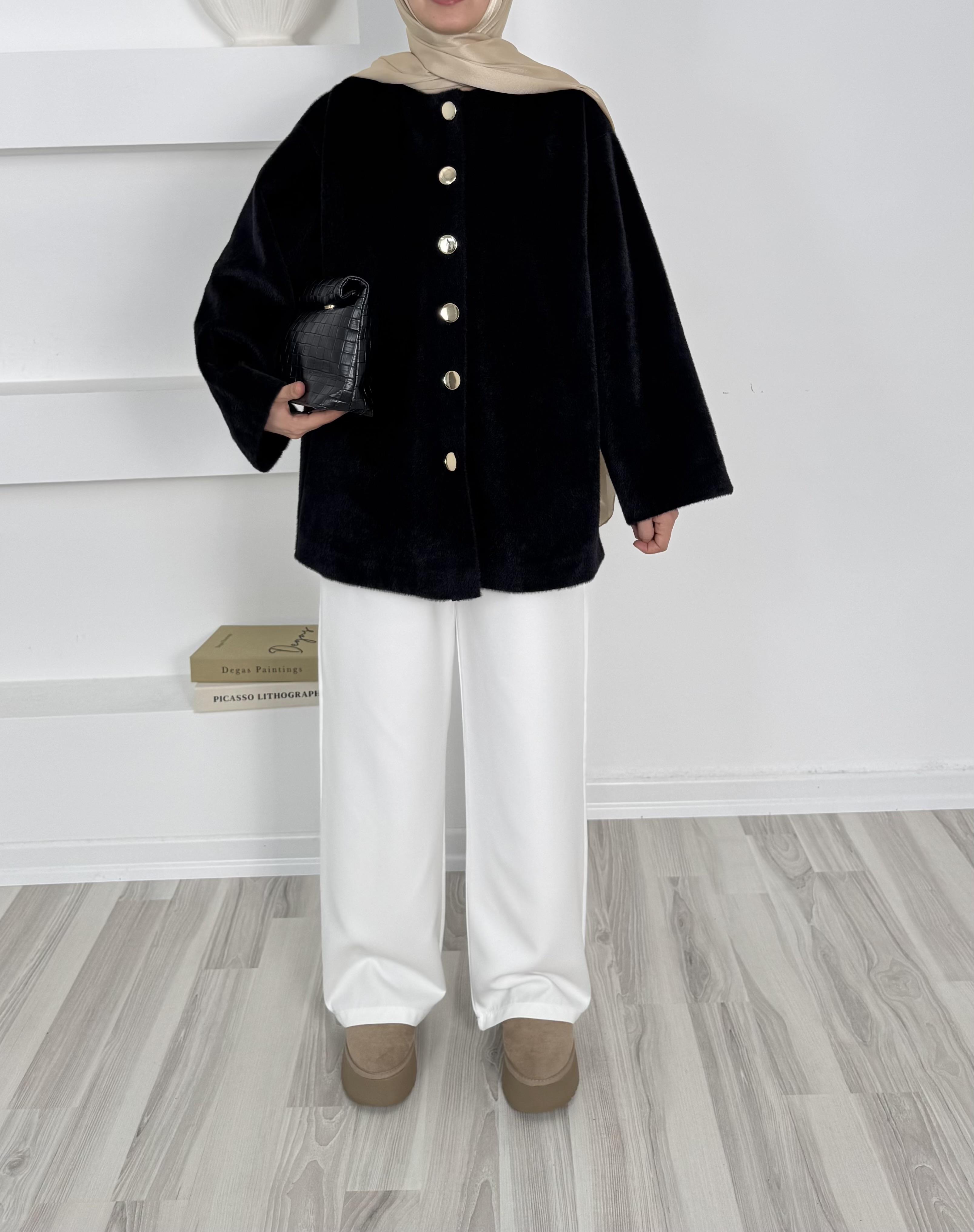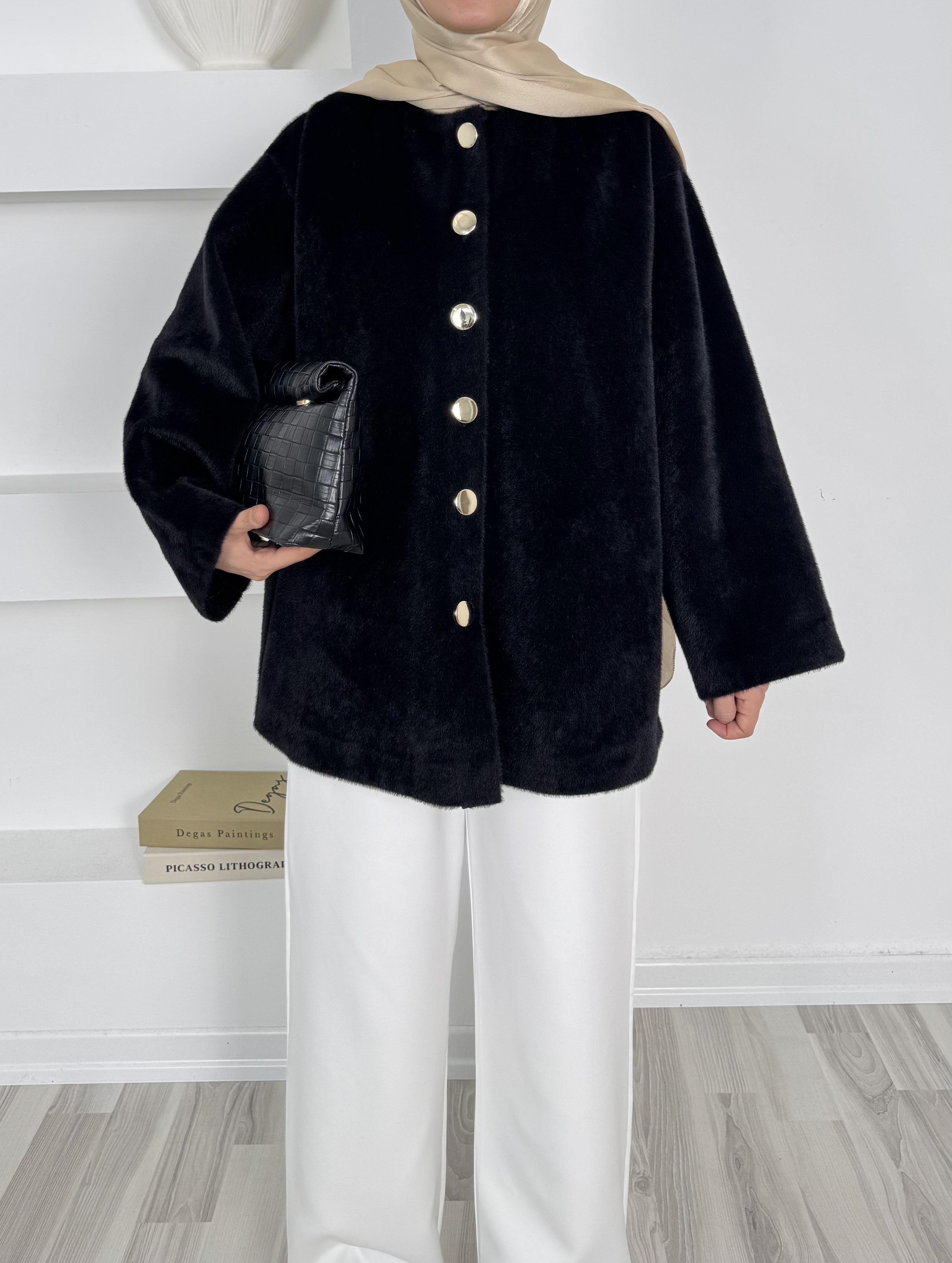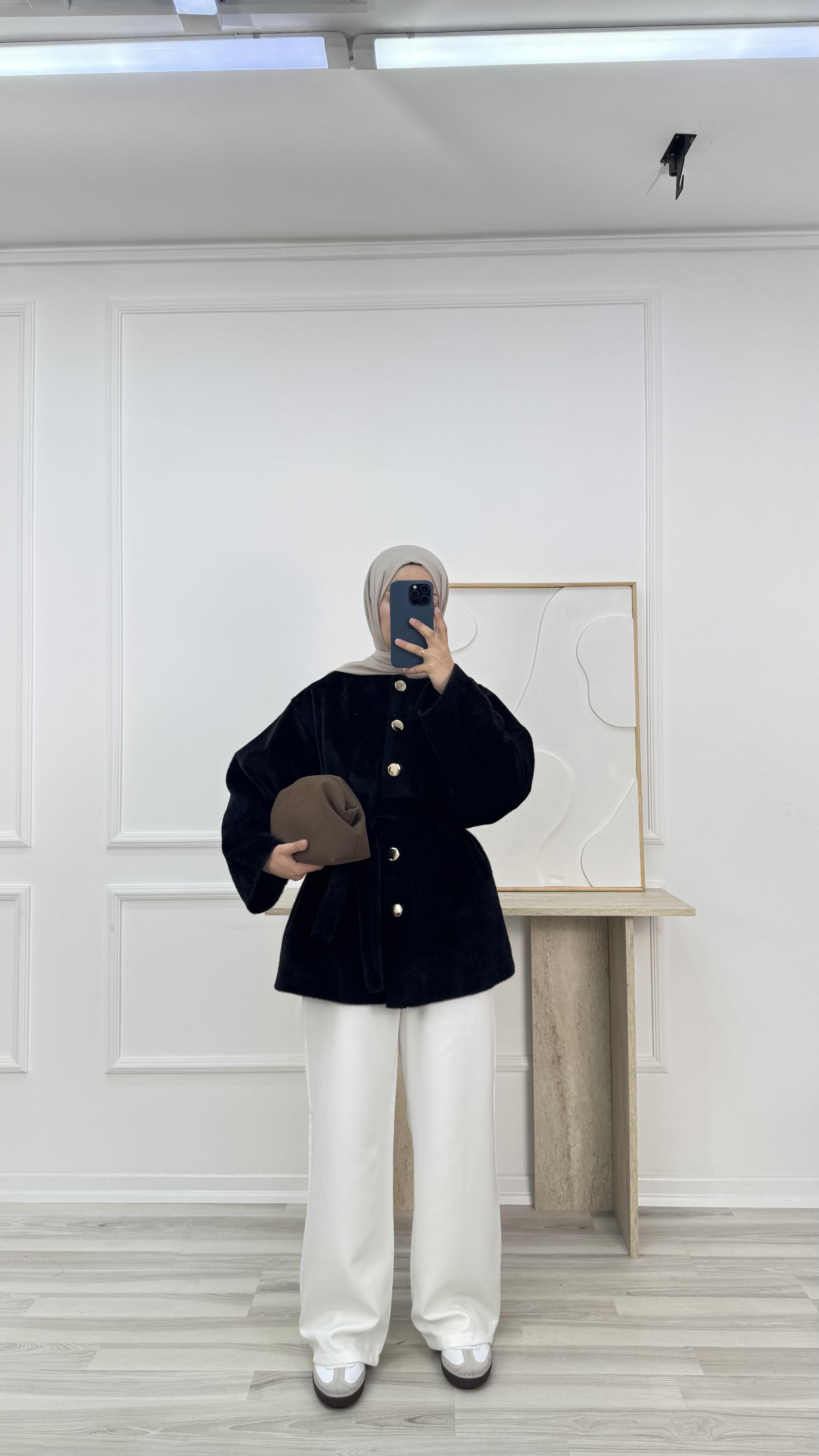 9300-fox kumaş bisiklet yaka kaban-siyah (9300)