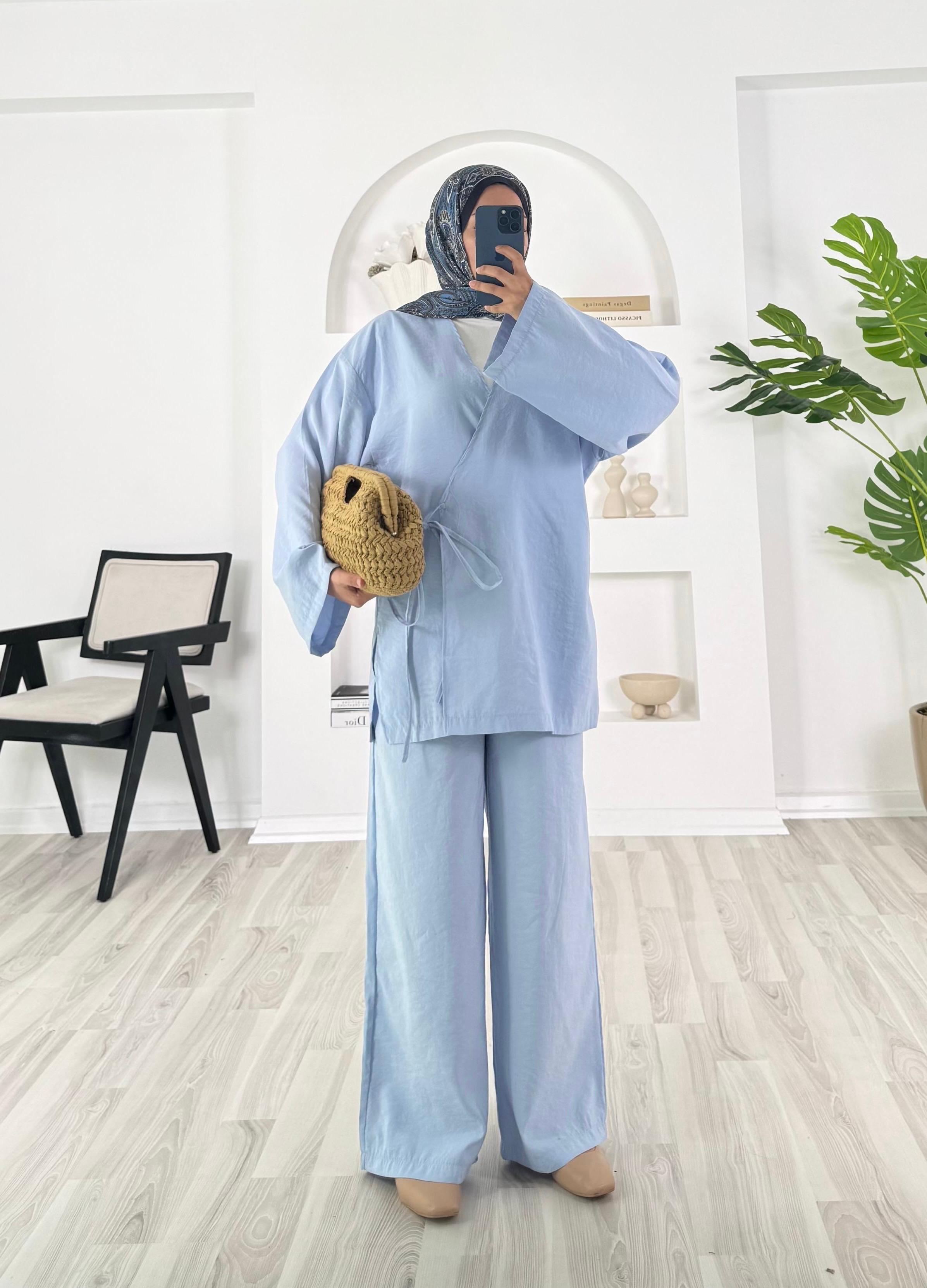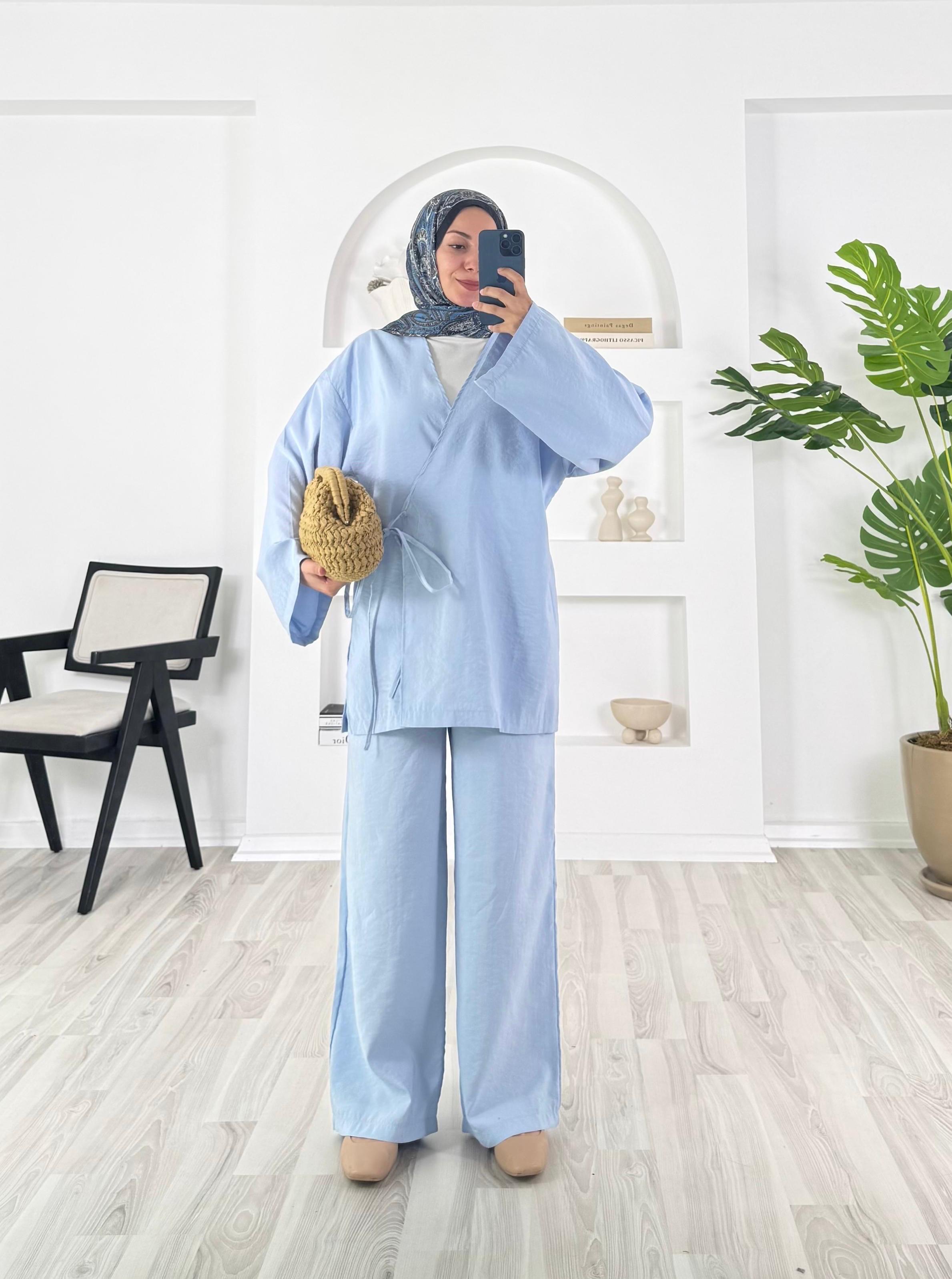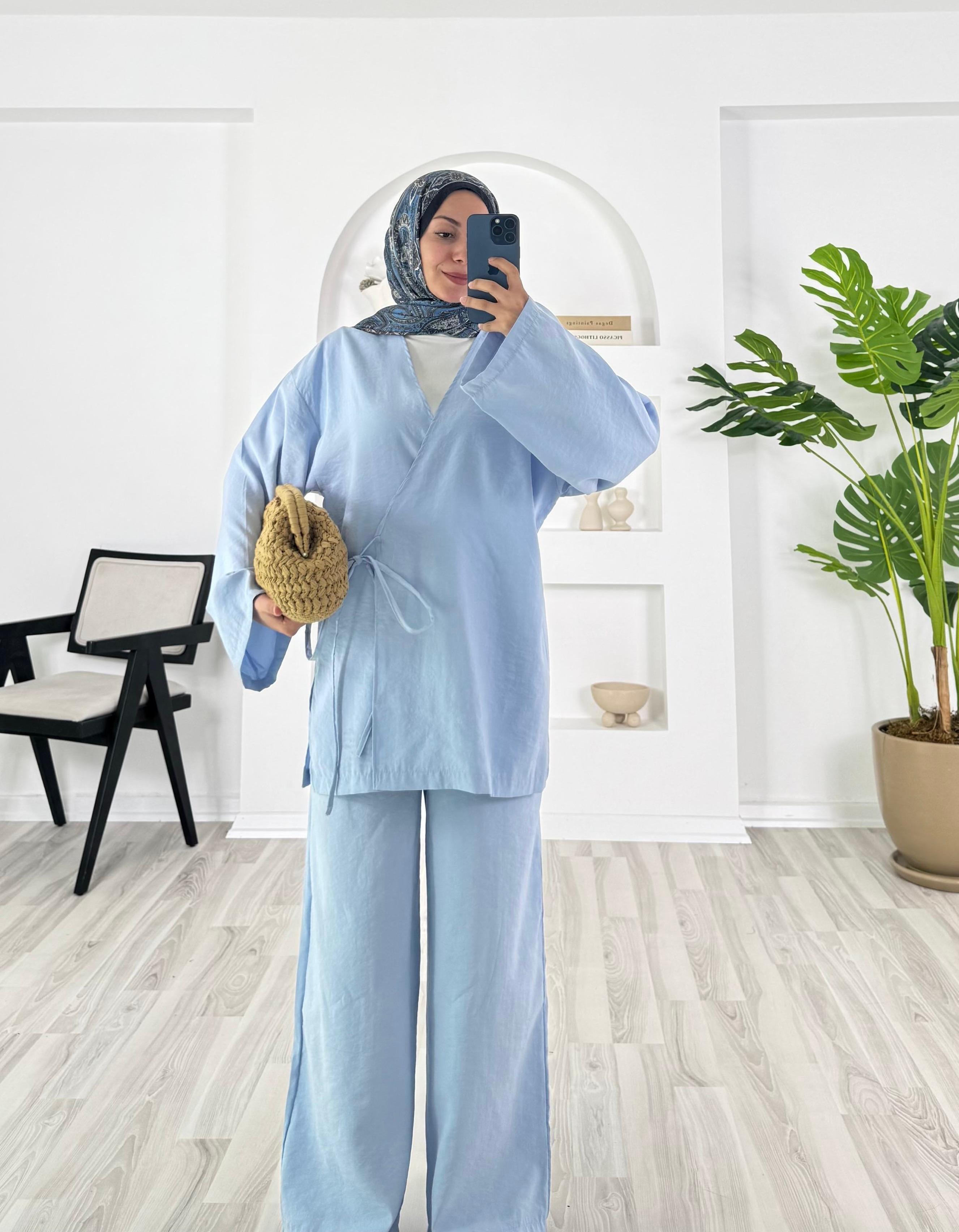 9314 - modal kumaş pantolonlu kimona ikili takım - bebe mavisi (9314)