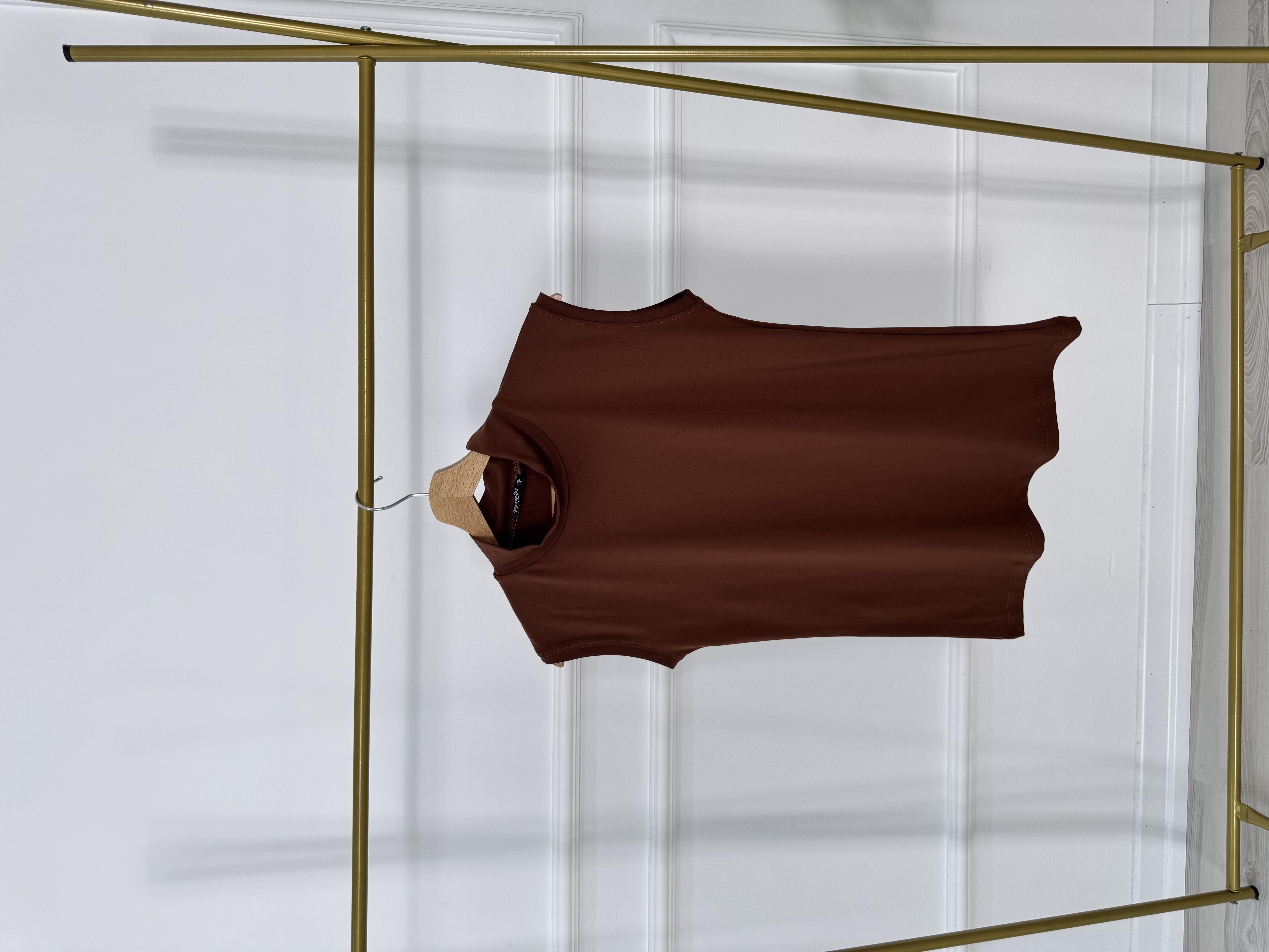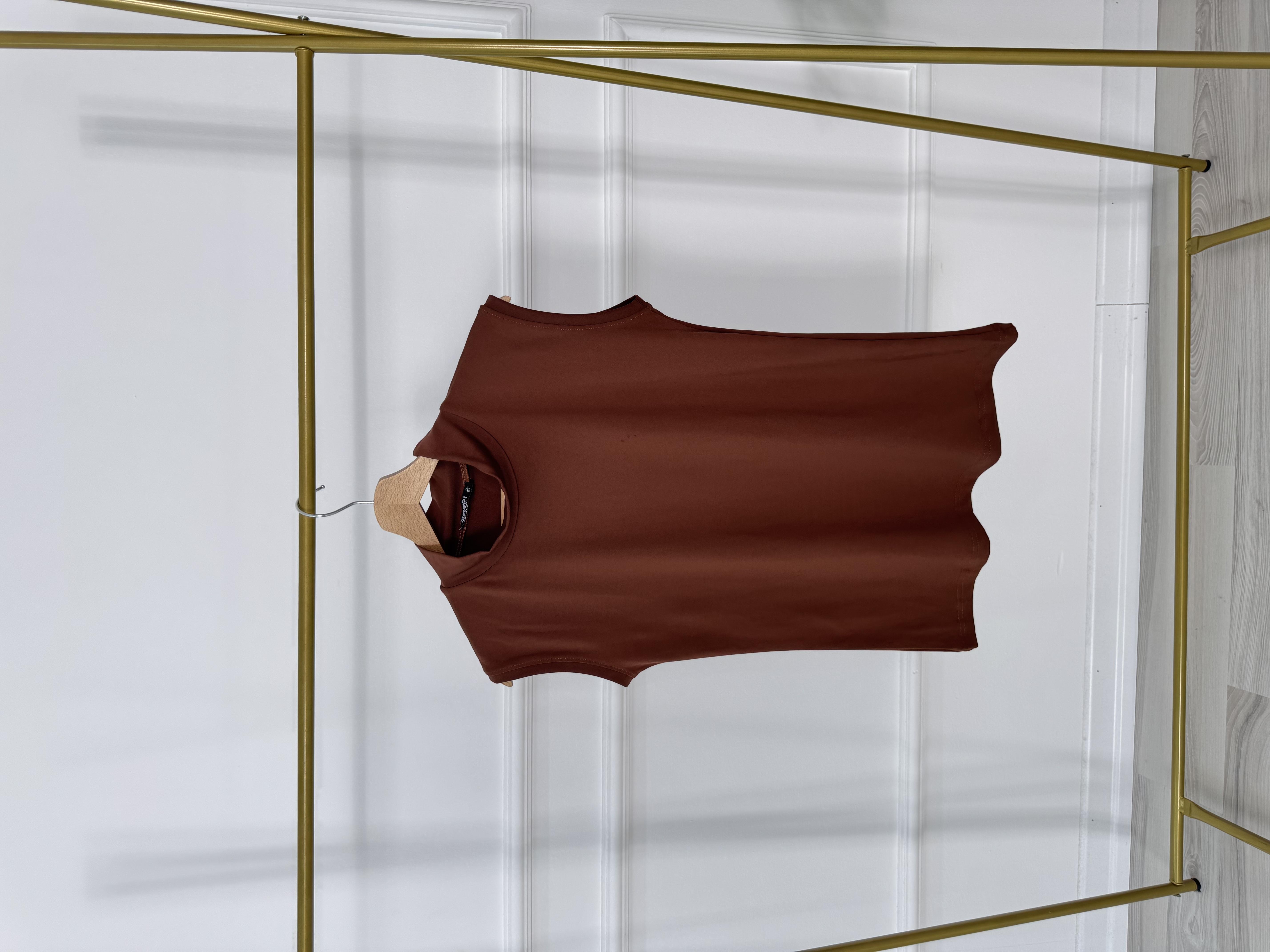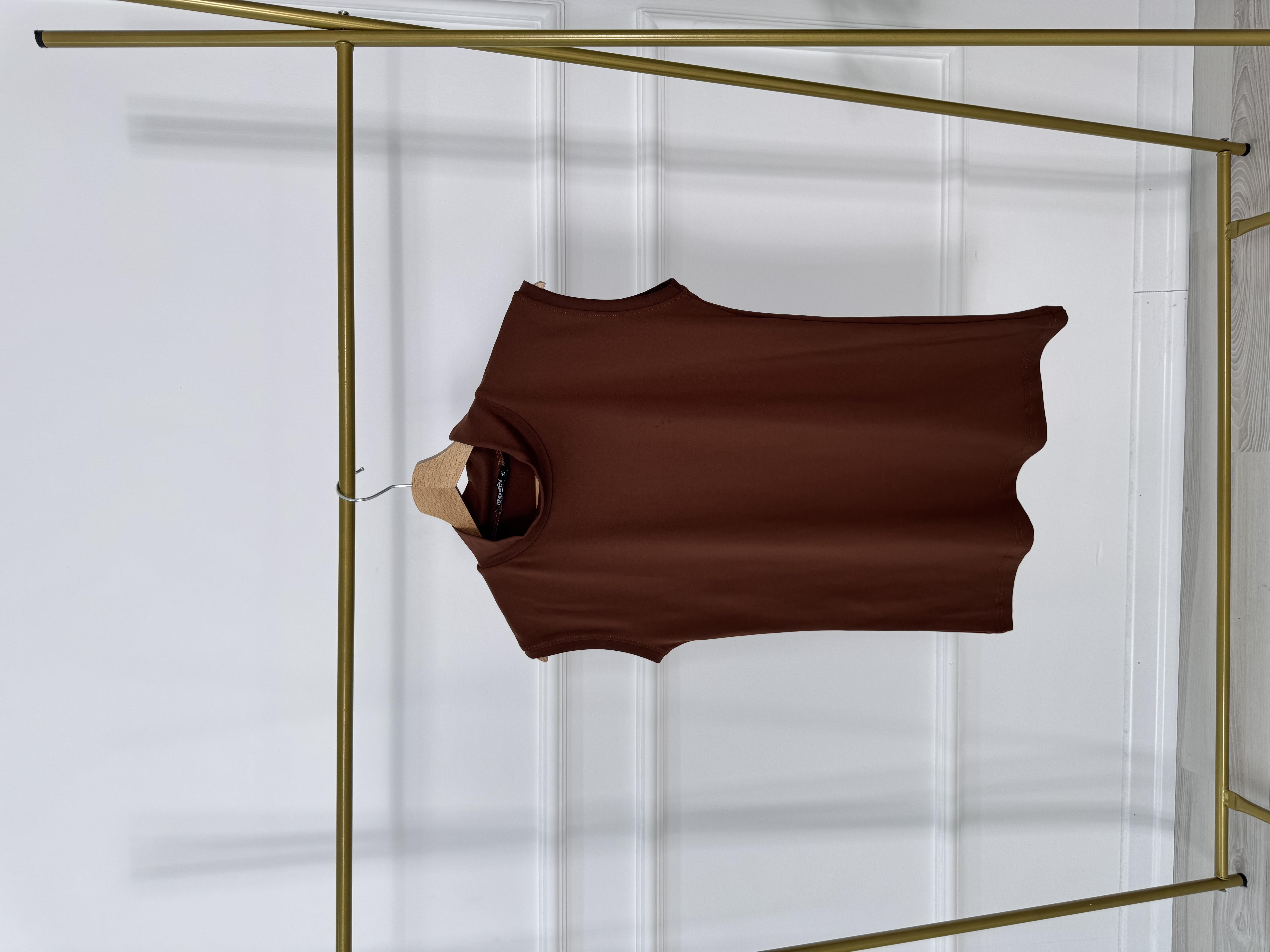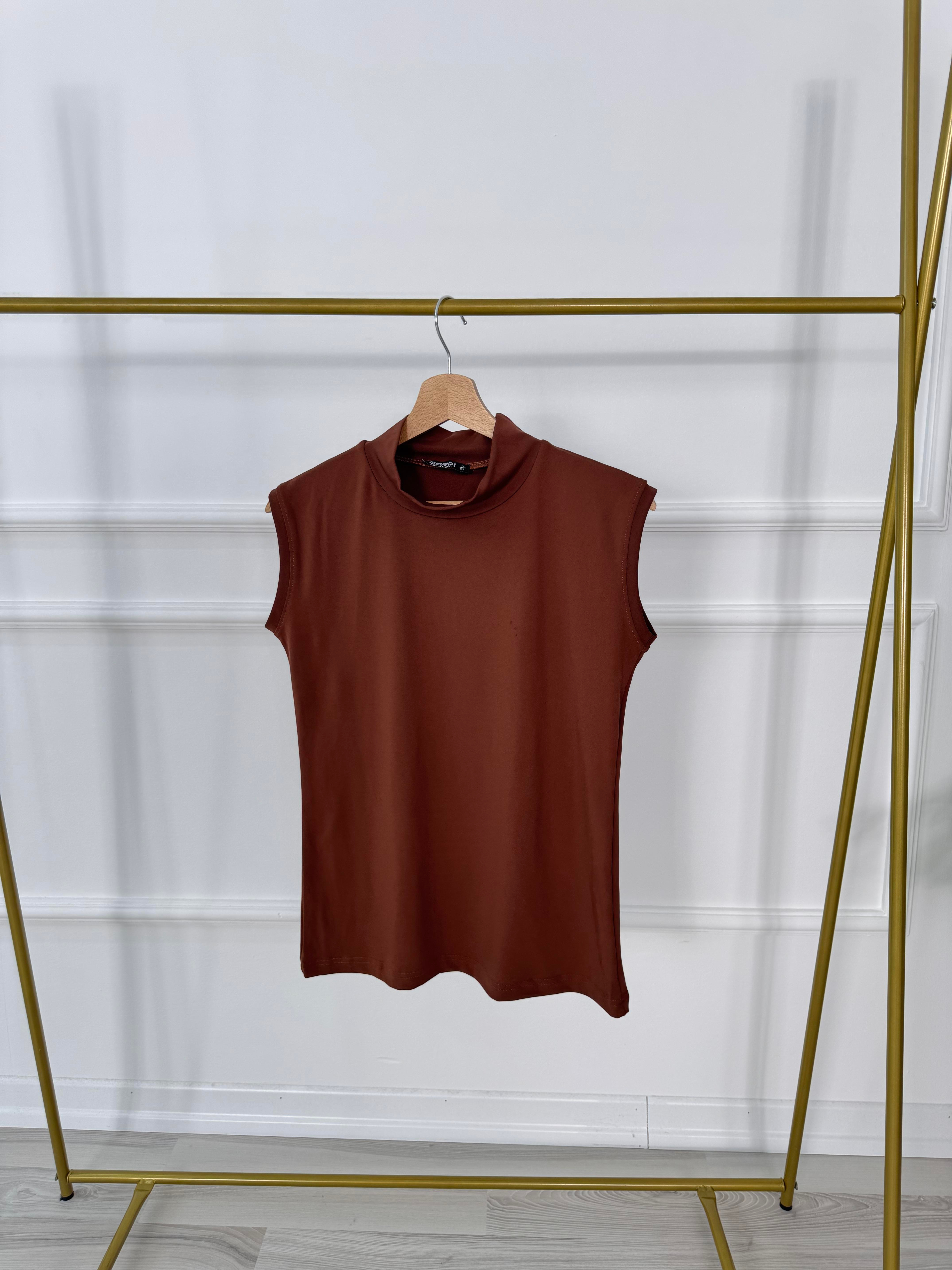 9528-polyemid kumaş-balıkçı yaka sıfır kol atlet-kahverengi (9528)