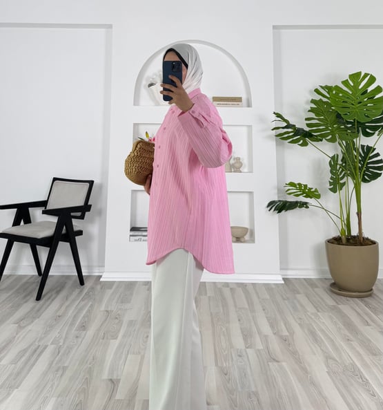9584 - armür kumaş önü cepli gömlek - pembe (9584)