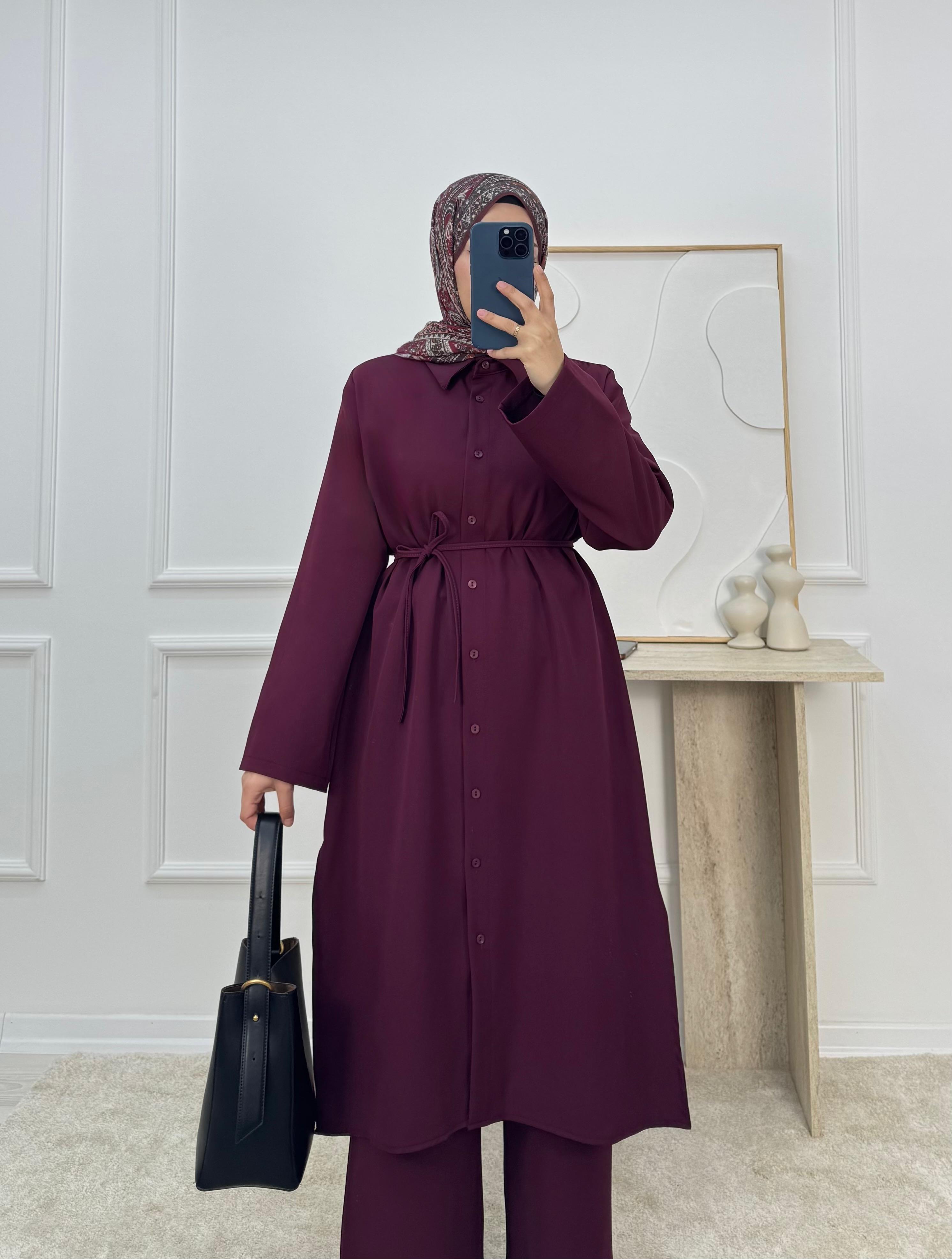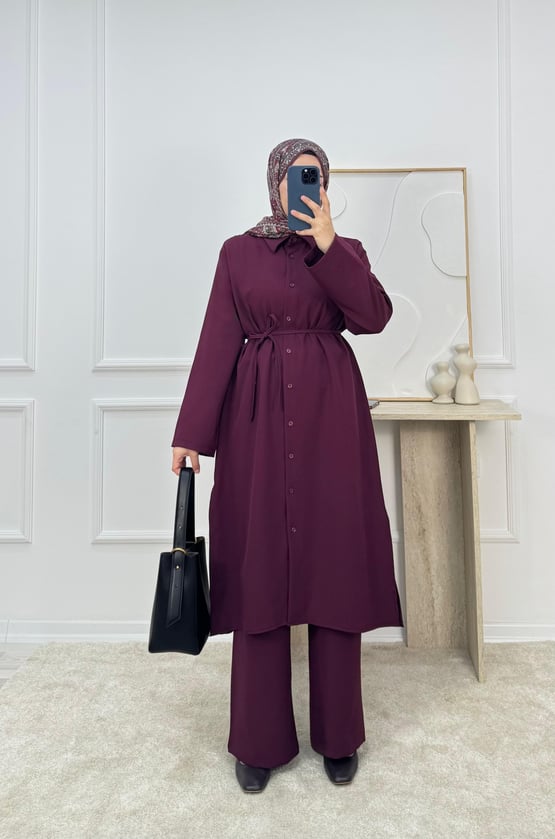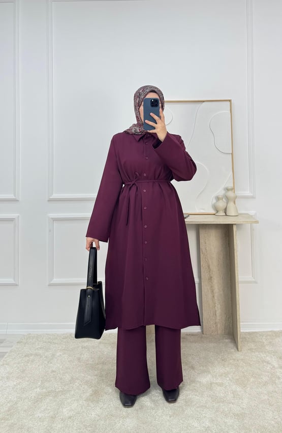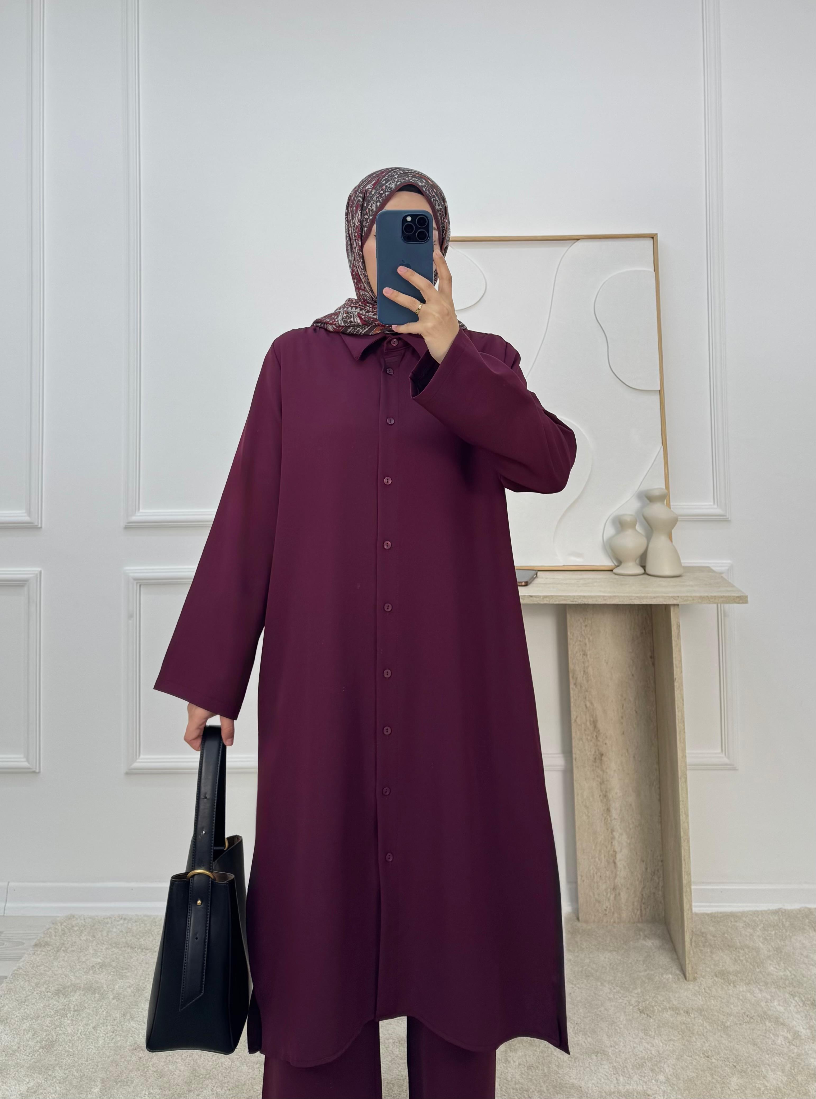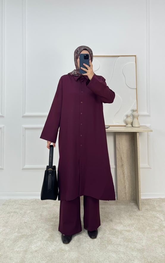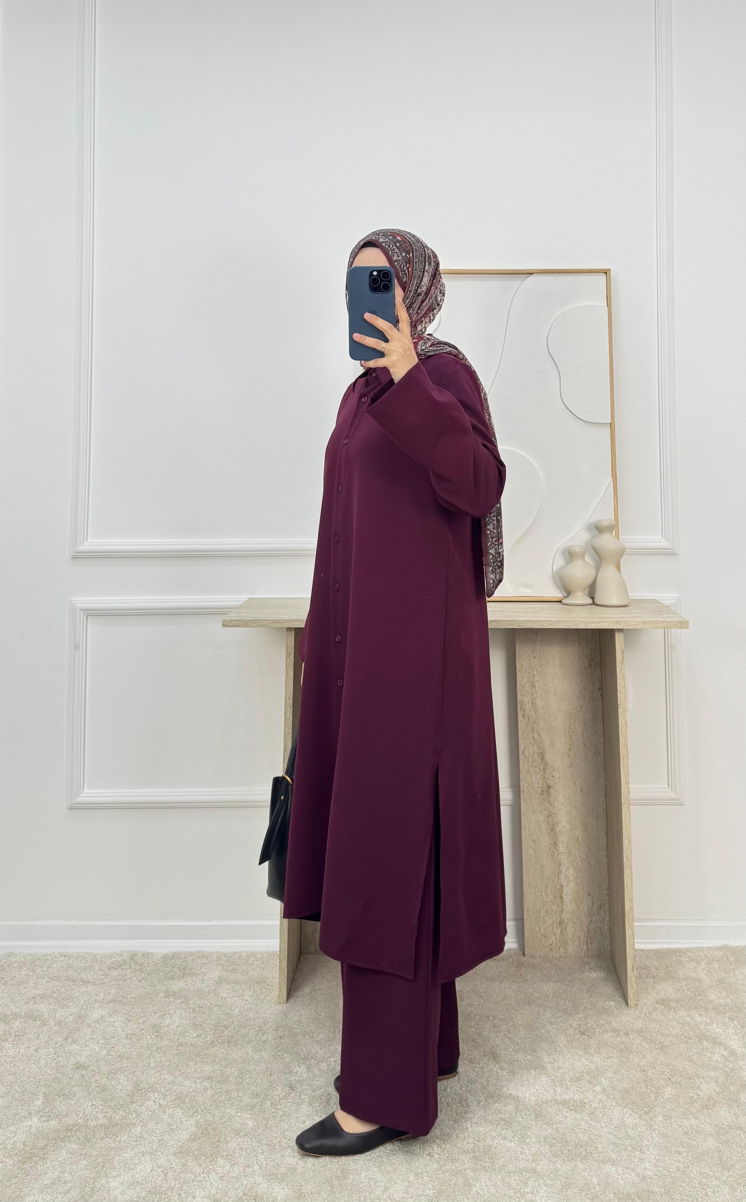 9592-dabıl krep kumaş pantolonlu takım-bordo (9592)