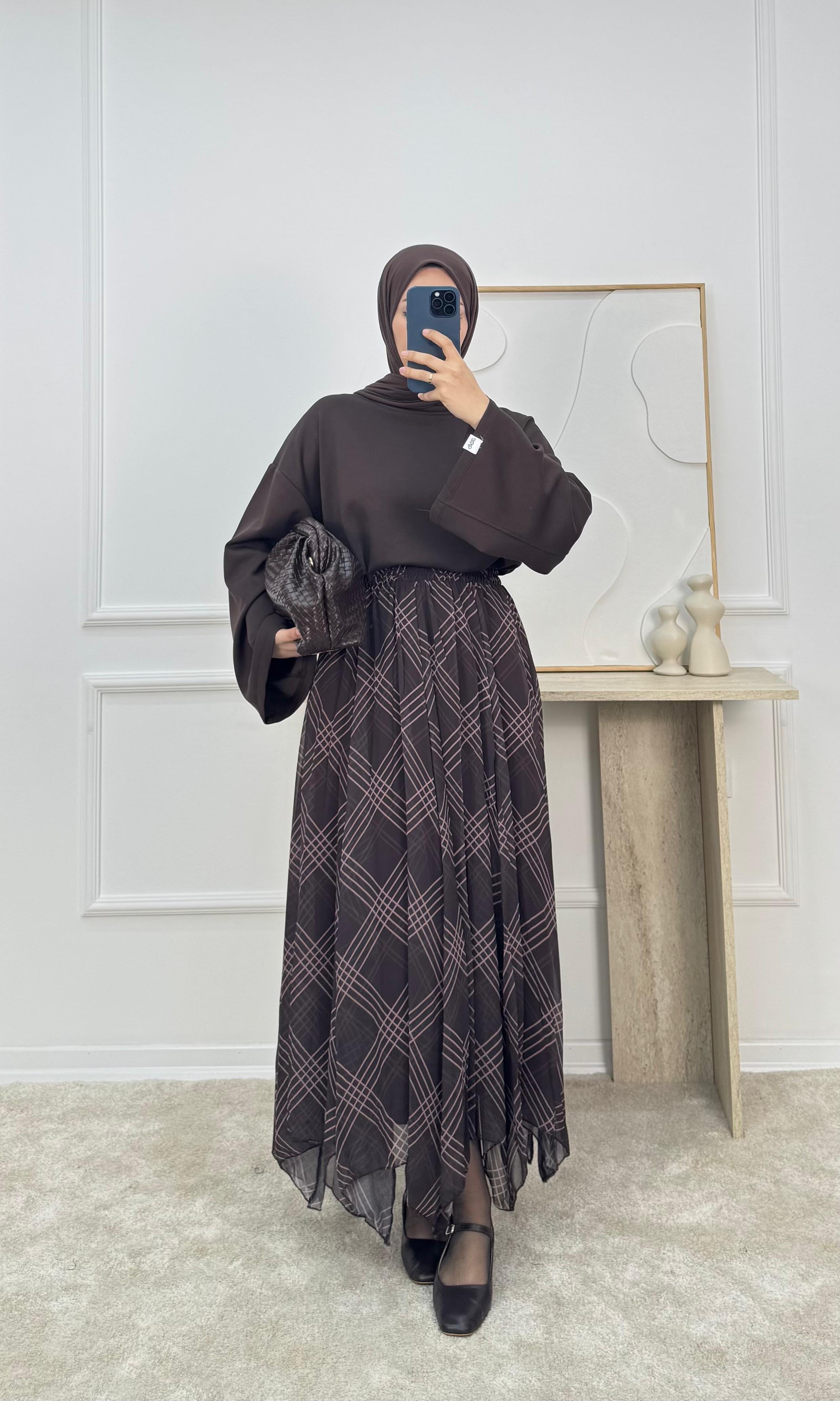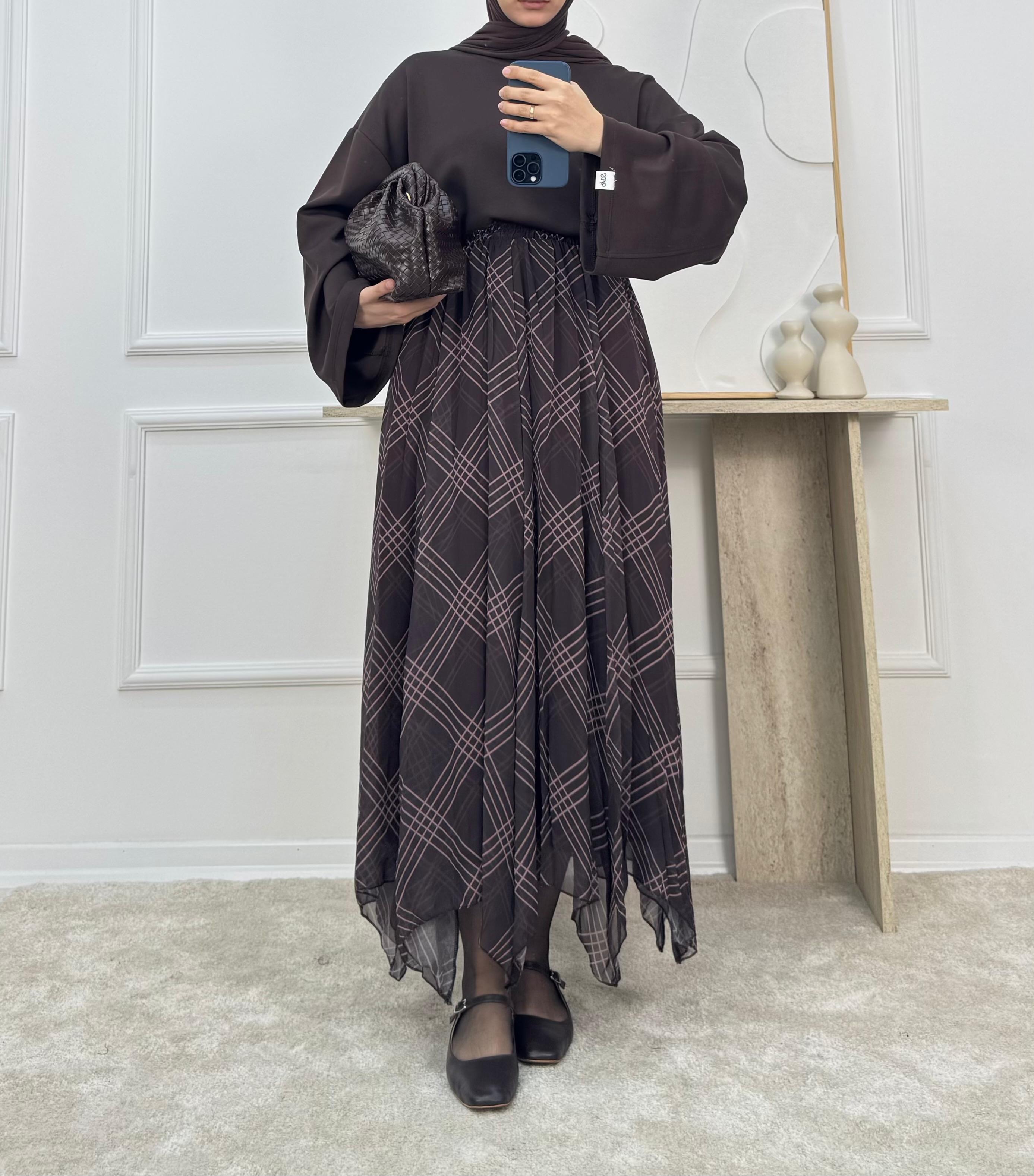 9615-ÇİZGİLİ ŞİFON ETEK-KAHVE (9615)