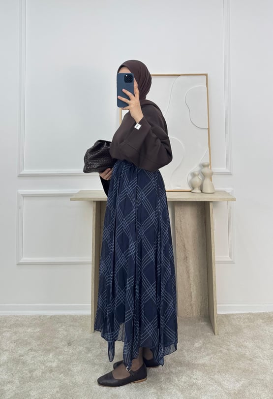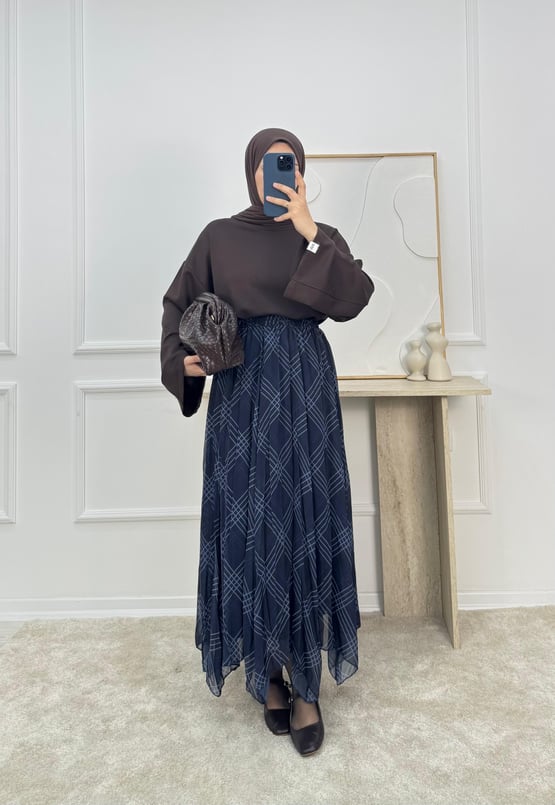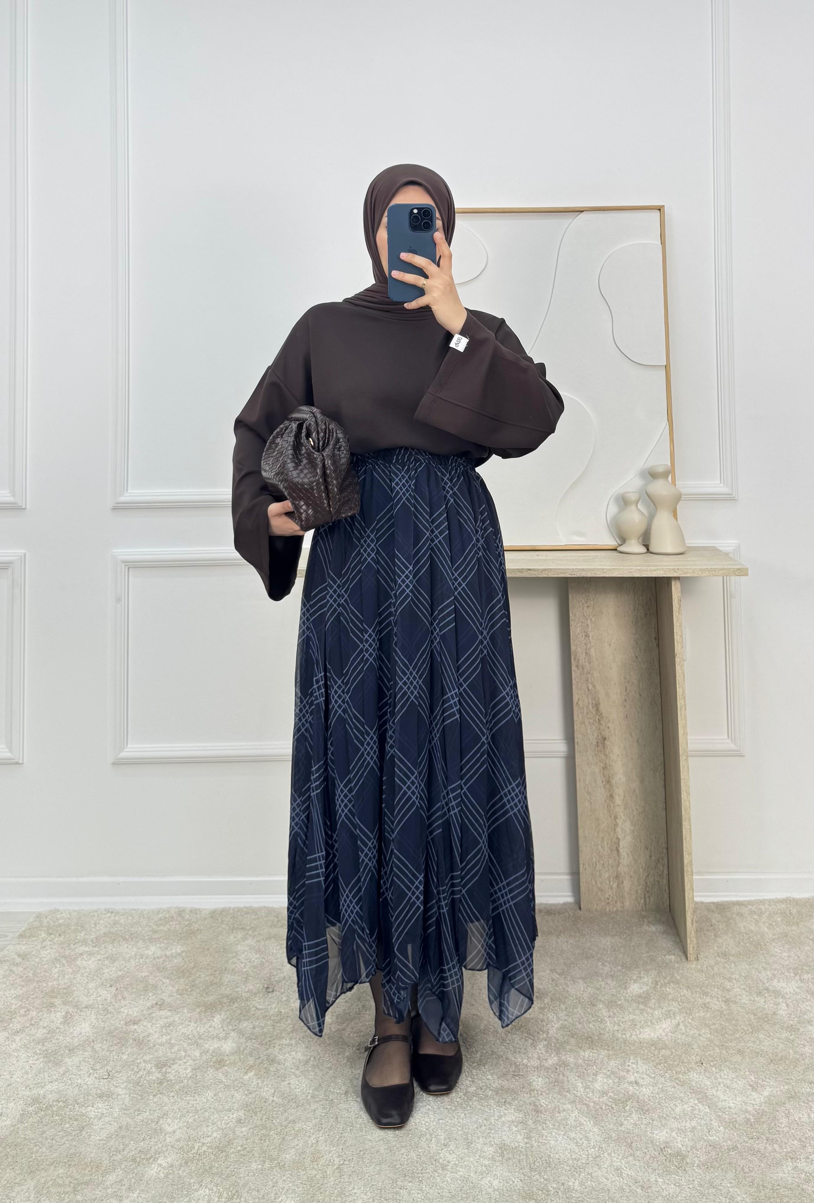 9615-ÇİZGİLİ ŞİFON ETEK-MAVİ (9615)