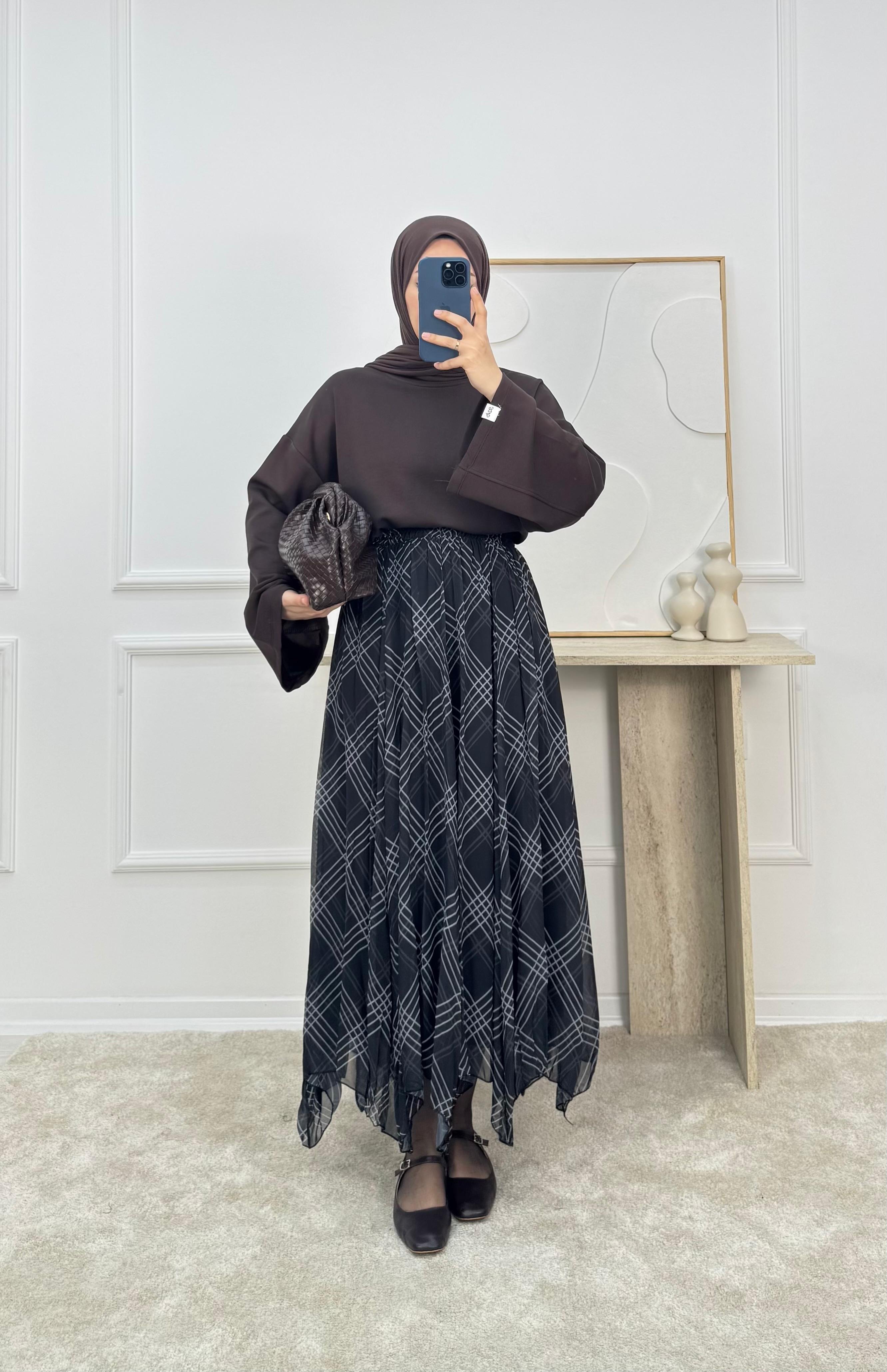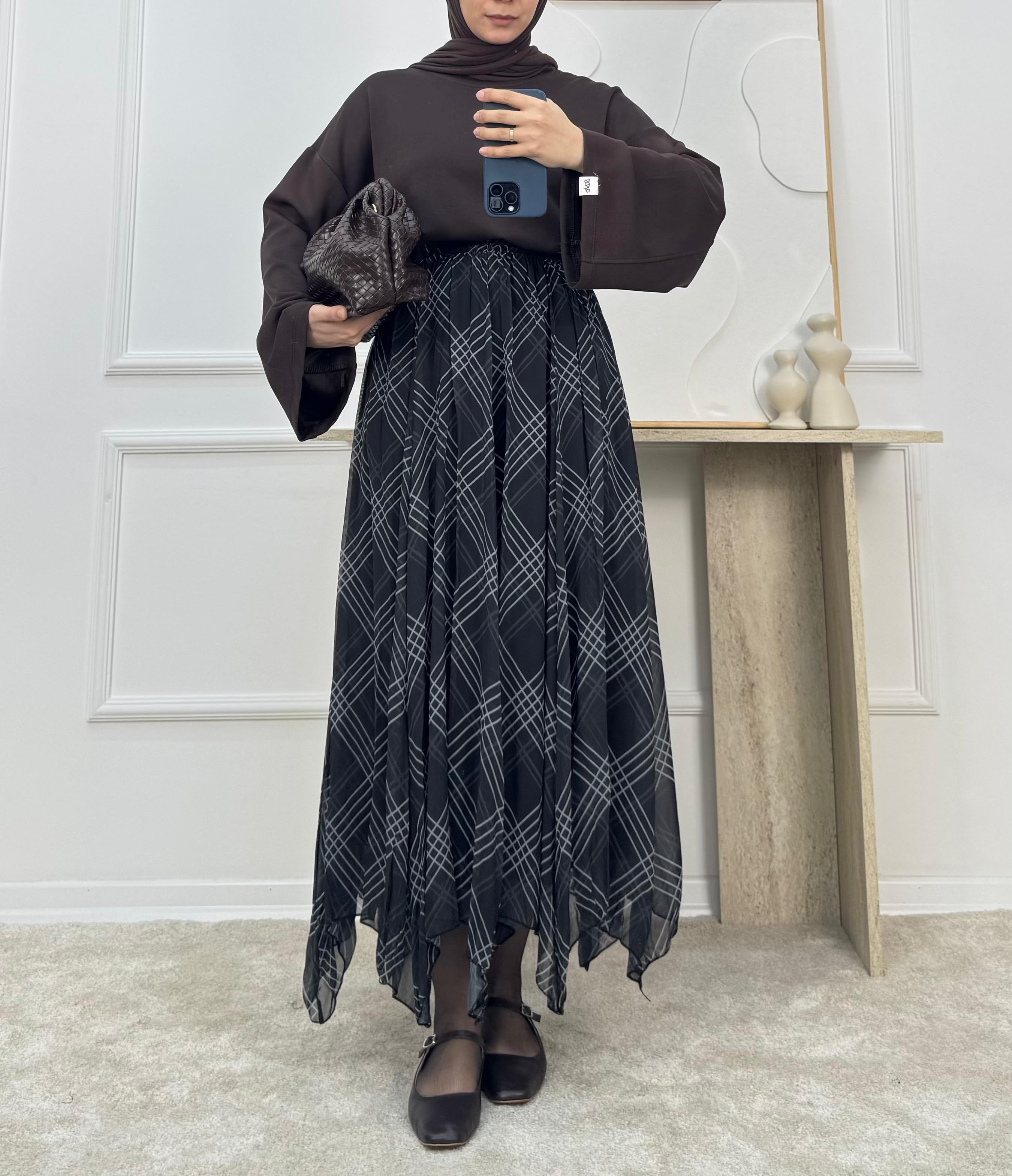9615-ÇİZGİLİ ŞİFON ETEK-SİYAH (9615)