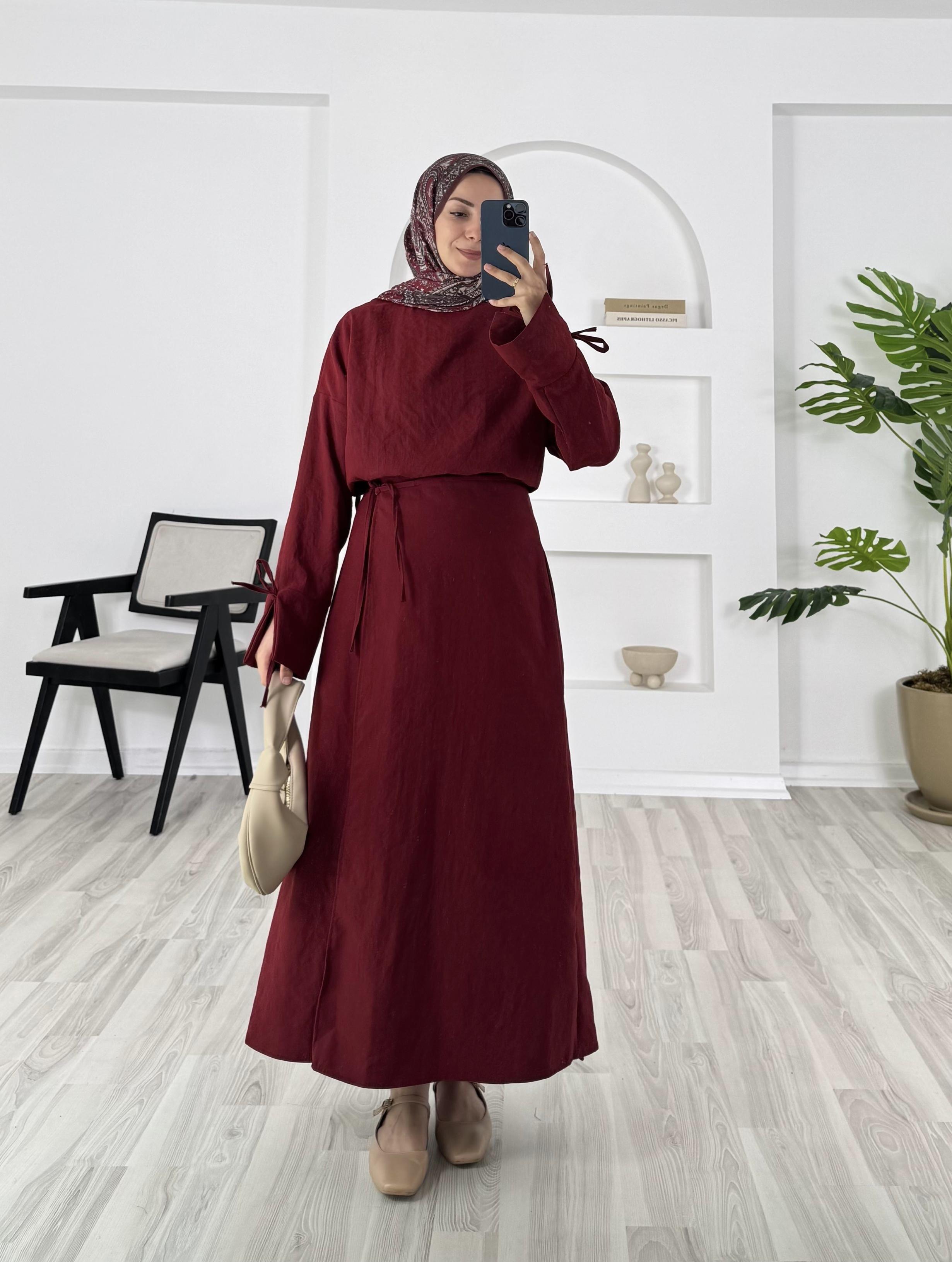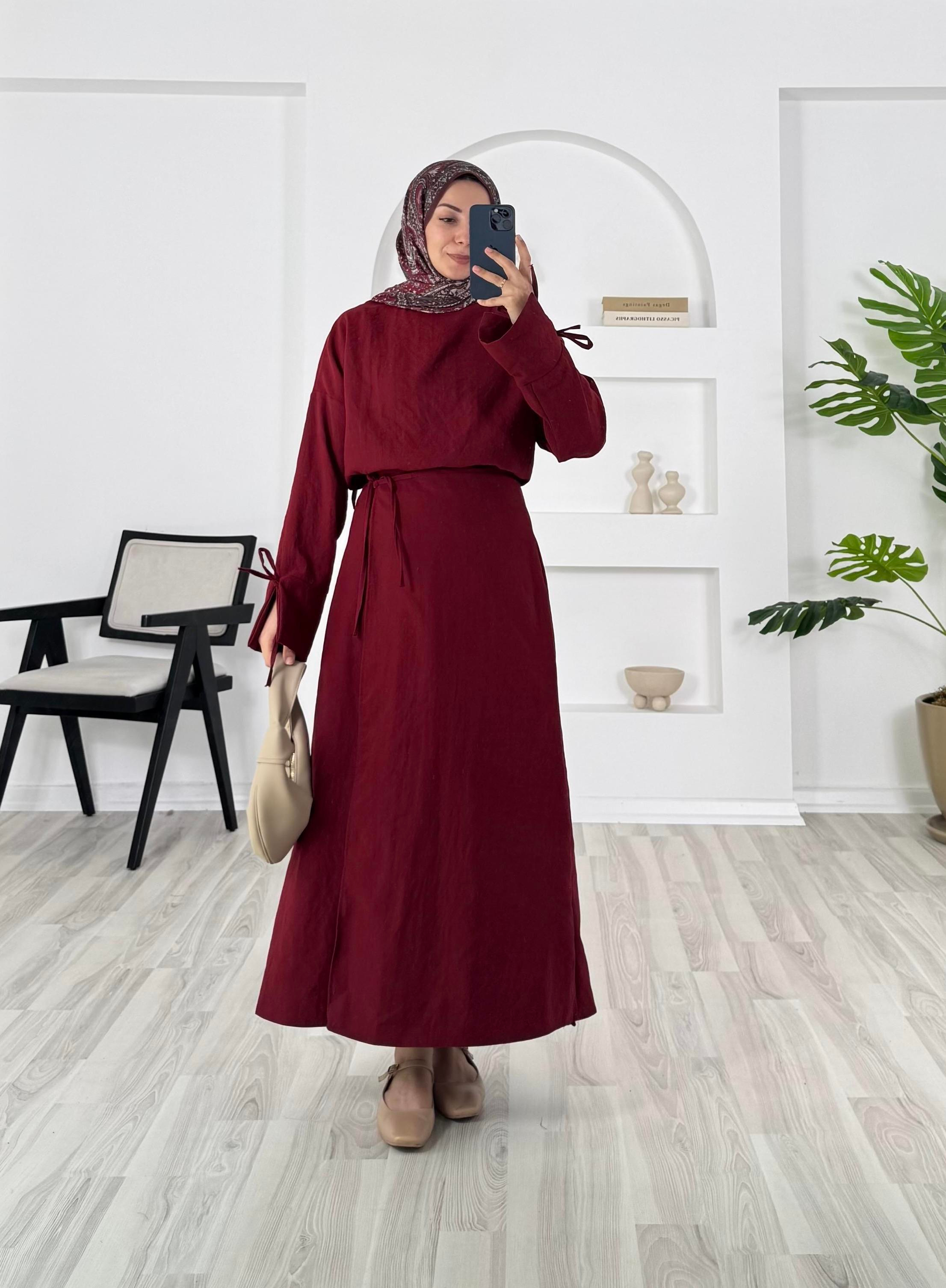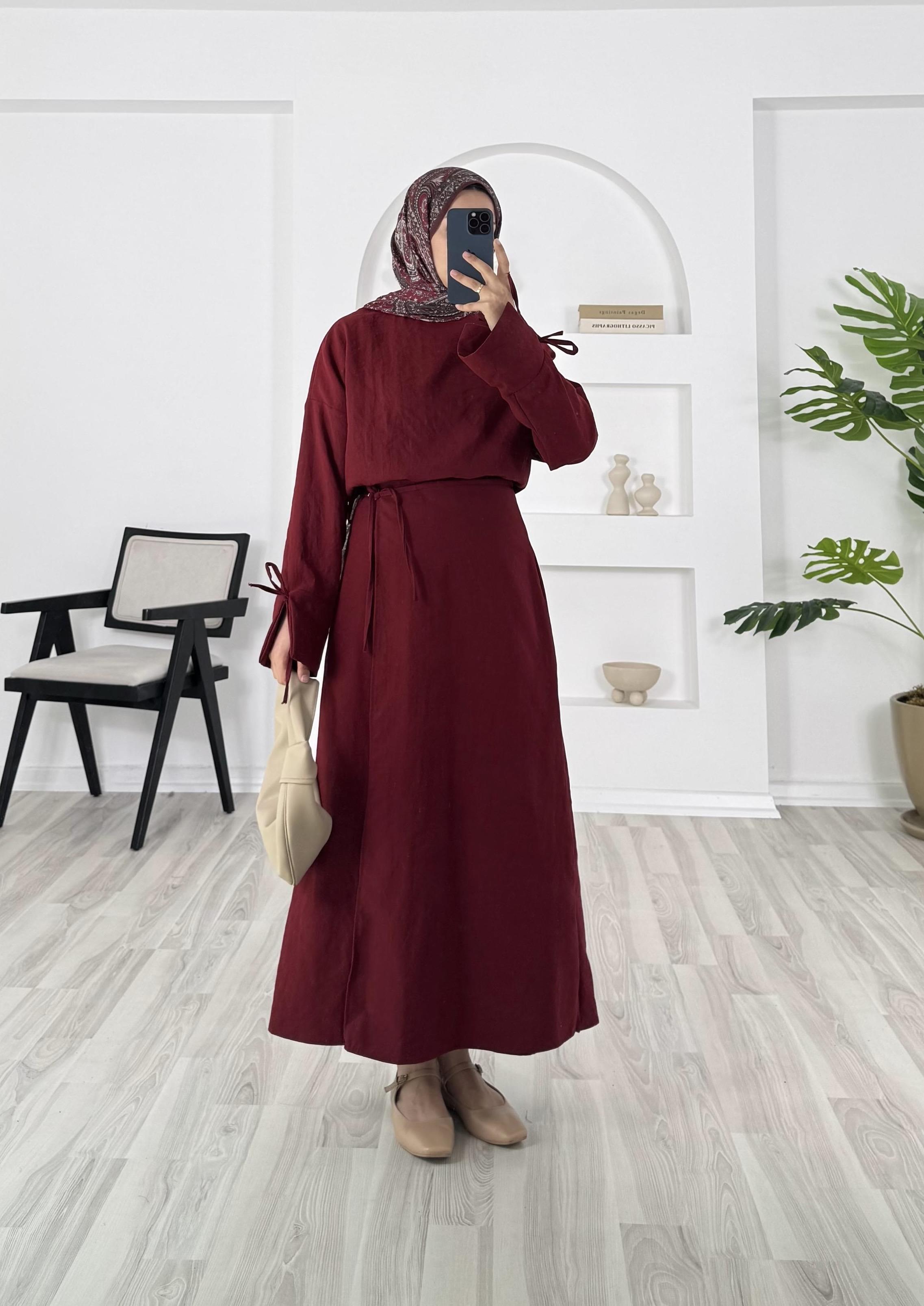 96311 - inci kumaş kolları ipli etekli, takım - bordo (96311)