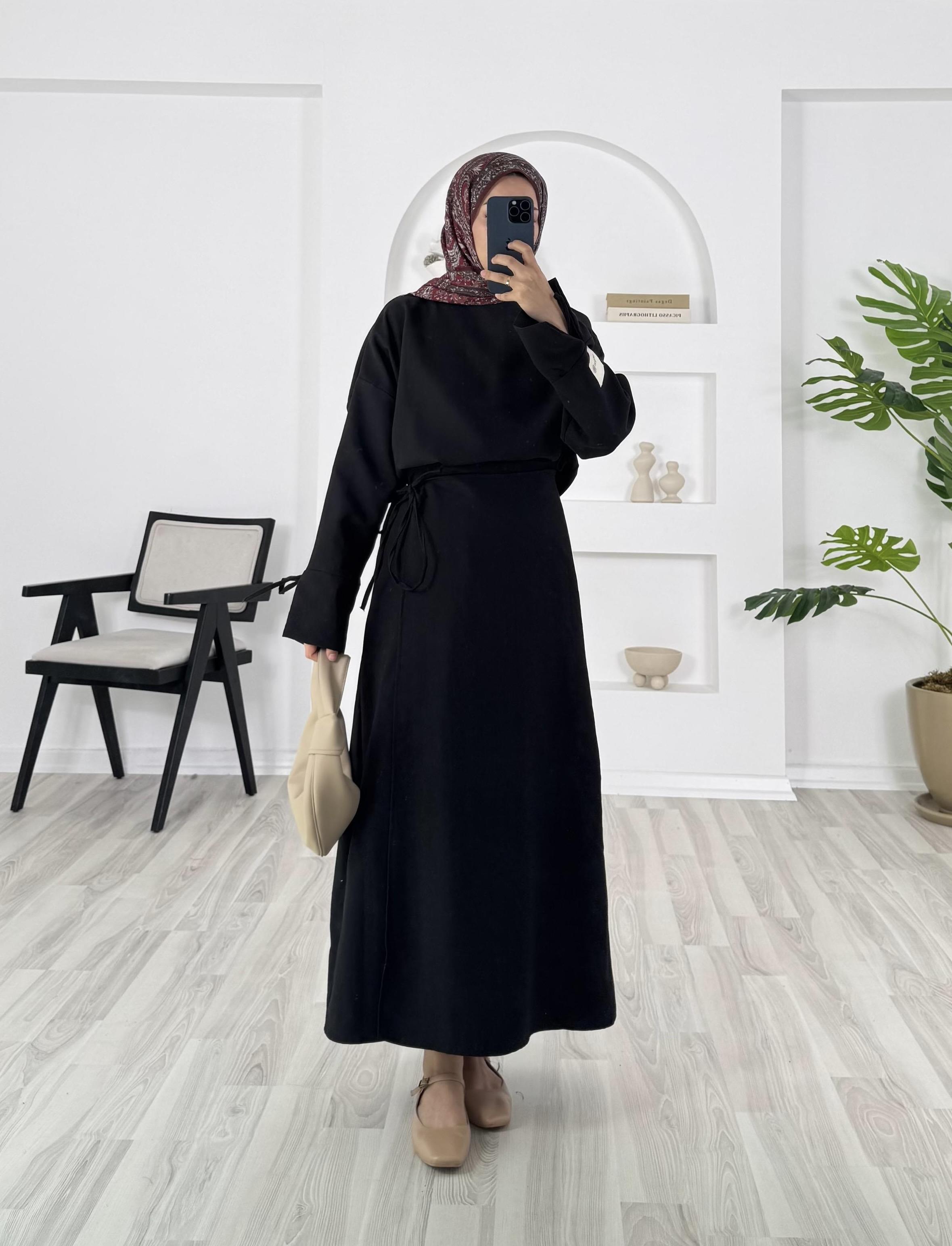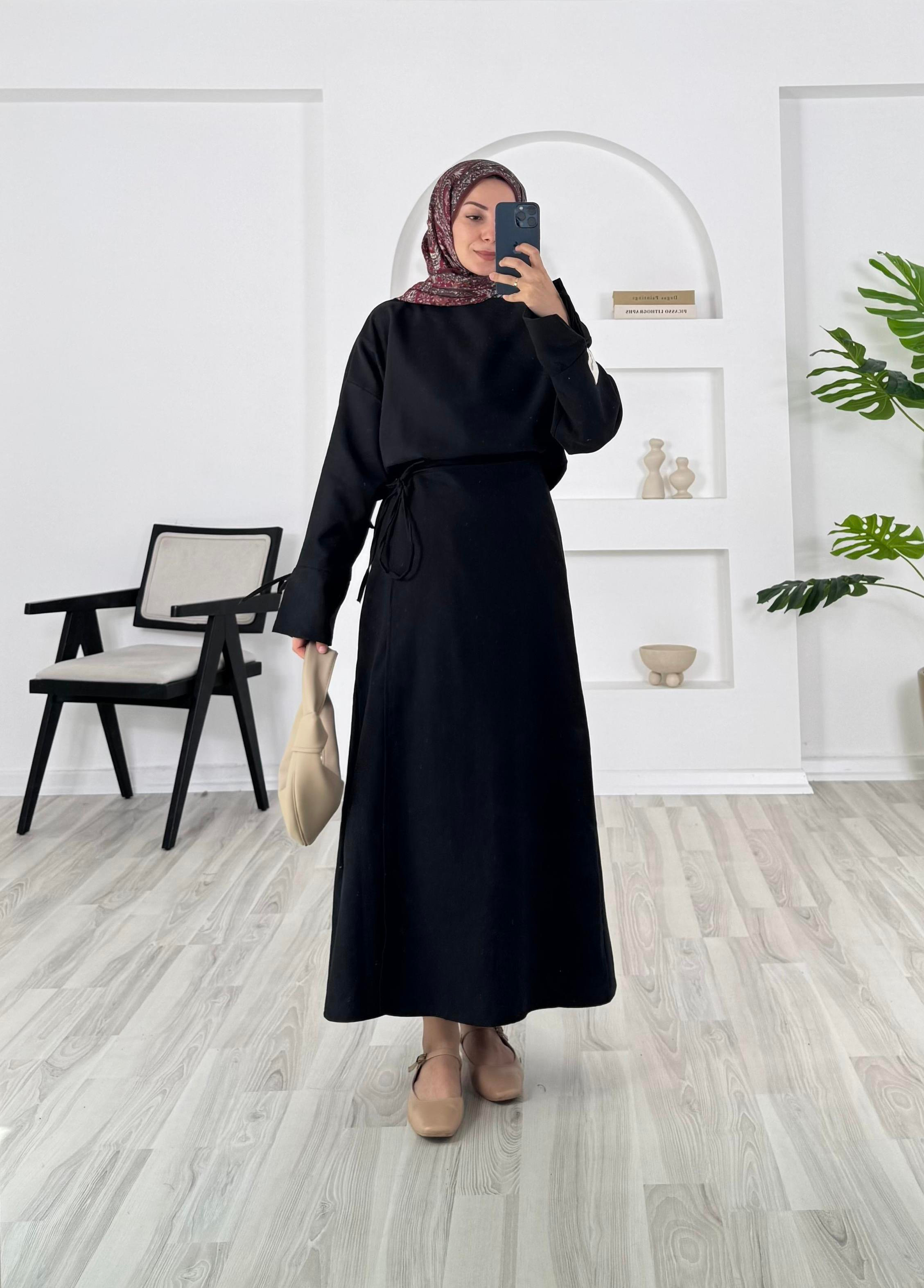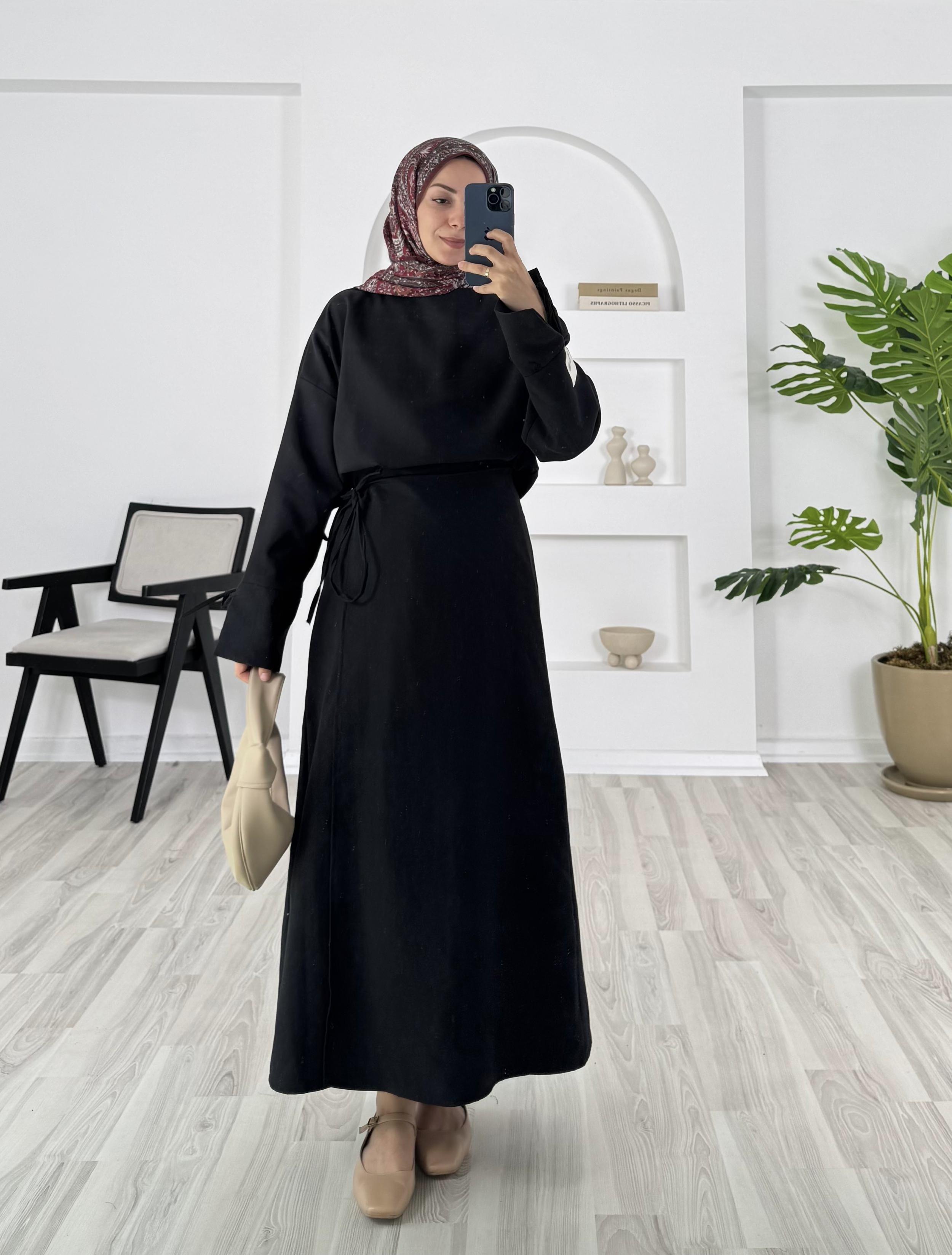 96311 - inci kumaş kolları ipli etekli, takım - siyah (96311)