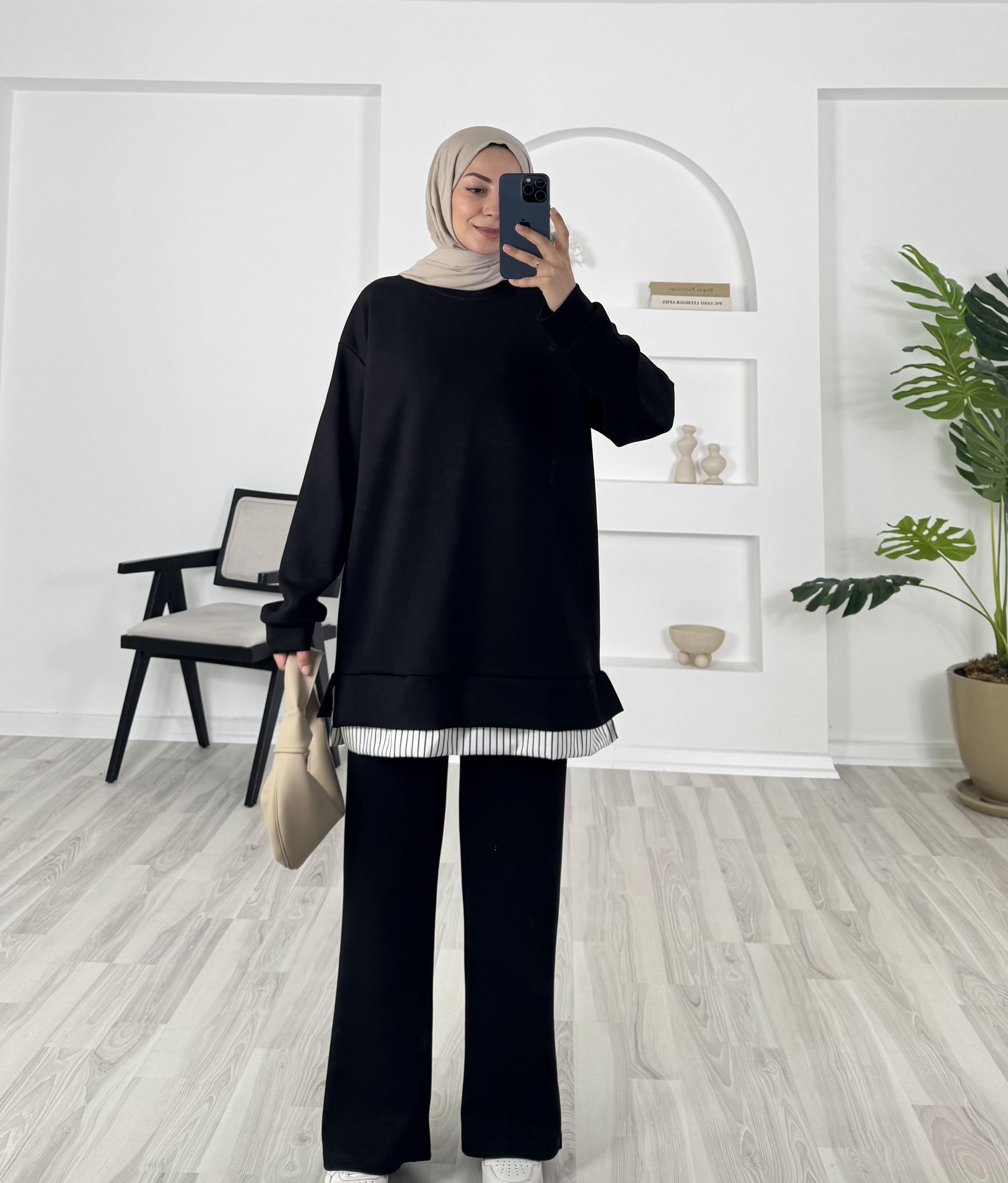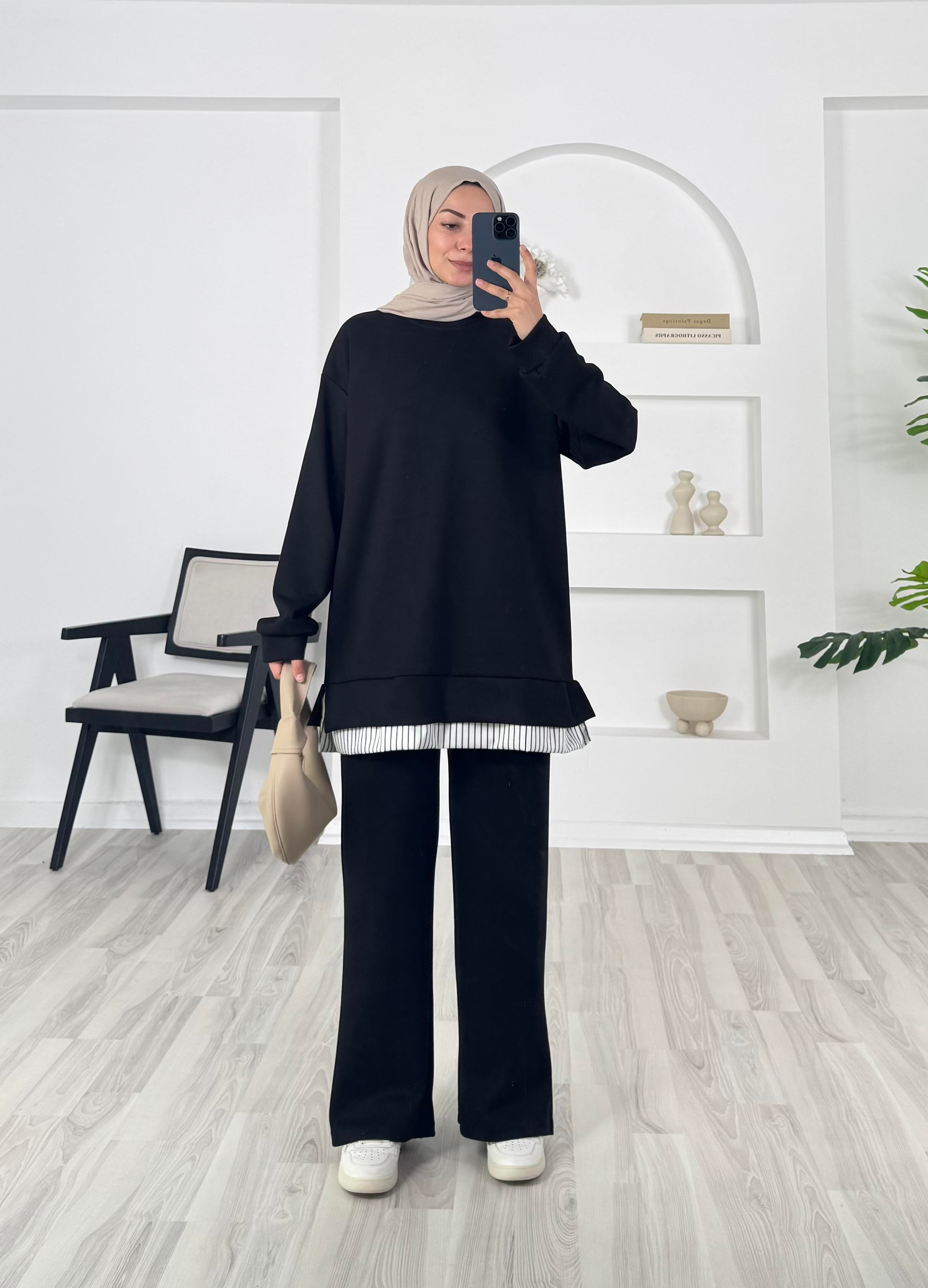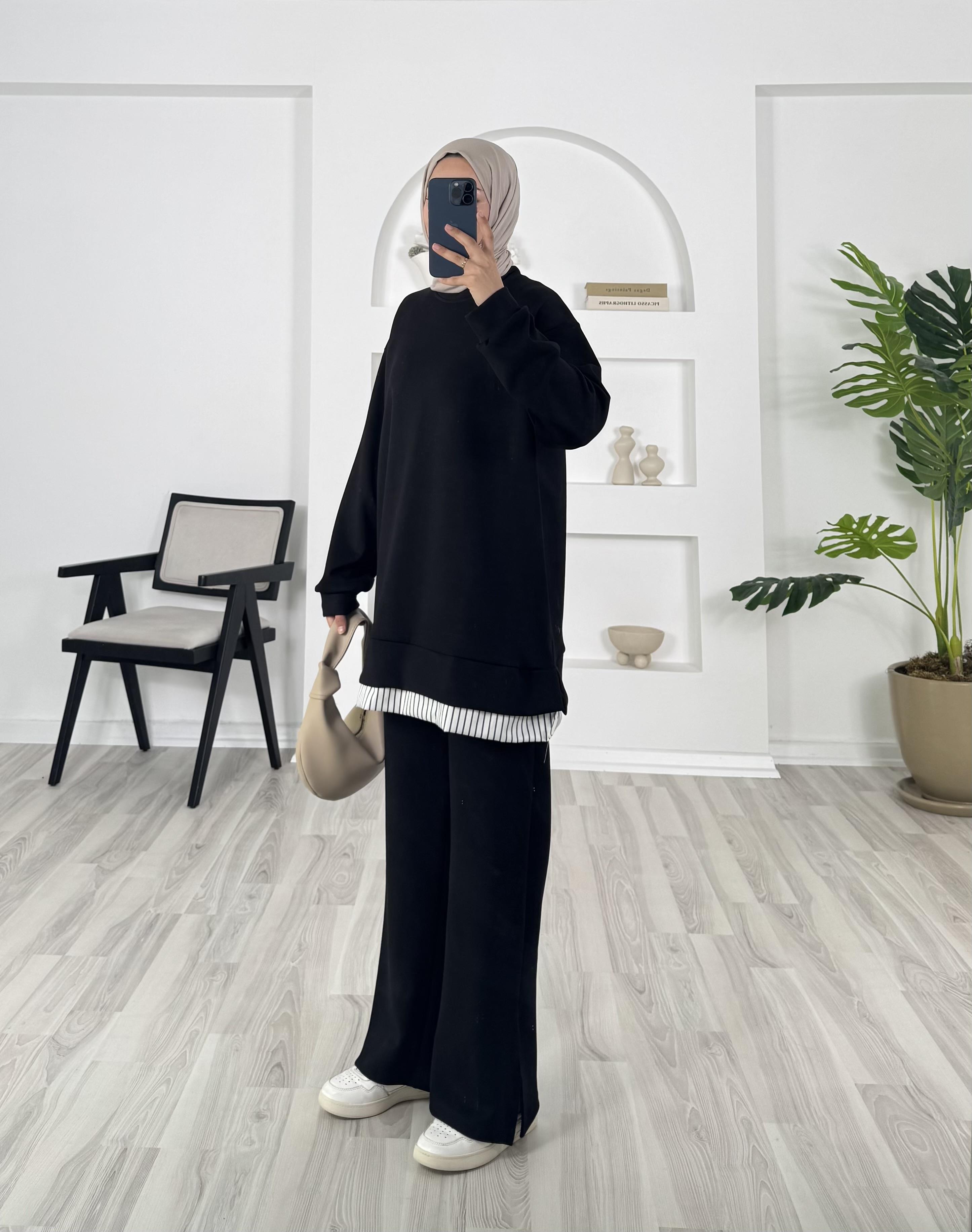 9636 - oysho kumaş bol paça pantolonlu takım - siyah (9636)