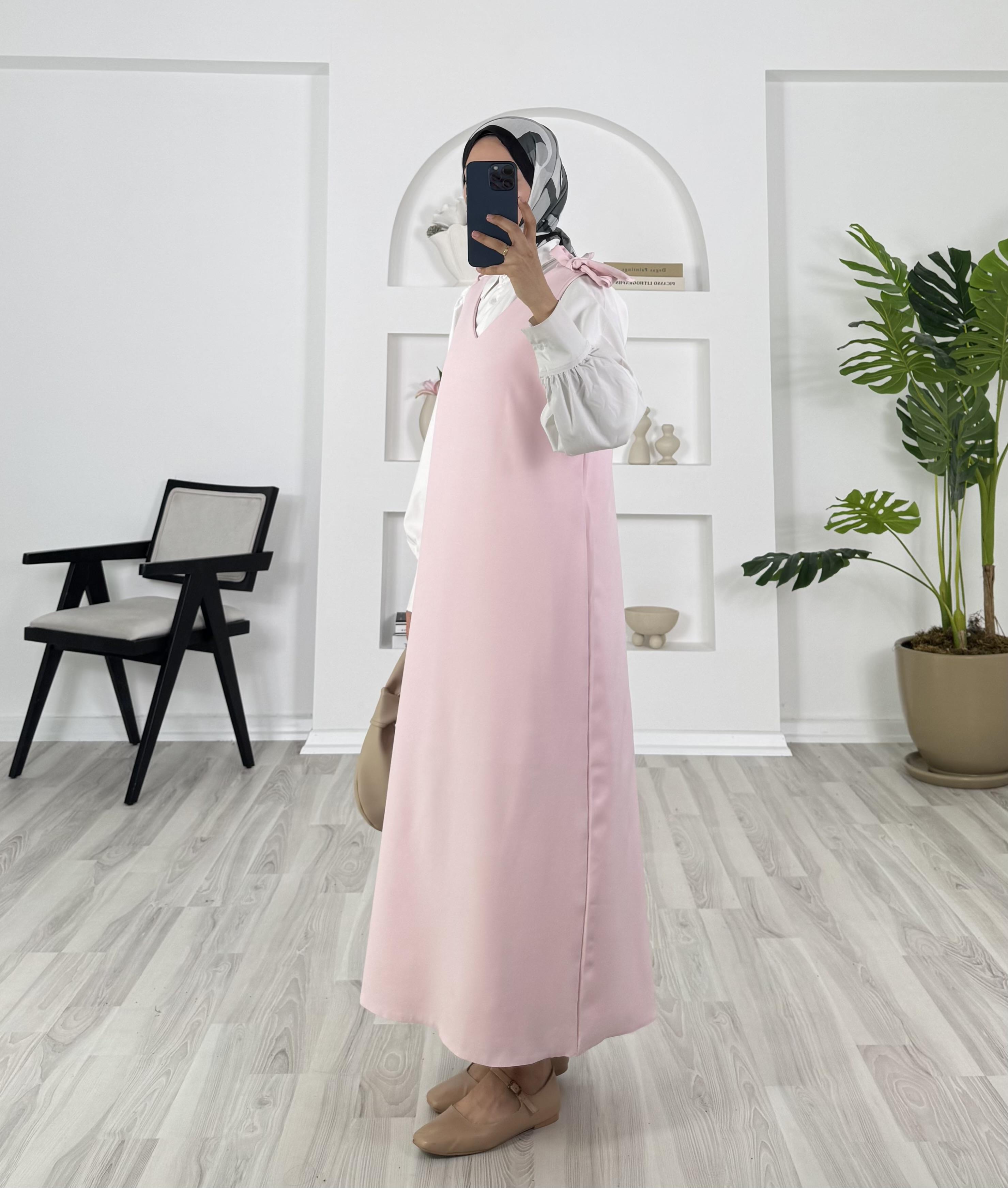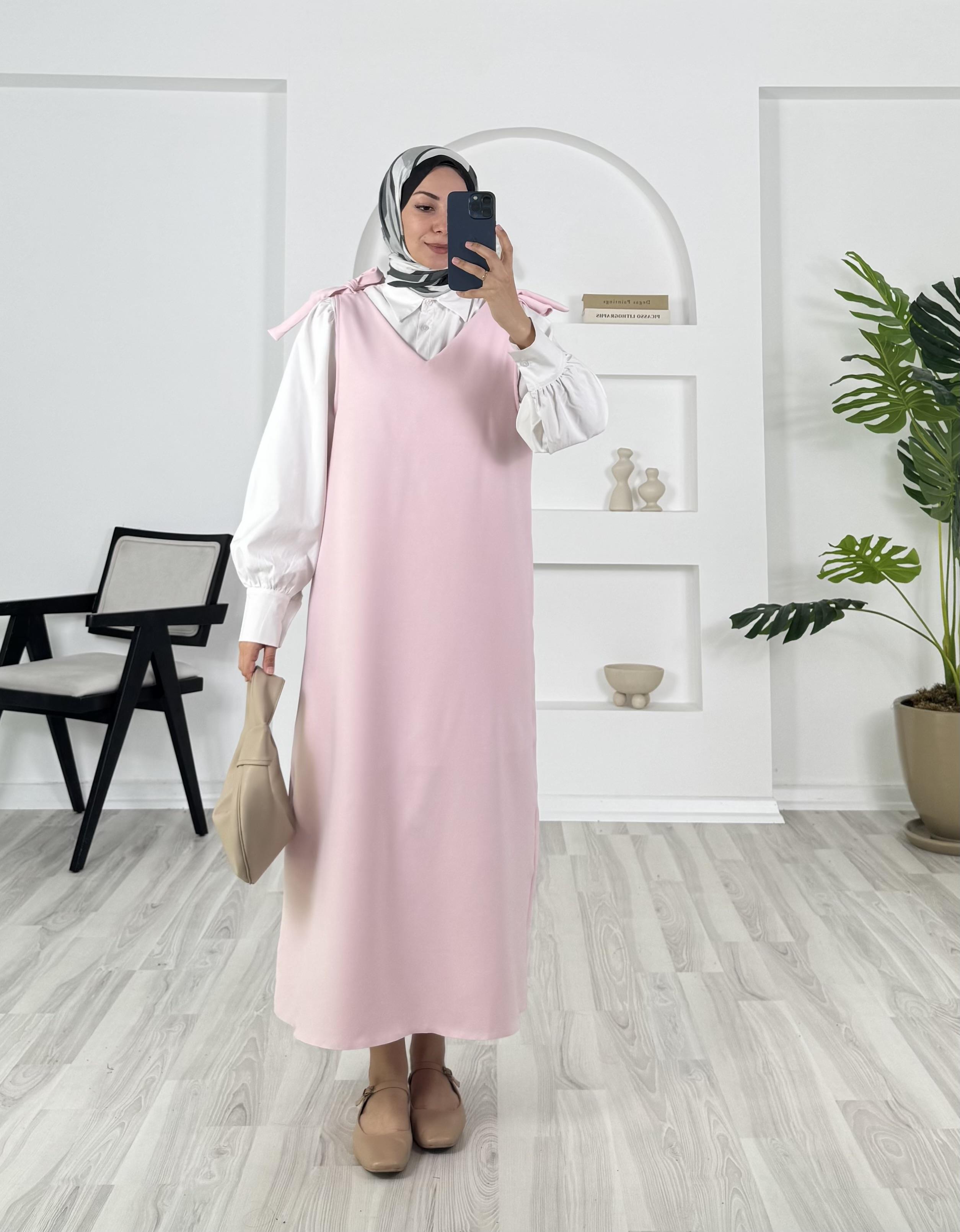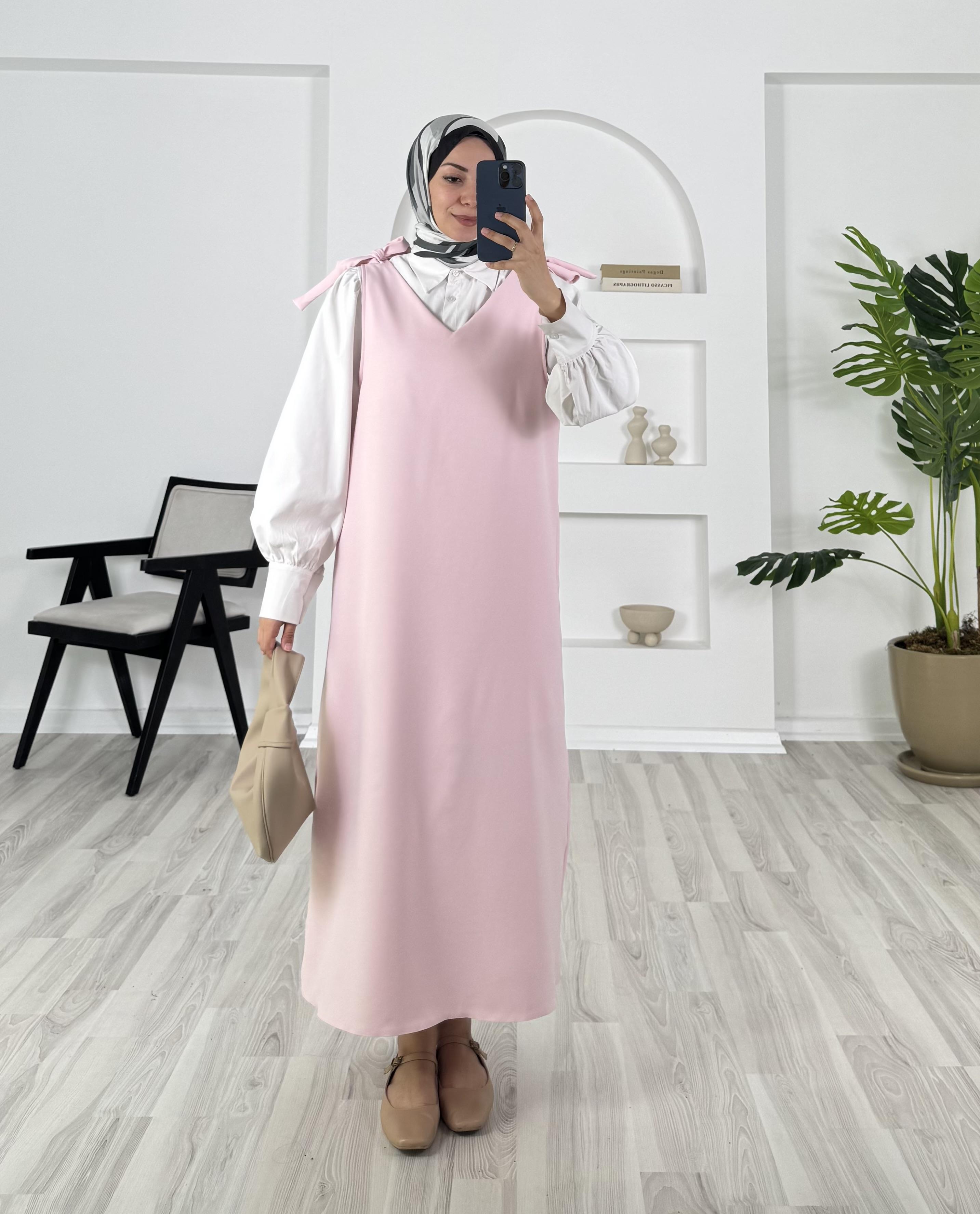 9641-dabıl kumaş-omuz detaylı V yaka jile- pembe (9641)