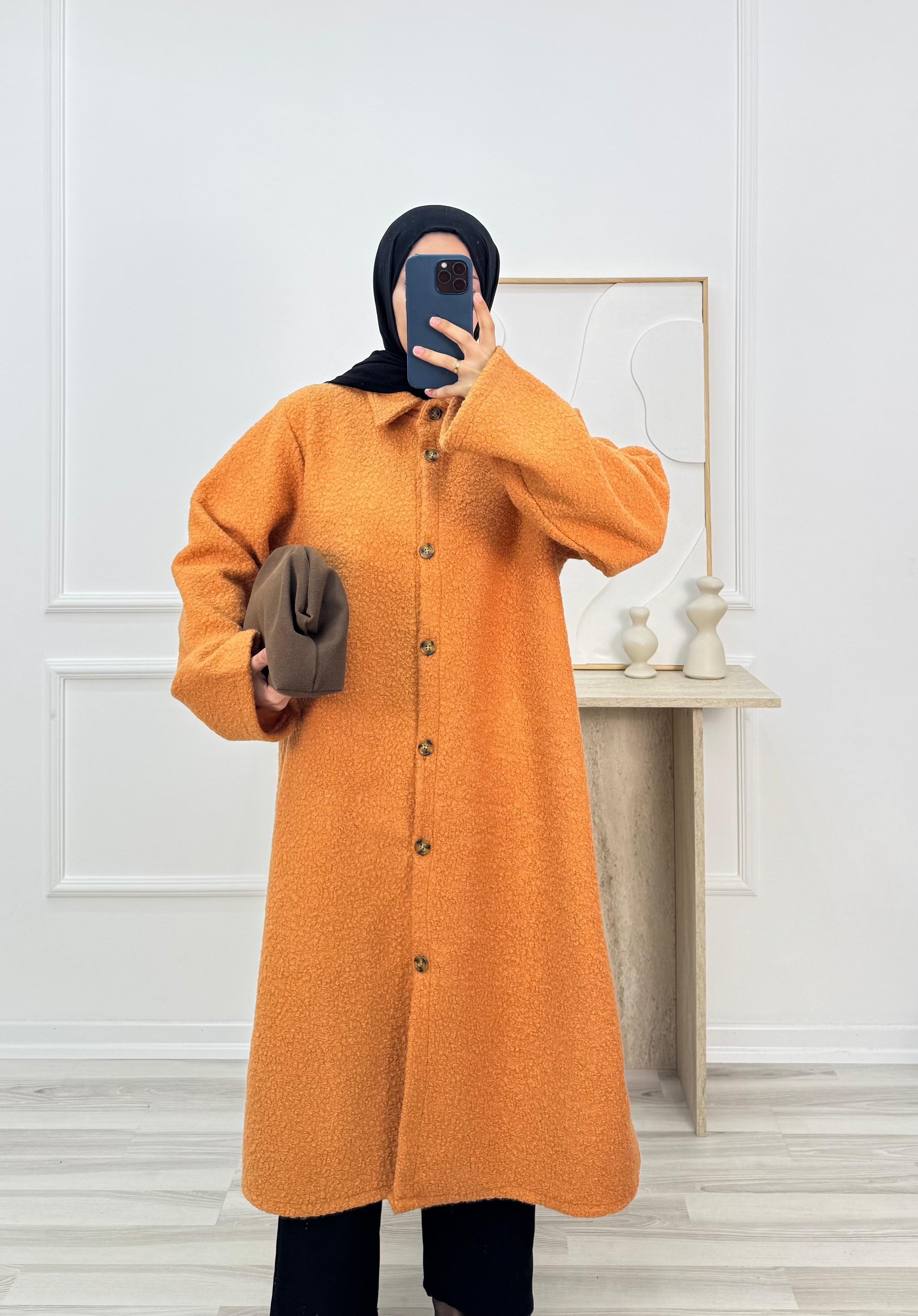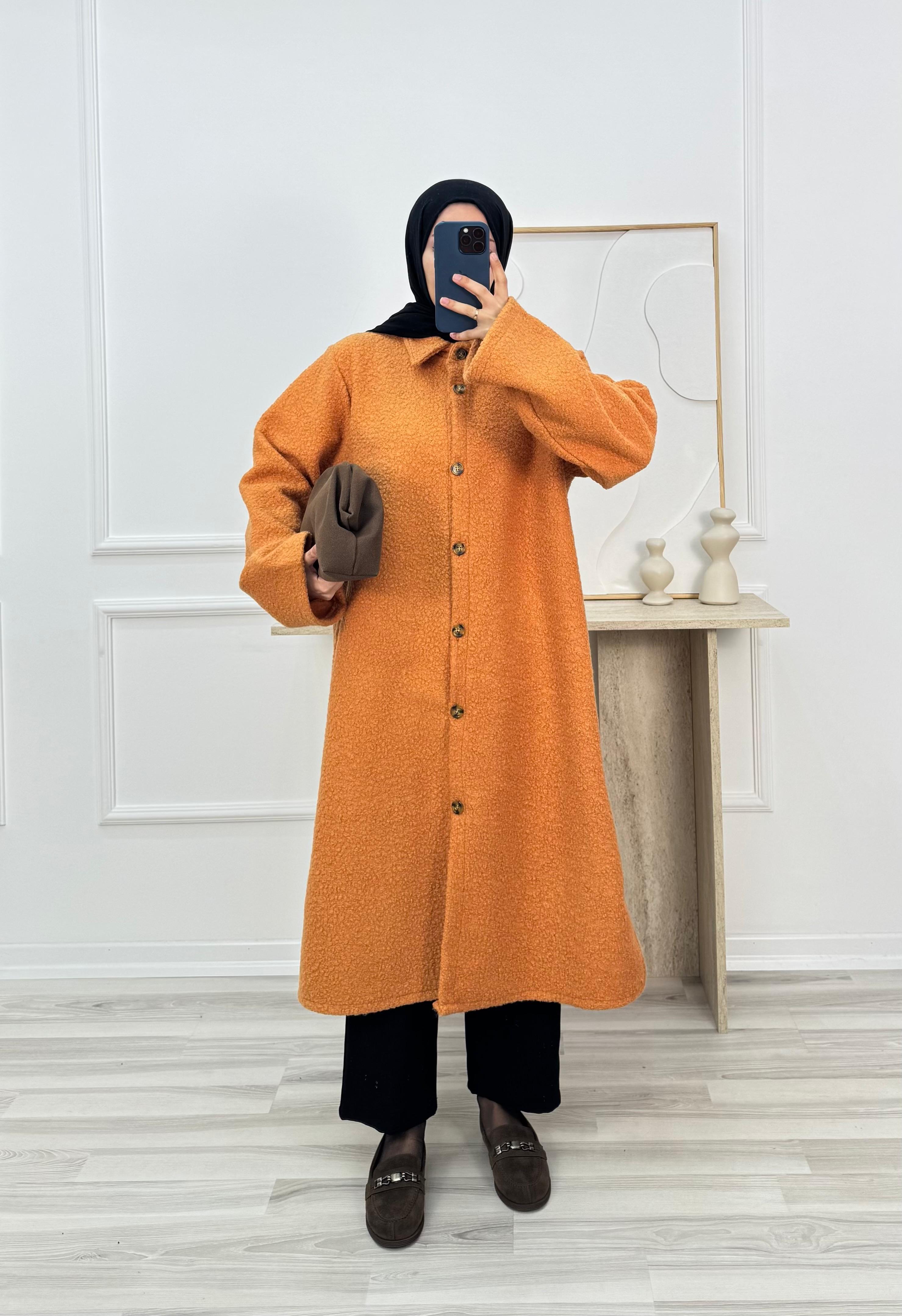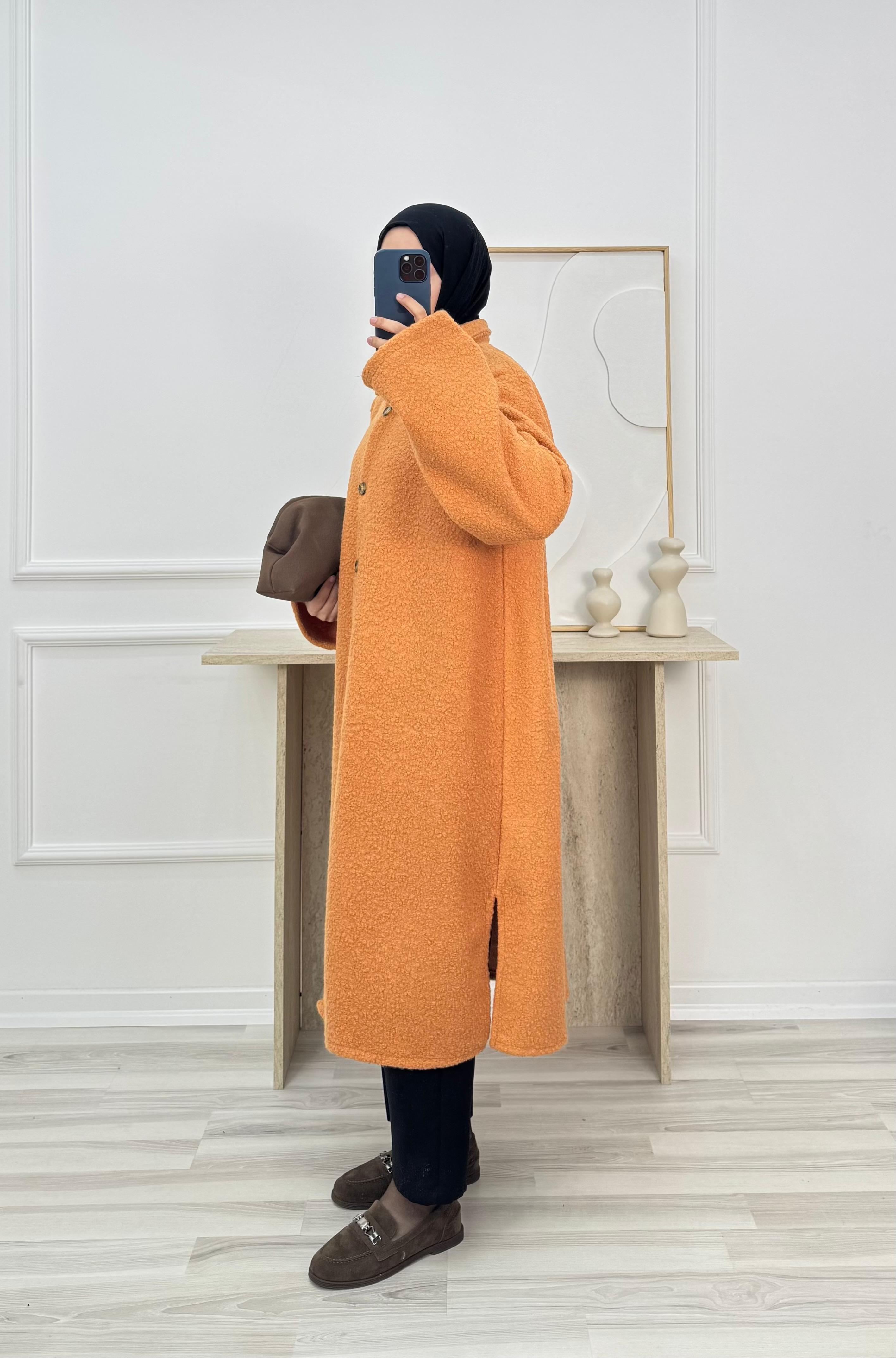 9685-buklet kumaş düğmeli kaban-turuncu (9685)