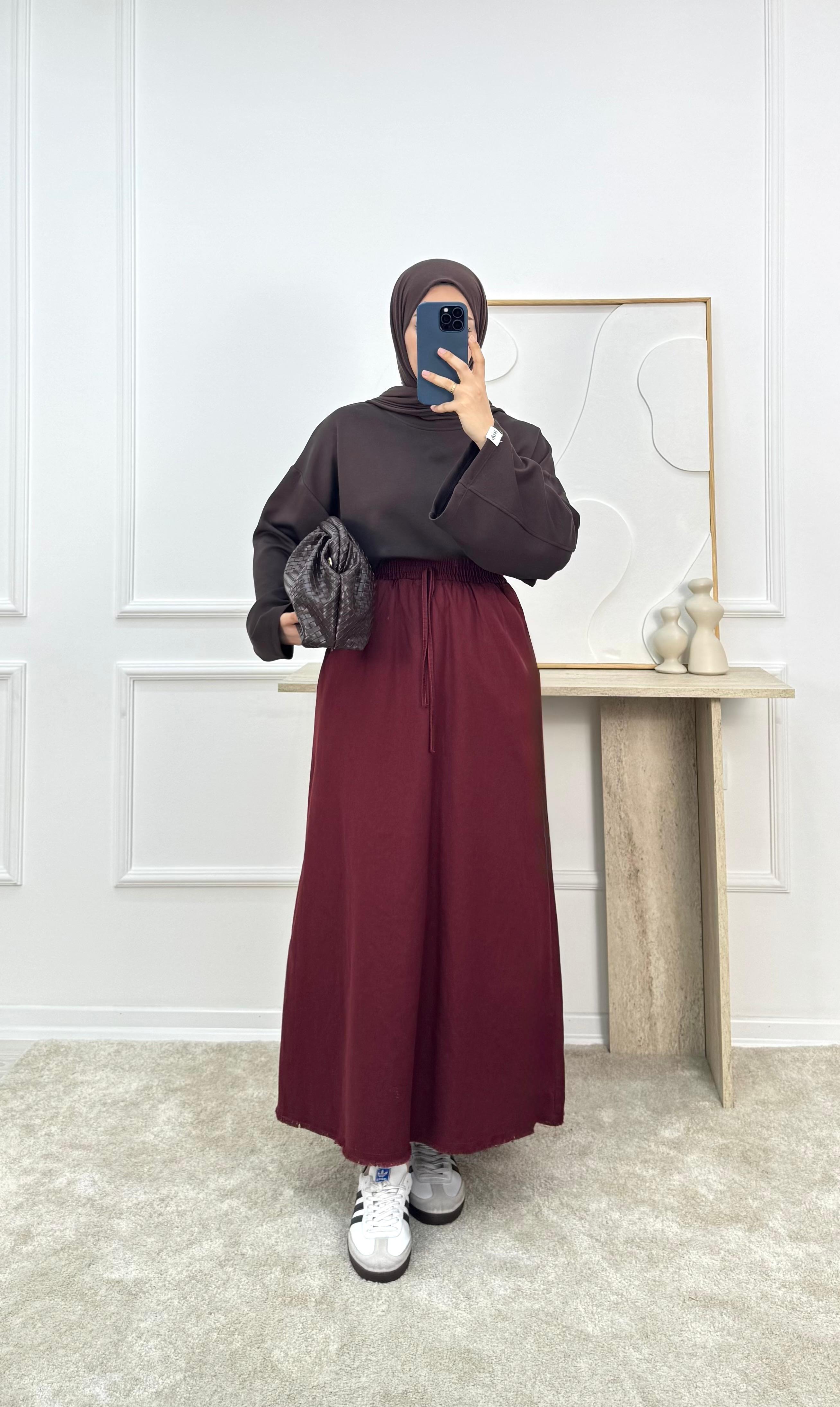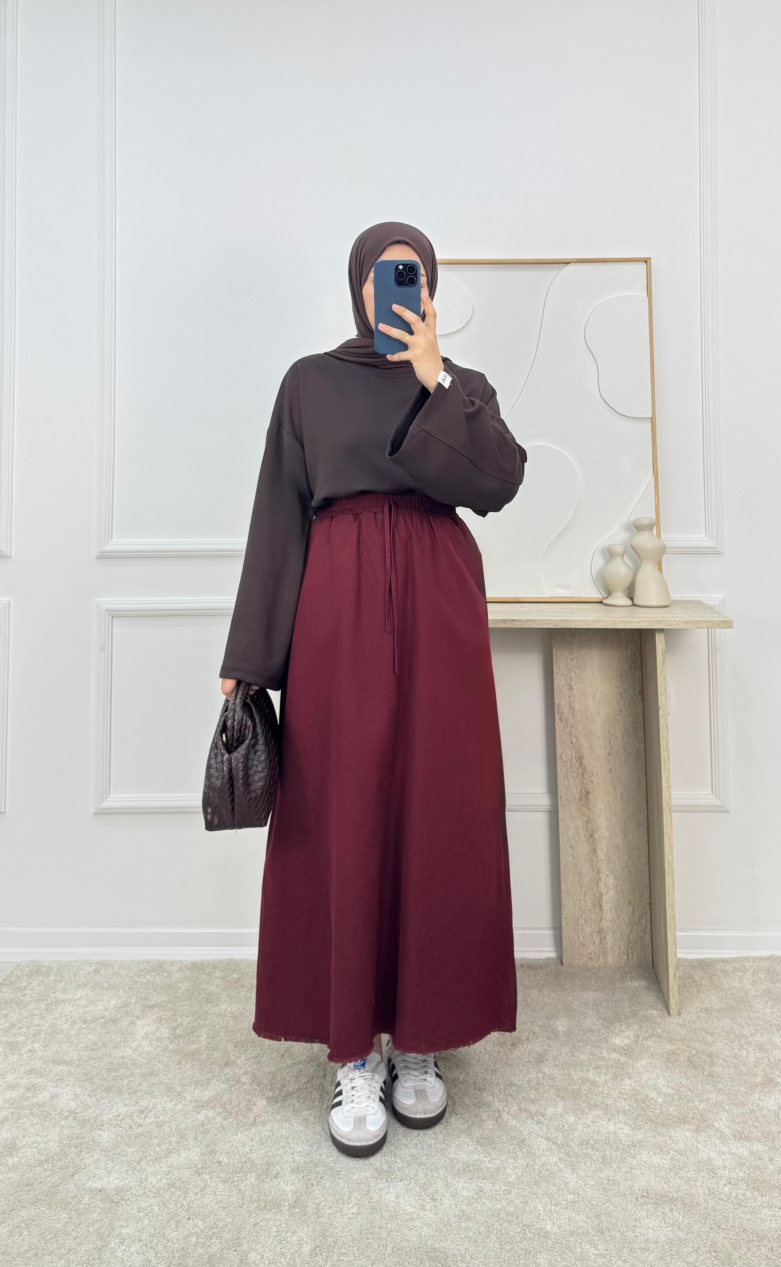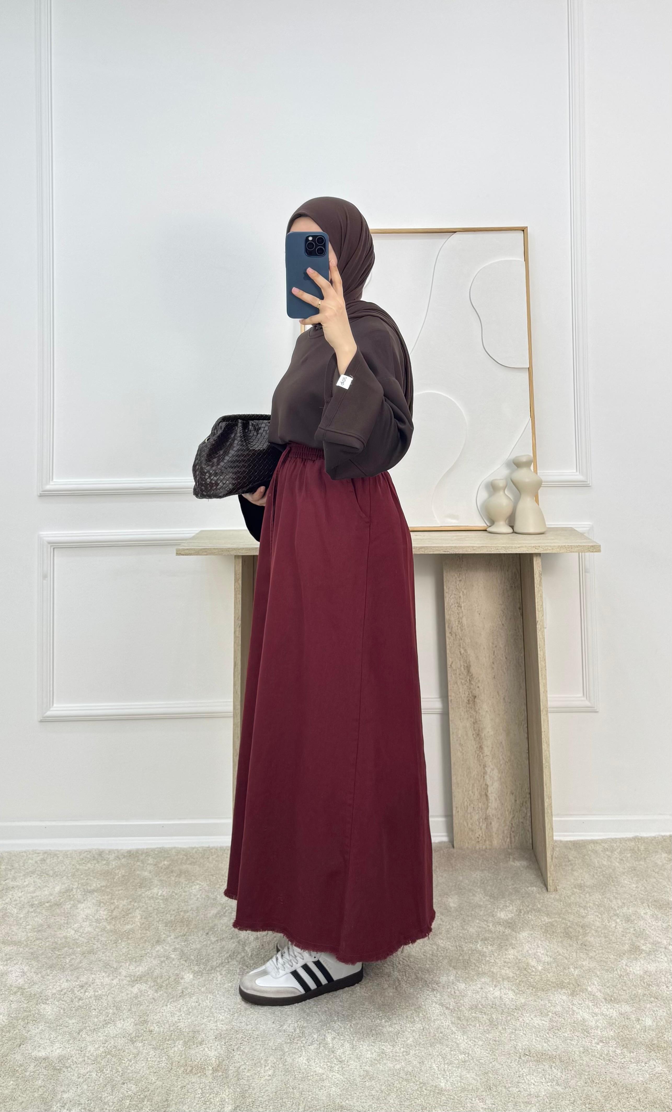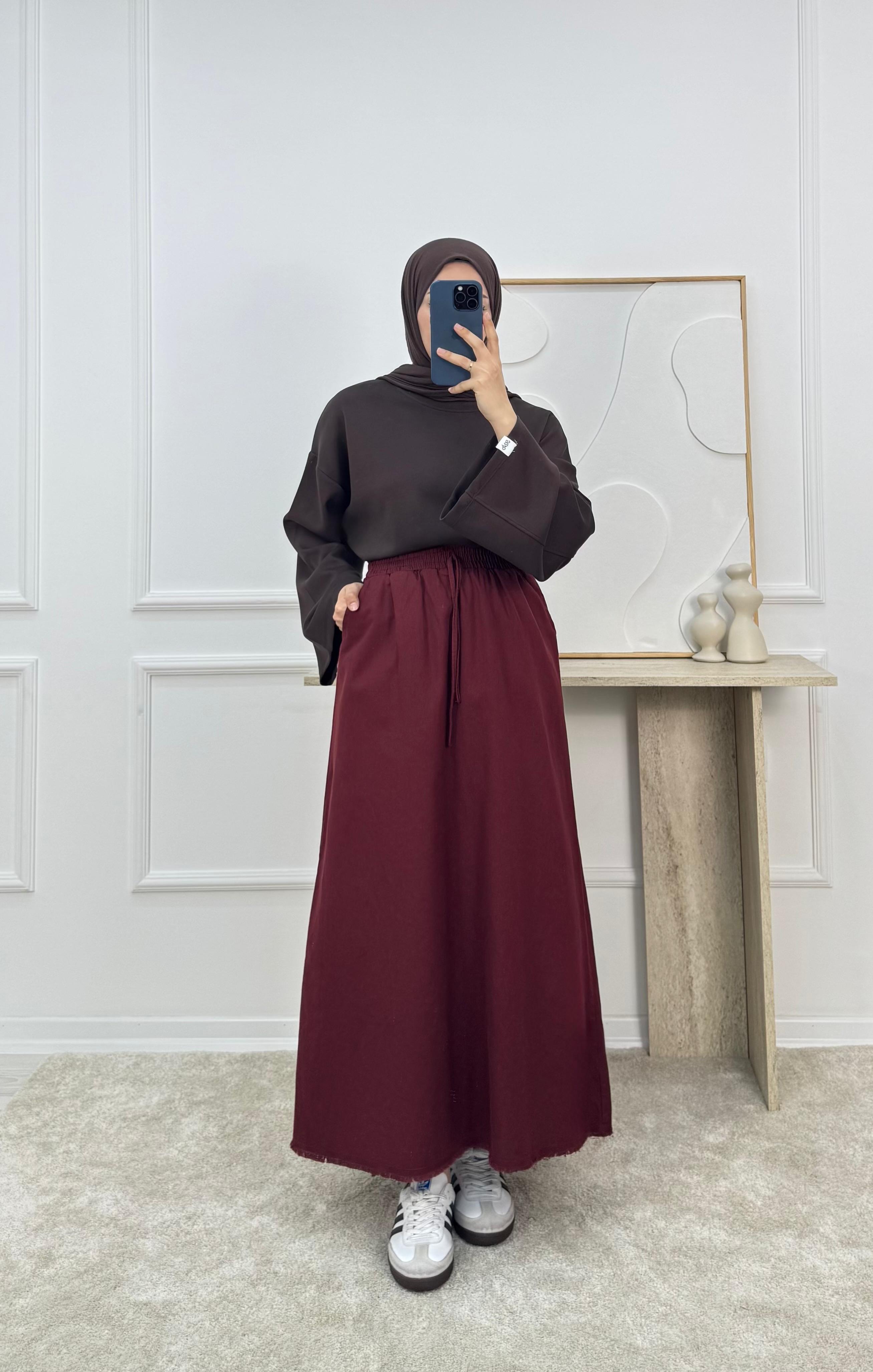9731-gabardin kumaş cepli etek - bordo (9731)