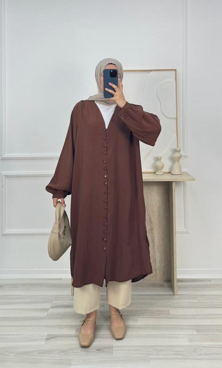 9960-önü düğmeli biyeli modal cupra tunik-acı kahve (9960)