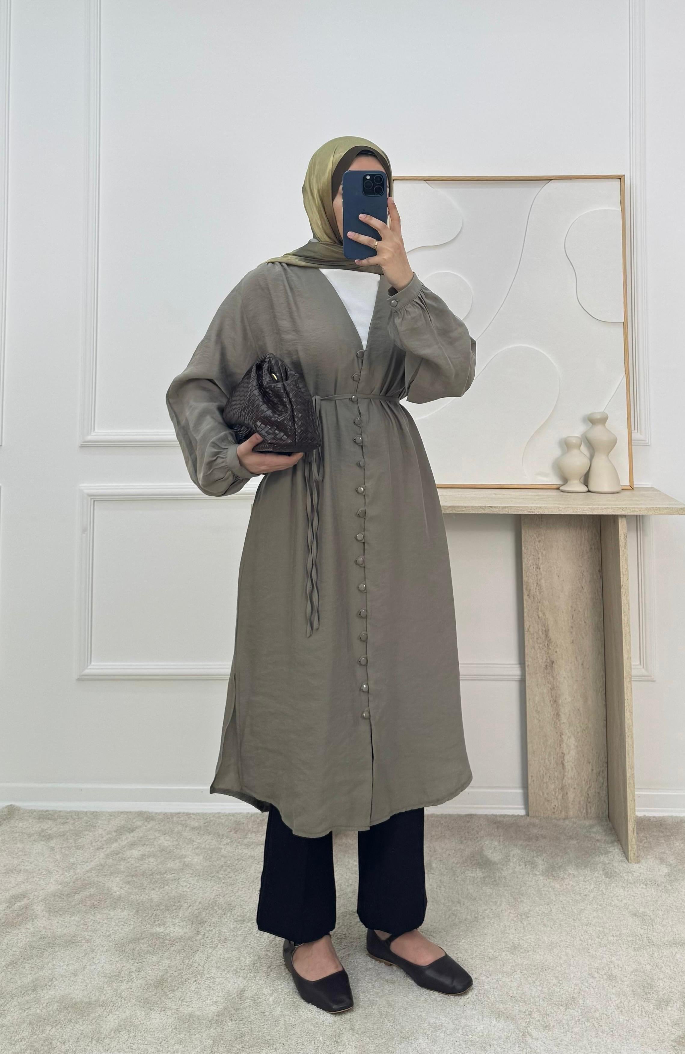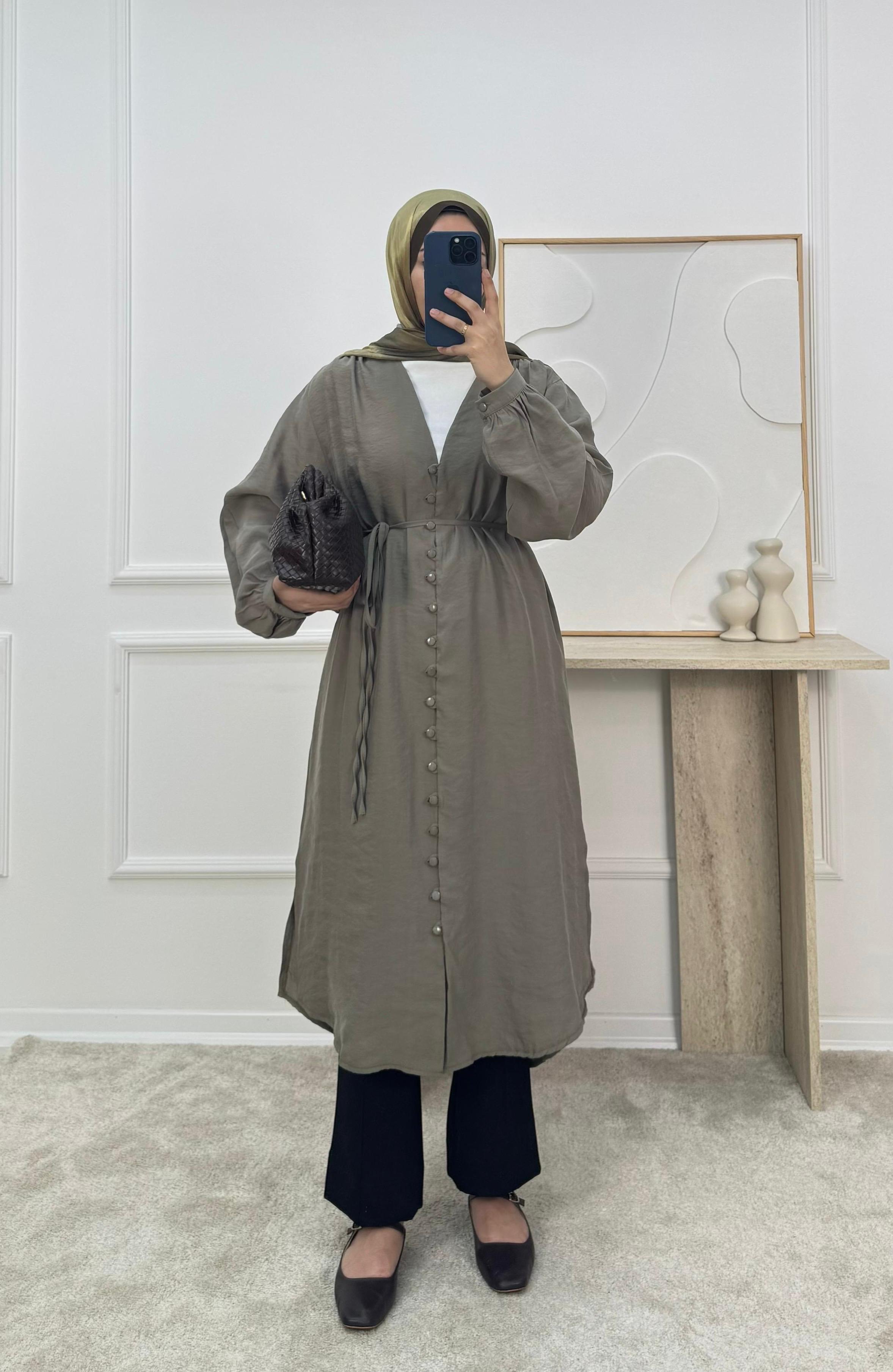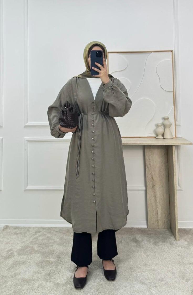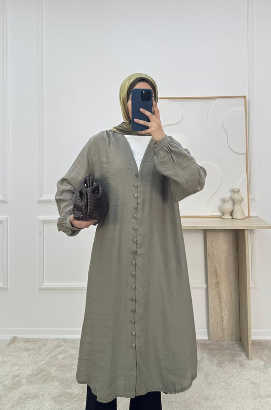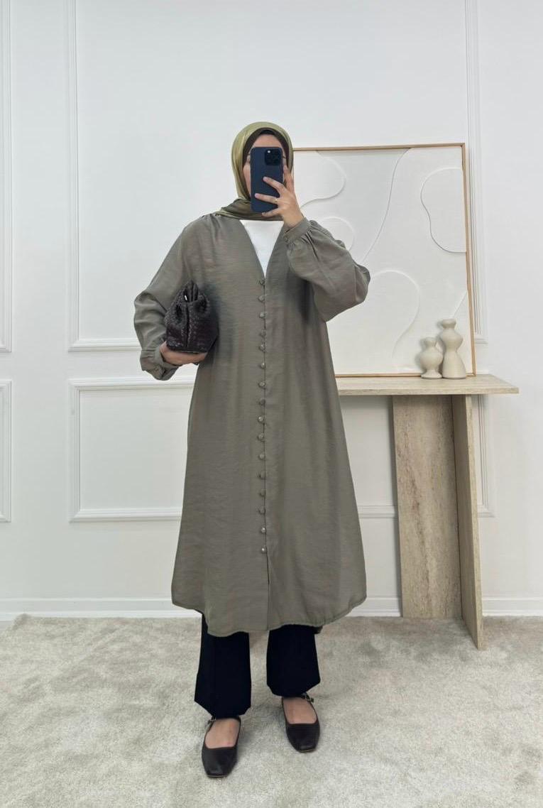 önü düğmeli biyeli modal cupra tunik