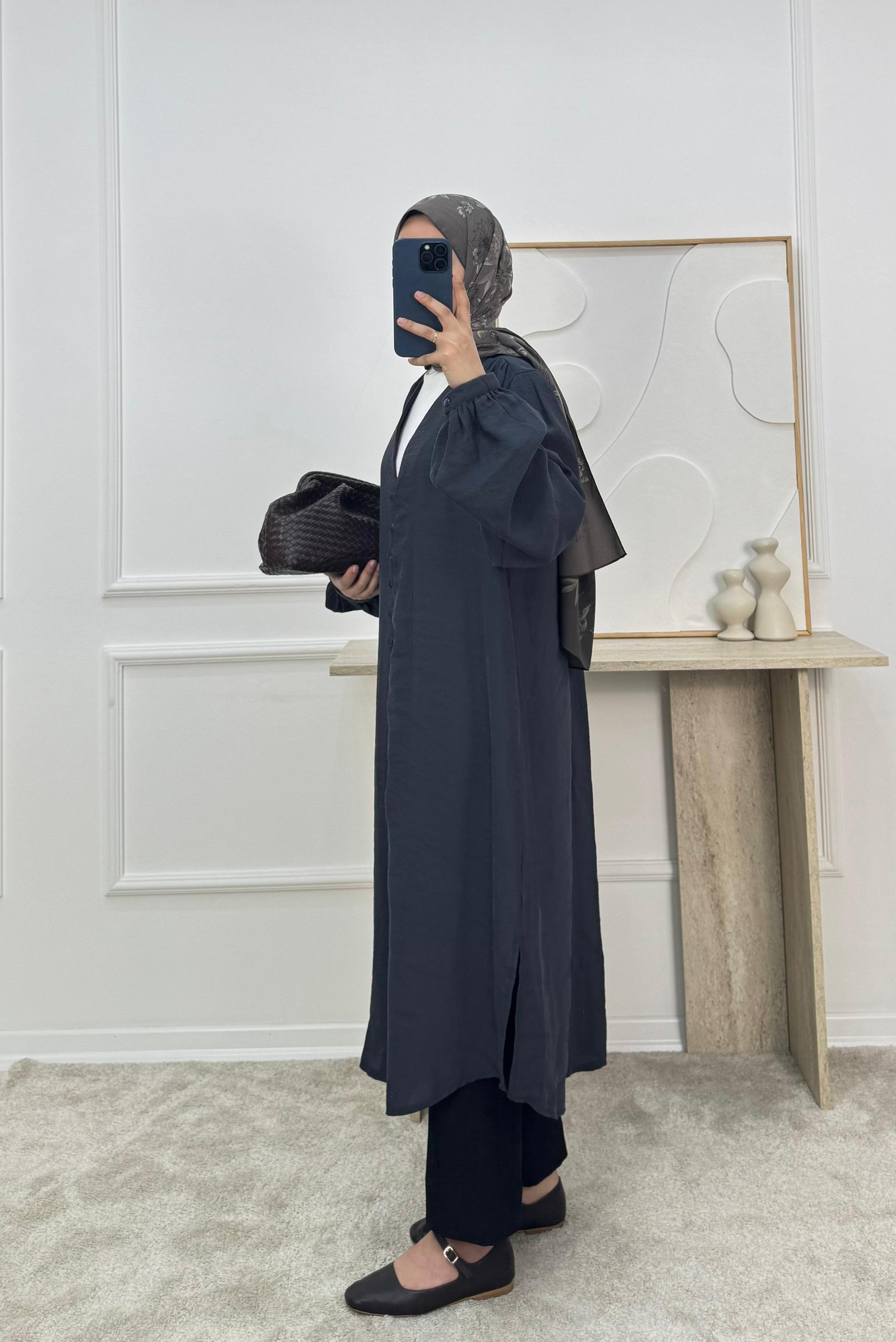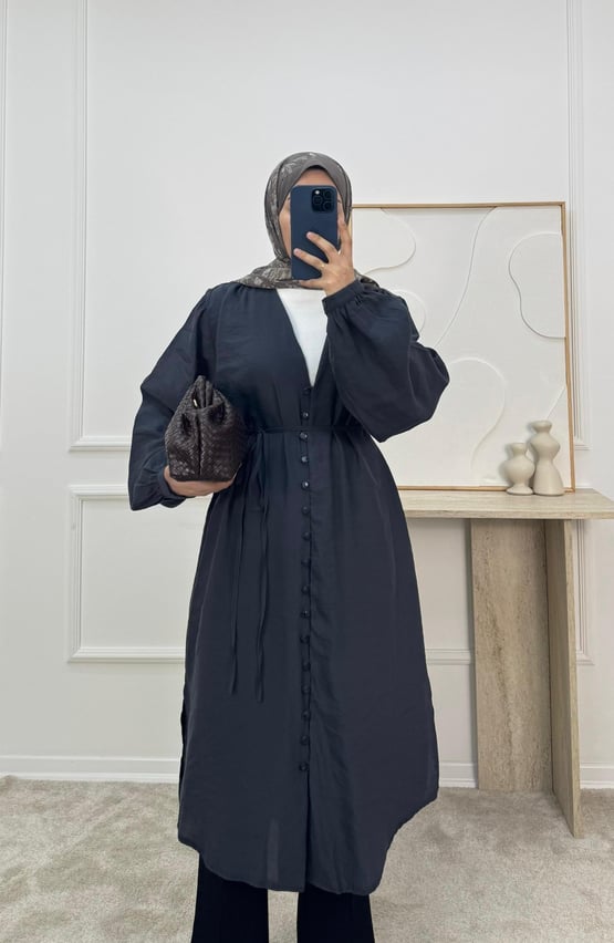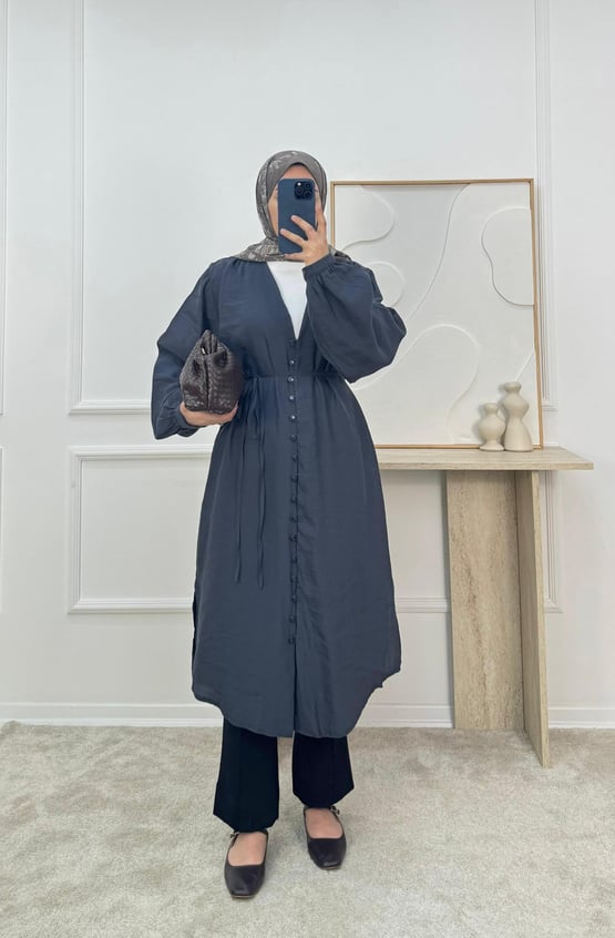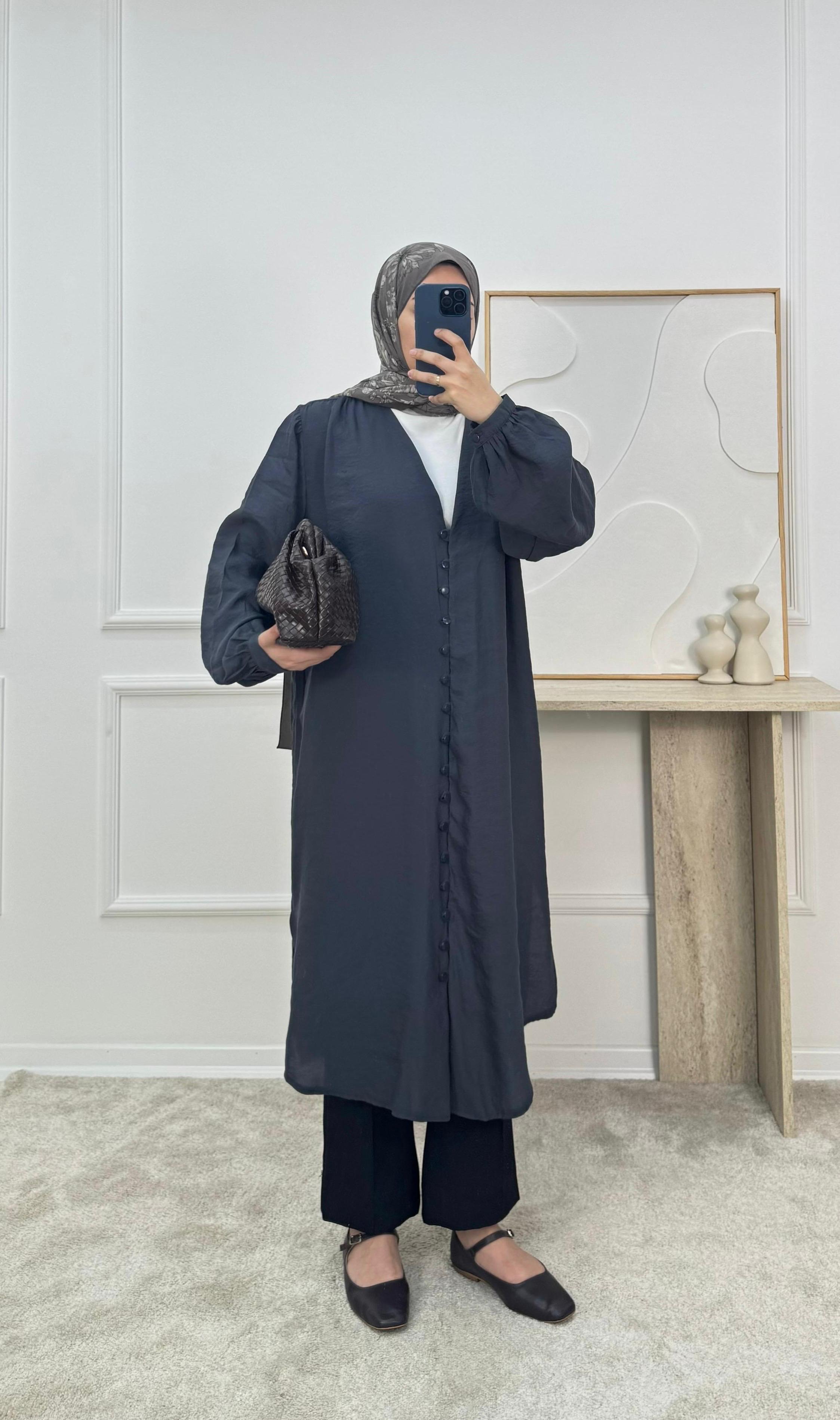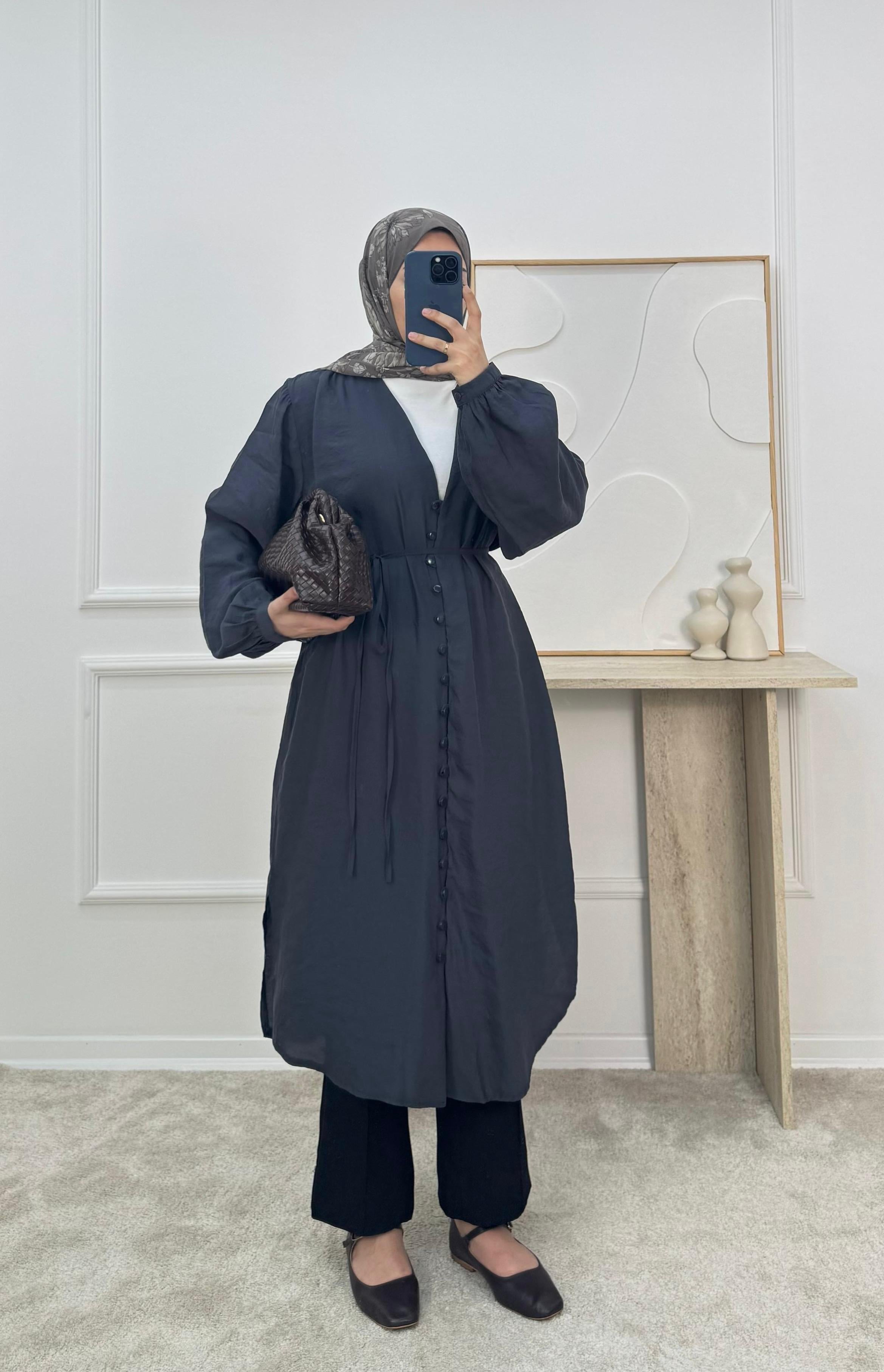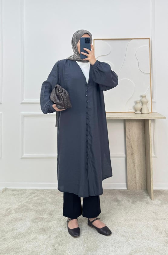 9960-önü düğmeli biyeli modal cupra tunik-füme (9960)