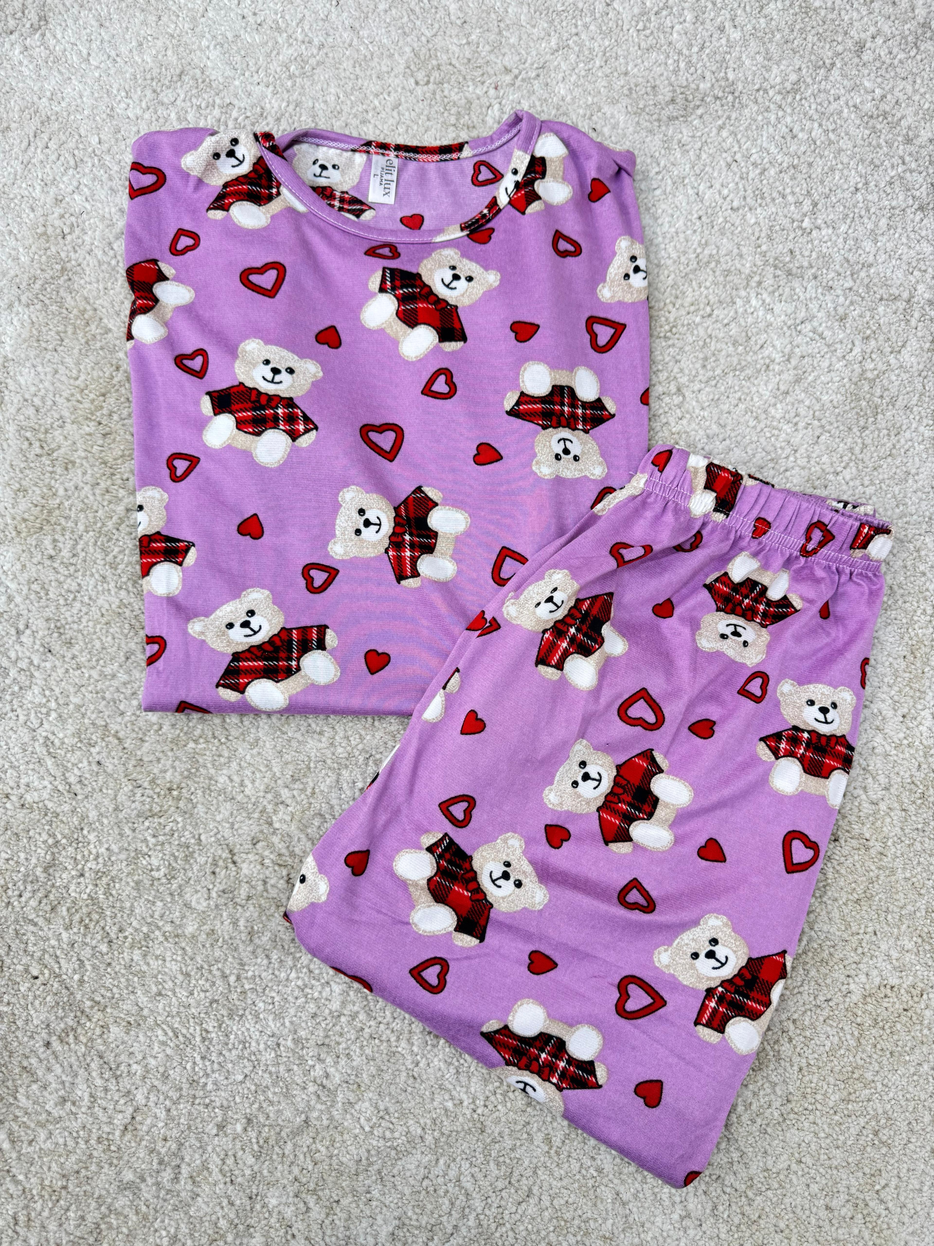 ç0030-milan kumaş kısa kollu ayıcıklı pijama takımı-mor (ç0030)
