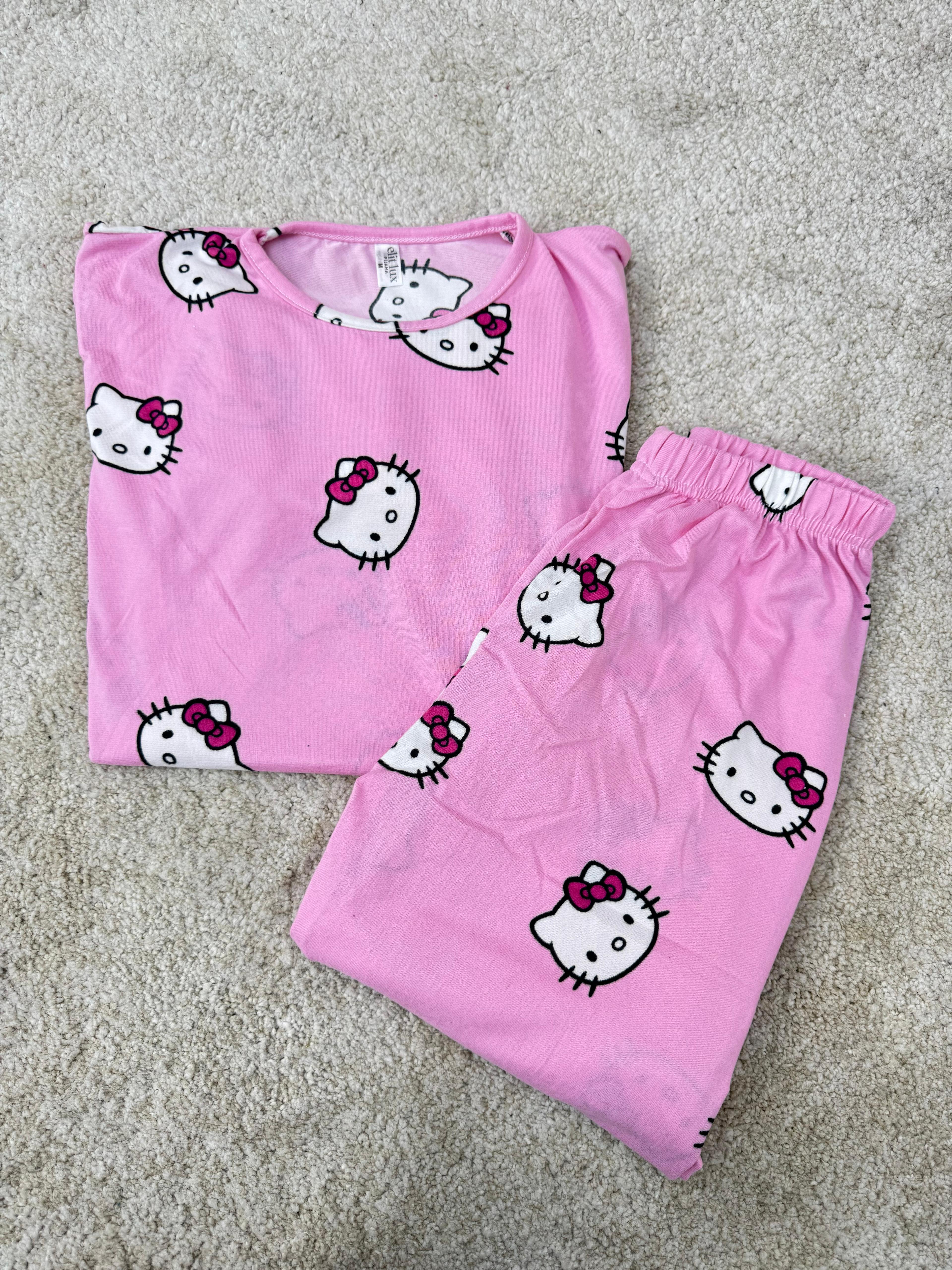 ç0030-milan kumaş kısa kollu hello kity pijama takımı-pembe (ç0030)
