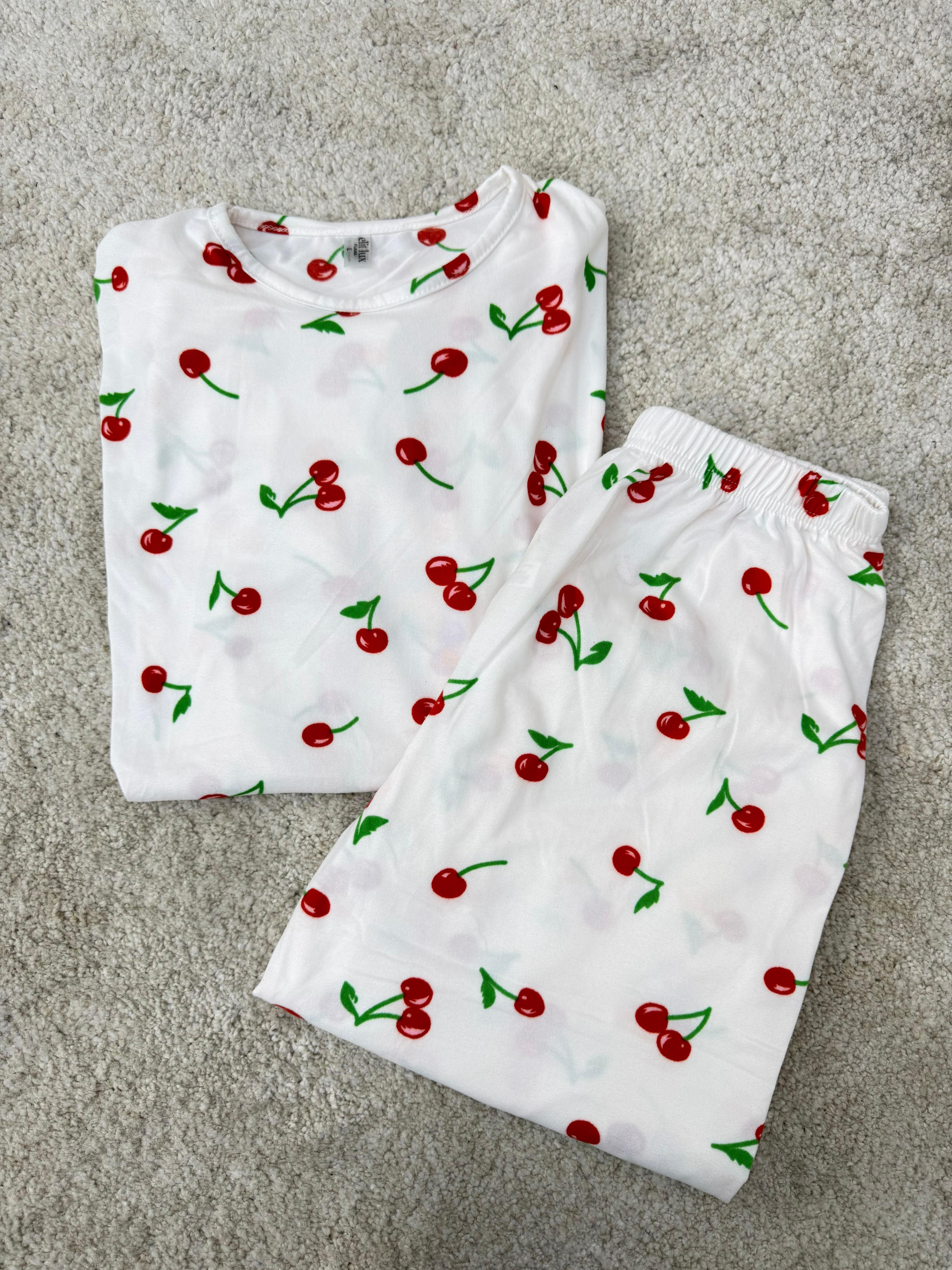 ç0030-milan kumaş kısa kollu kirazlı pijama takımı-beyaz (ç0030)