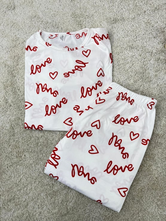 ç0030-milan kumaş kısa kollu love pijama takımı-beyaz (ç0030)