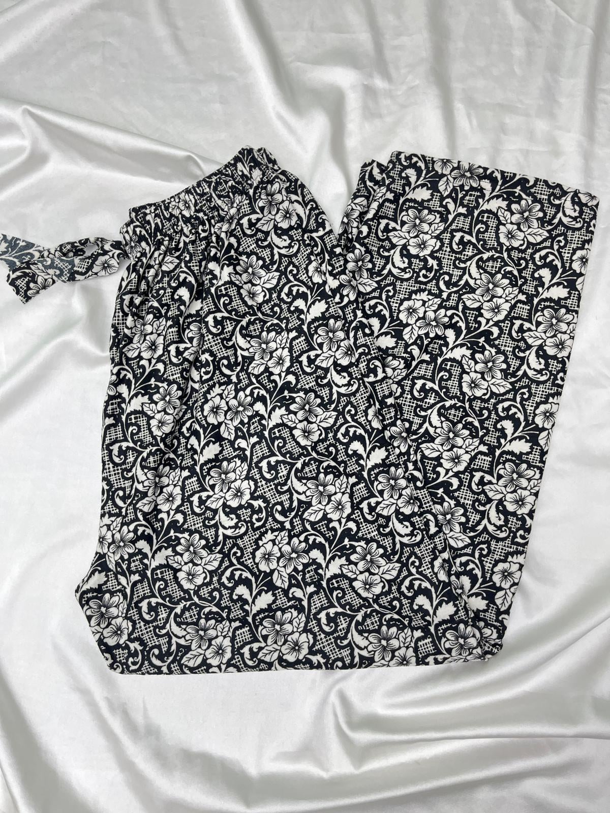 ç0139 - süet kumaş bol paça çiçekli pijama altı - siyah (ç0139)