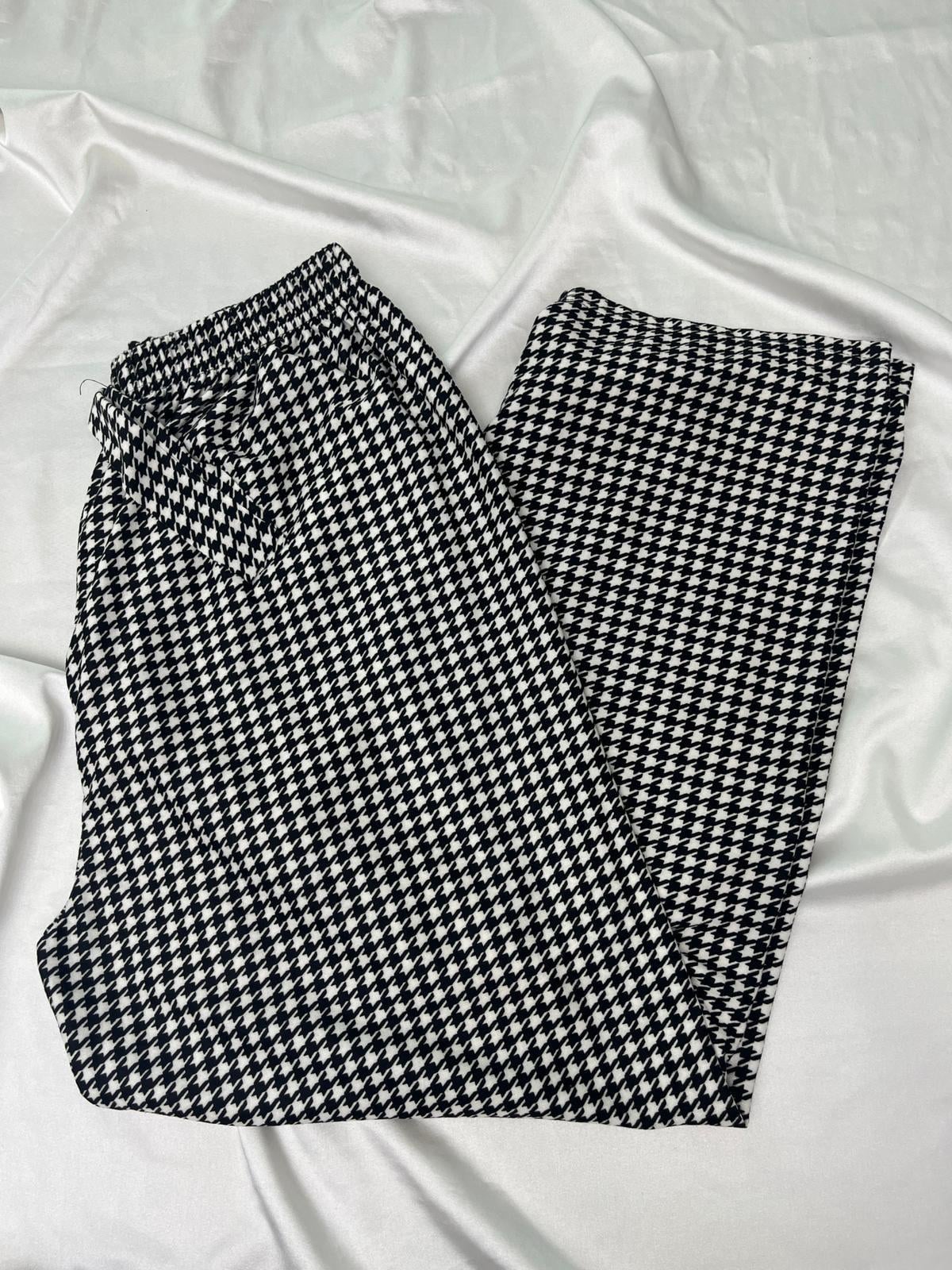 ç0139 - süet kumaş bol paça küçük kareli pijama altı - siyah (ç0139)