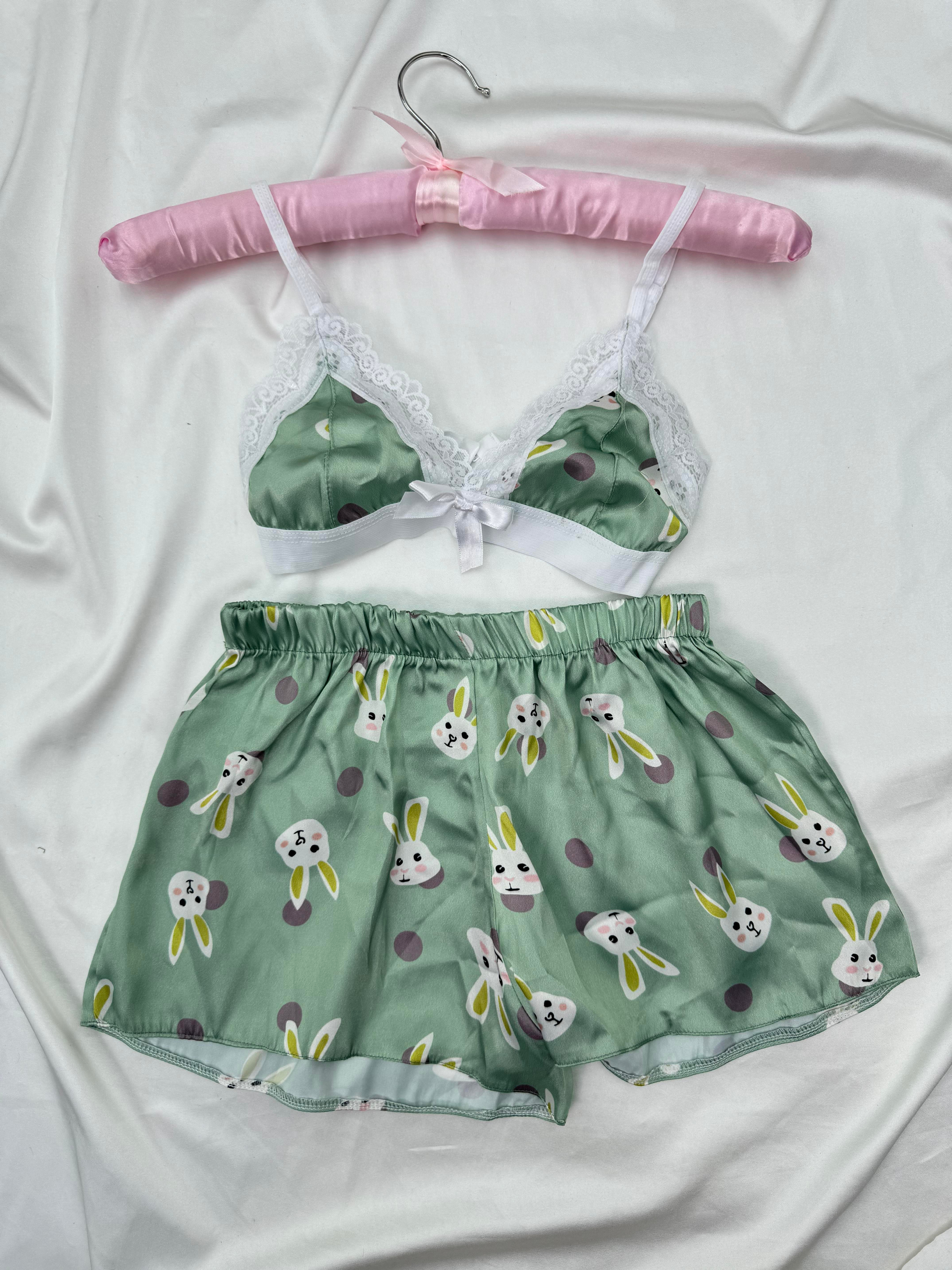 Ç0149 - SATEN TAVŞAN DESENLI ŞORTLU SÜTYEN TAKIMI - SU YEŞİLİ (Ç0149)