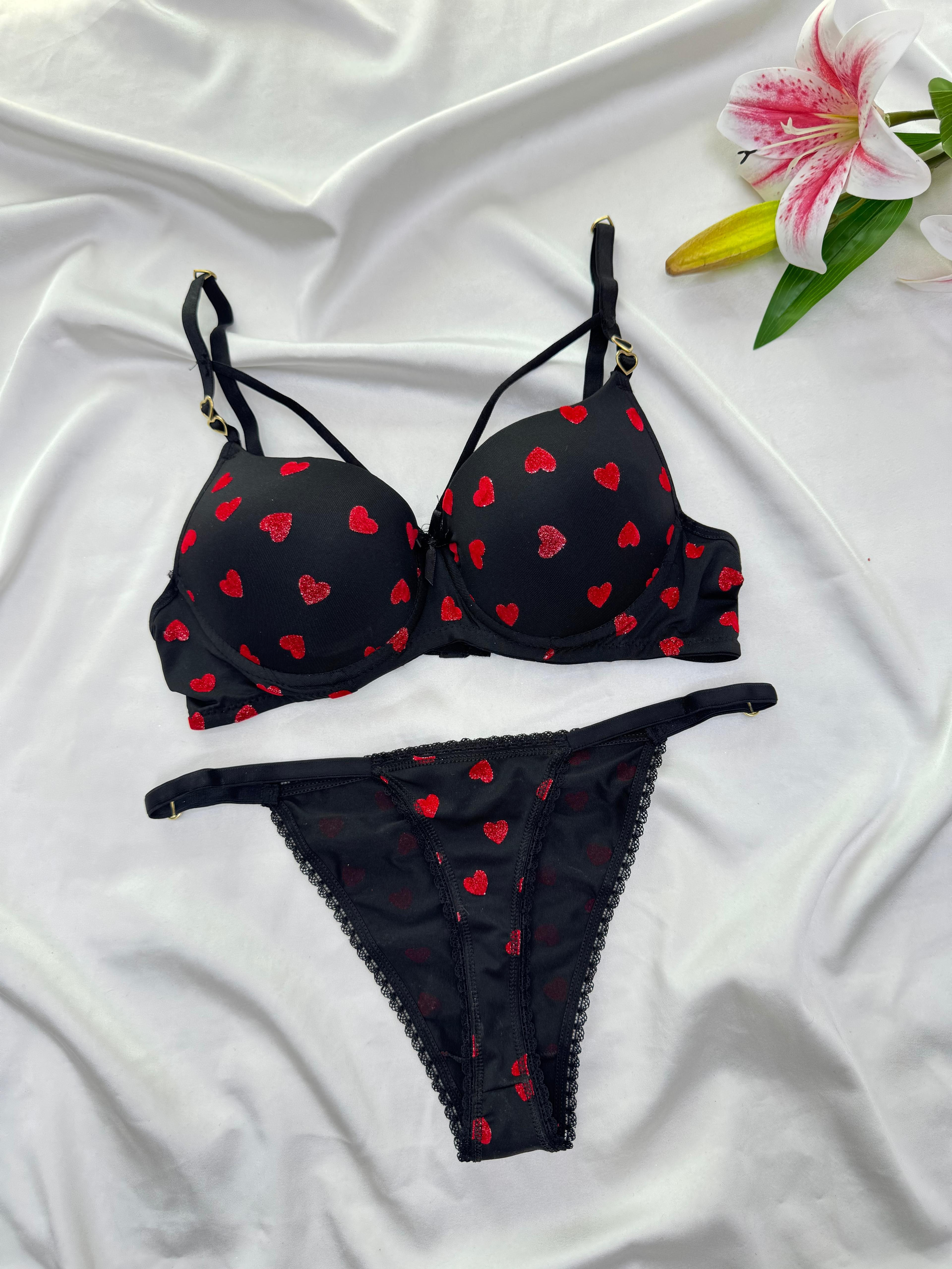 ç0695-destekli kalp detaylı çapraz ipli sütyen takımı- siyah (ç0695)