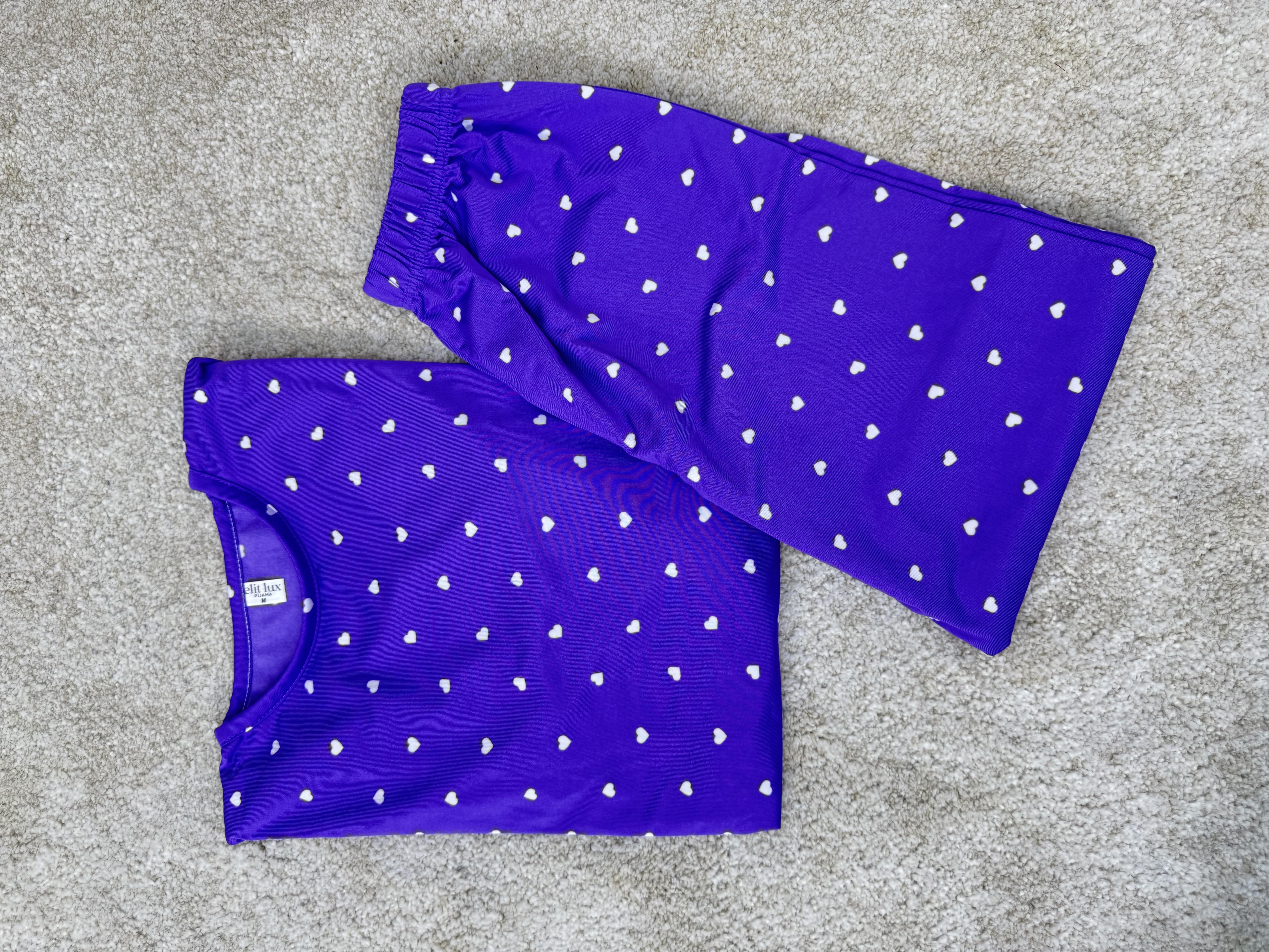 Ç1196-Milan kumaş uzun kollu kalpli pijama takımı-mor (Ç1196)