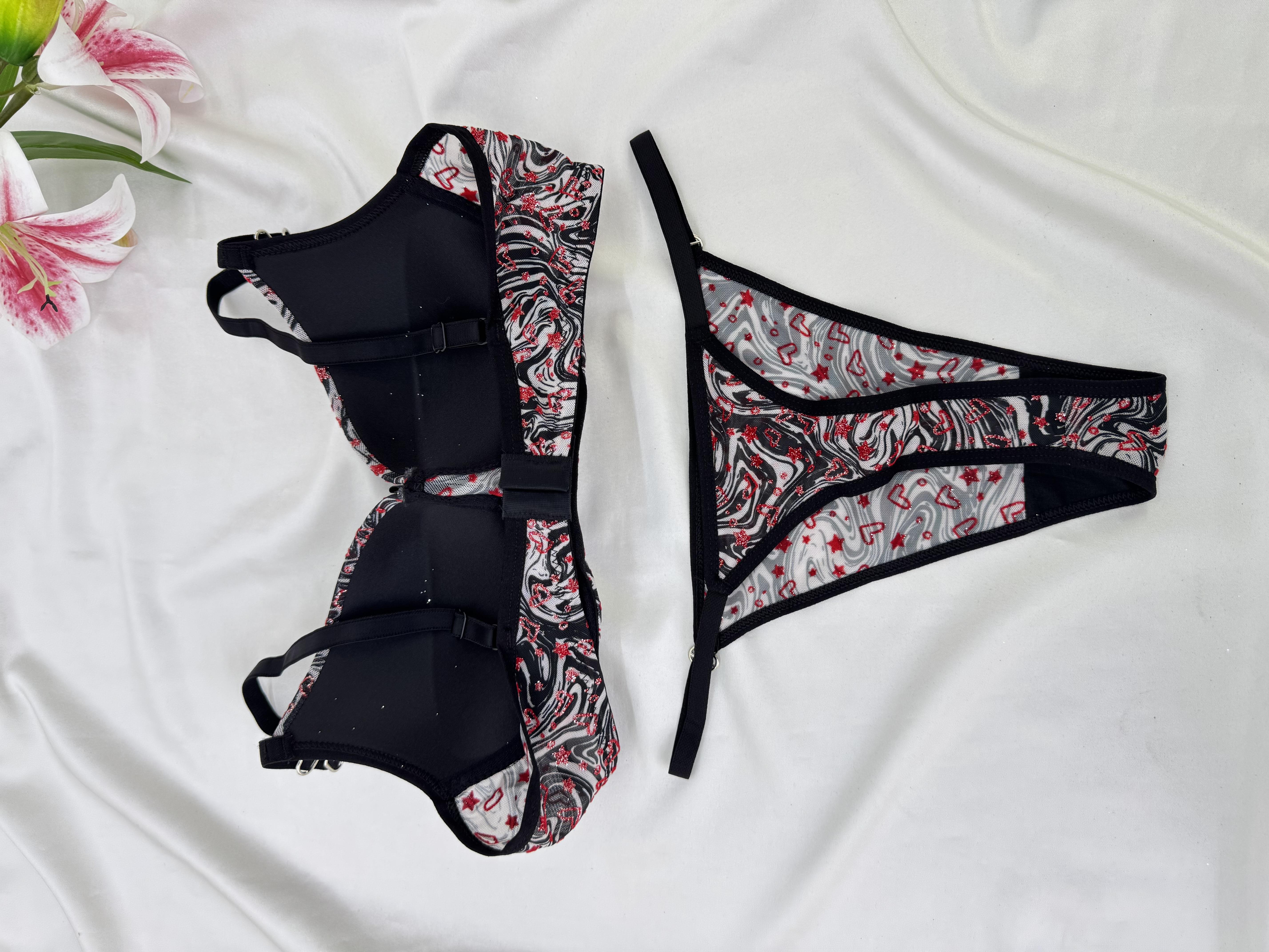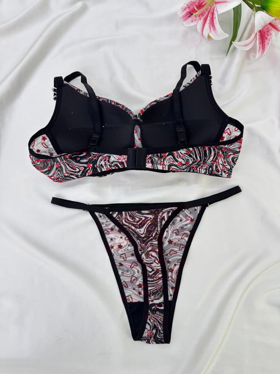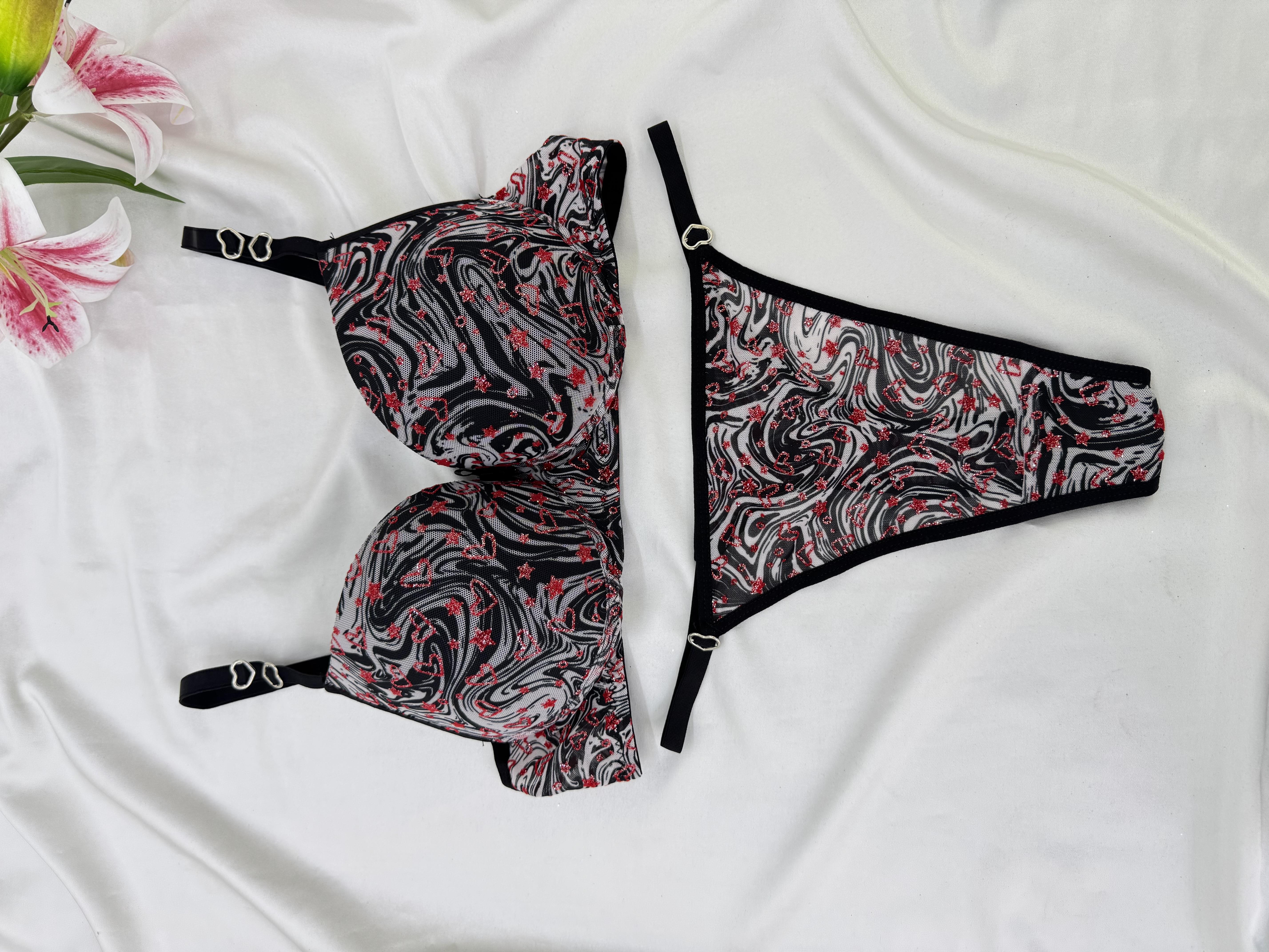 Ç1300 DESTEKLİ KALPLİ ZEBRA DESEN SÜTYEN TAKIMI-GRİ (Ç1300)
