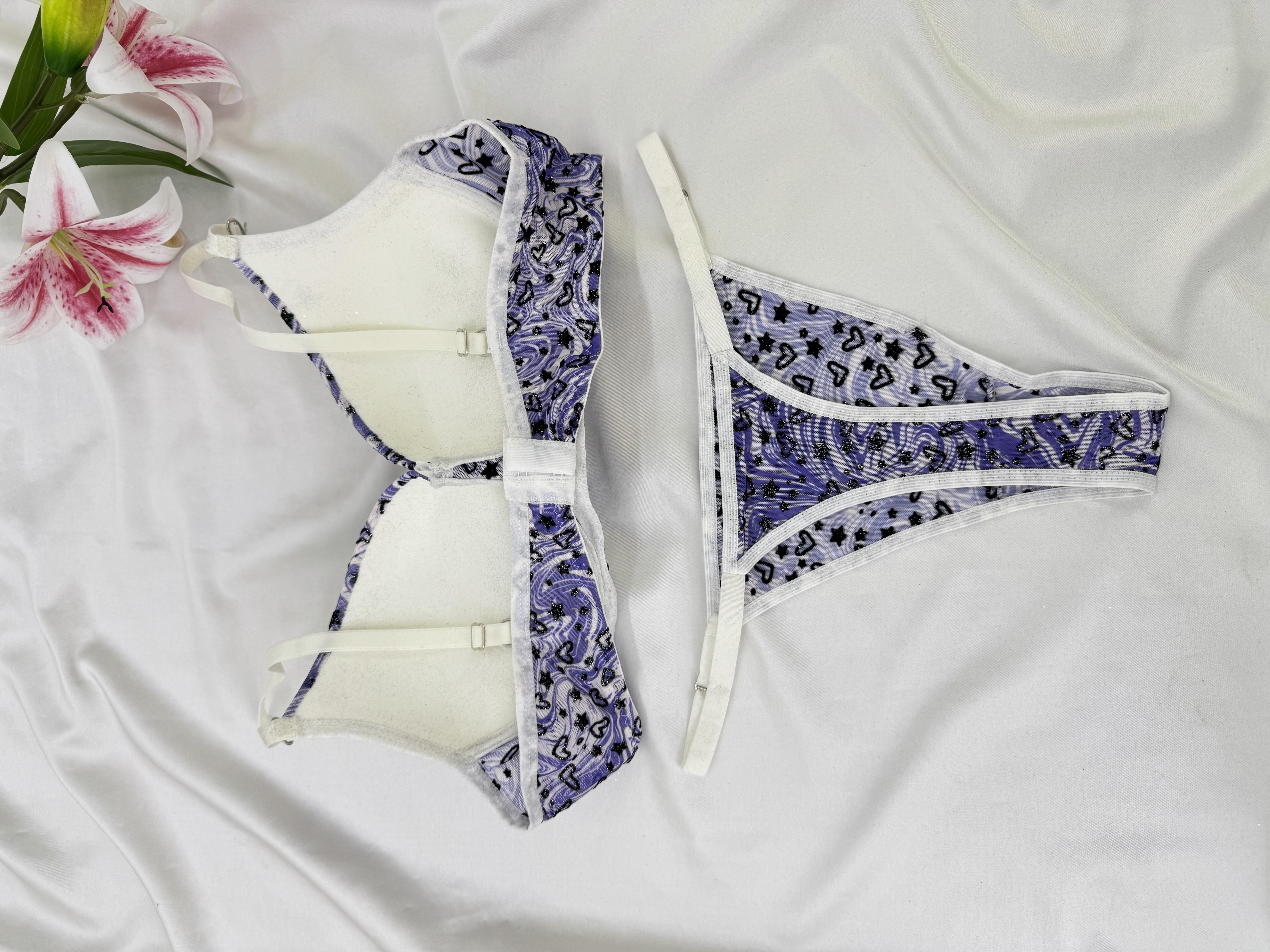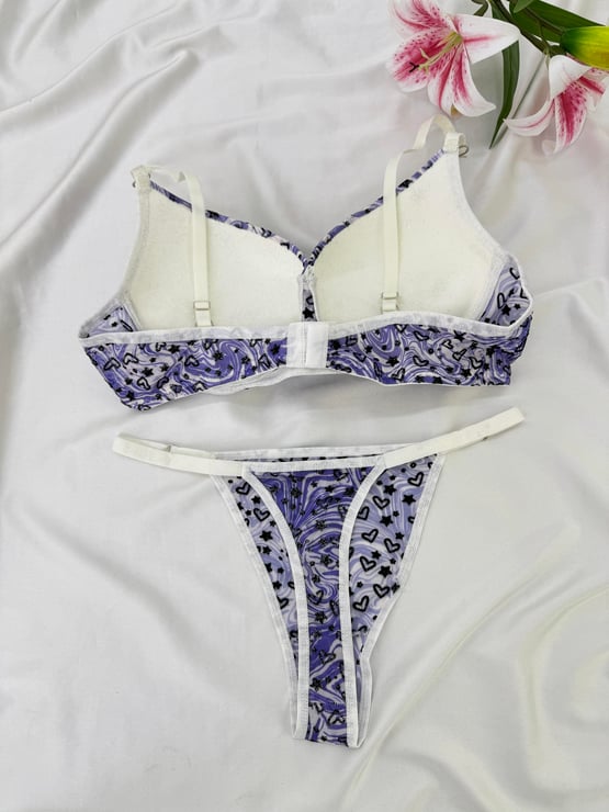 Ç1300 DESTEKLİ KALPLİ ZEBRA DESEN SÜTYEN TAKIMI-LİLA (Ç1300)
