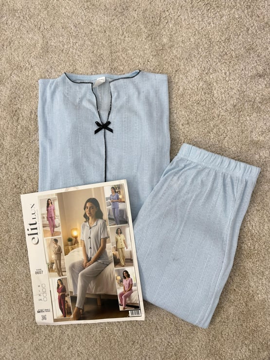ç1315-zincir kumaş önü fiyonklu pijama takımı-bebe mavi (ç1315)