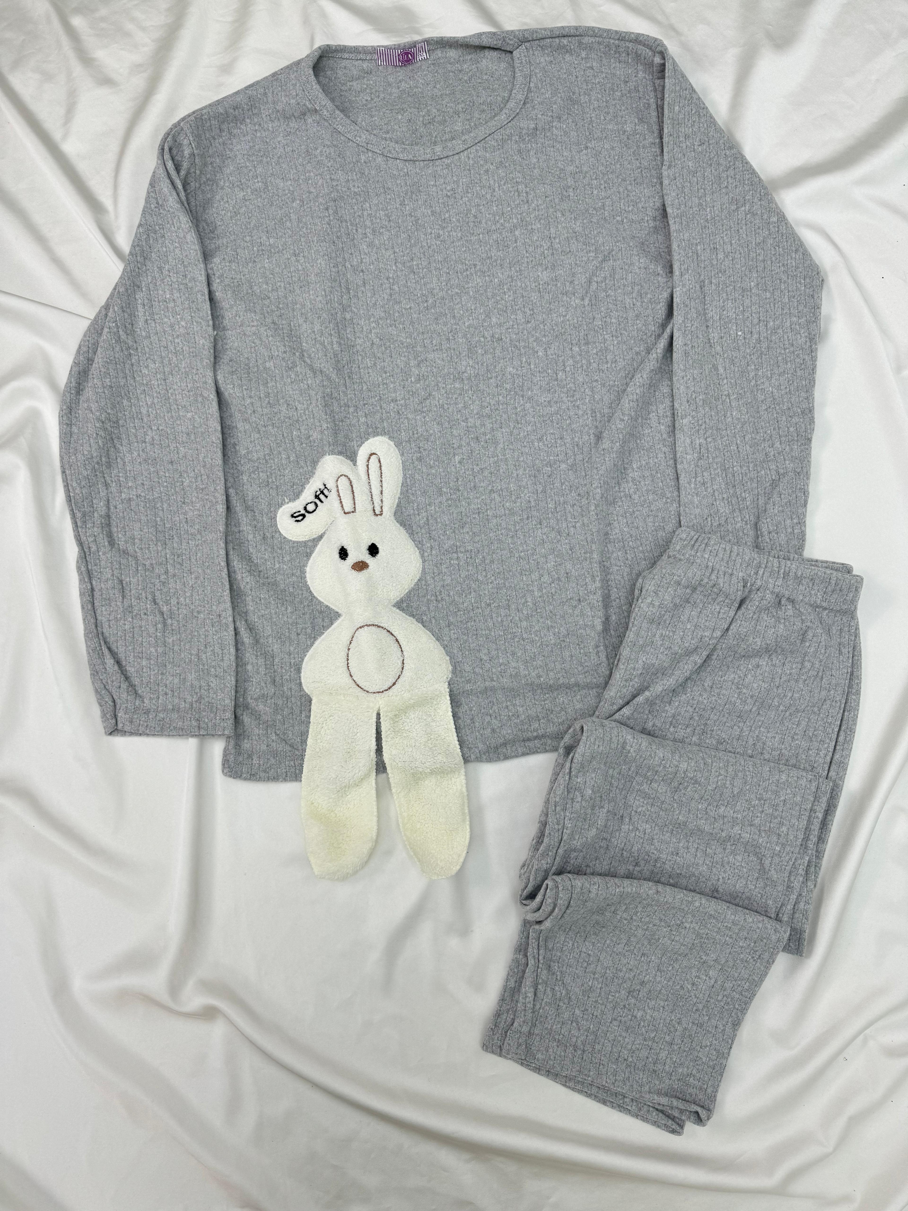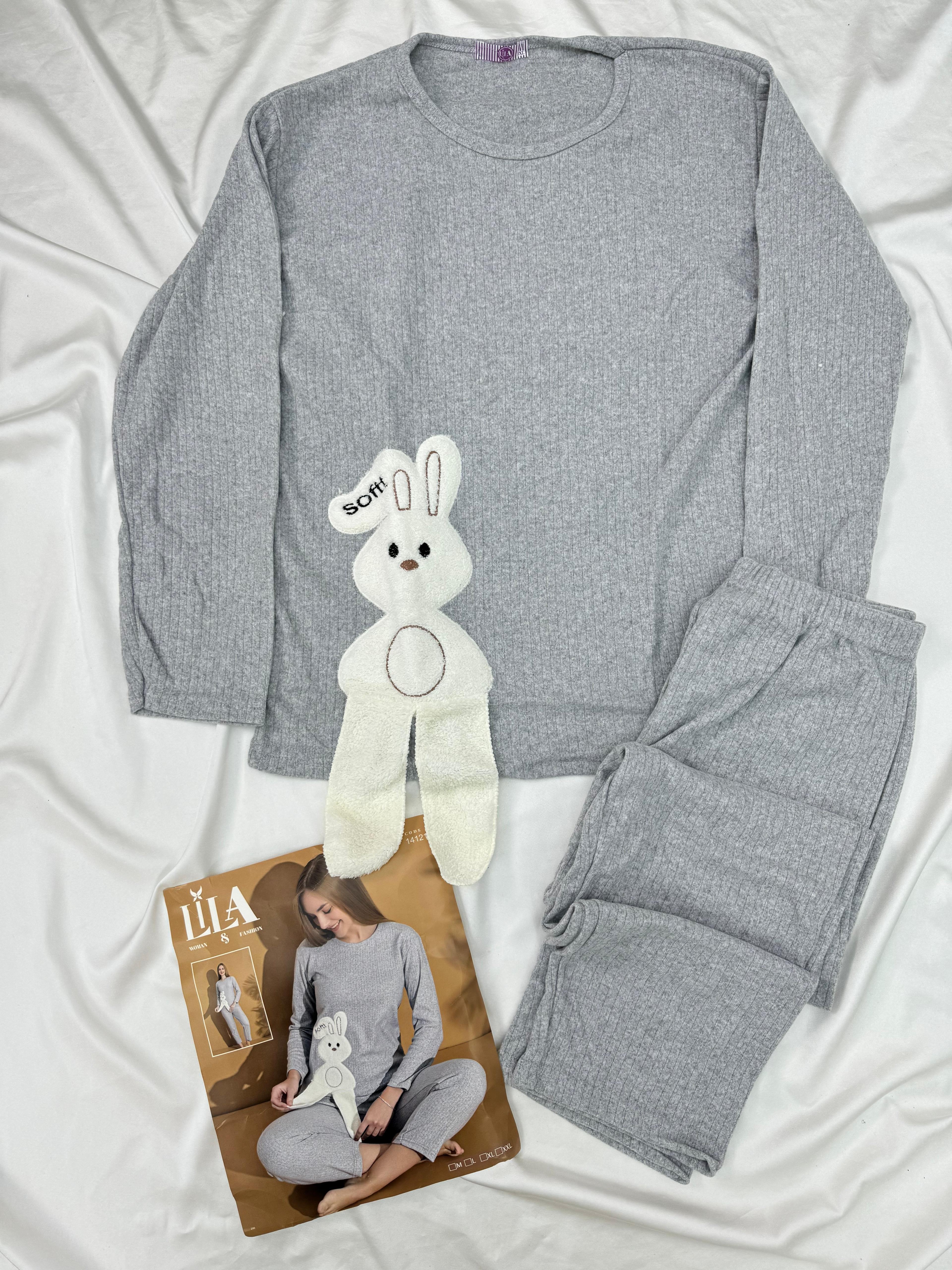 Ç14121 - UZUN KOLLU TAVŞAN DESENLİ PİJAMA TAKIMI - GRİ (Ç14121)