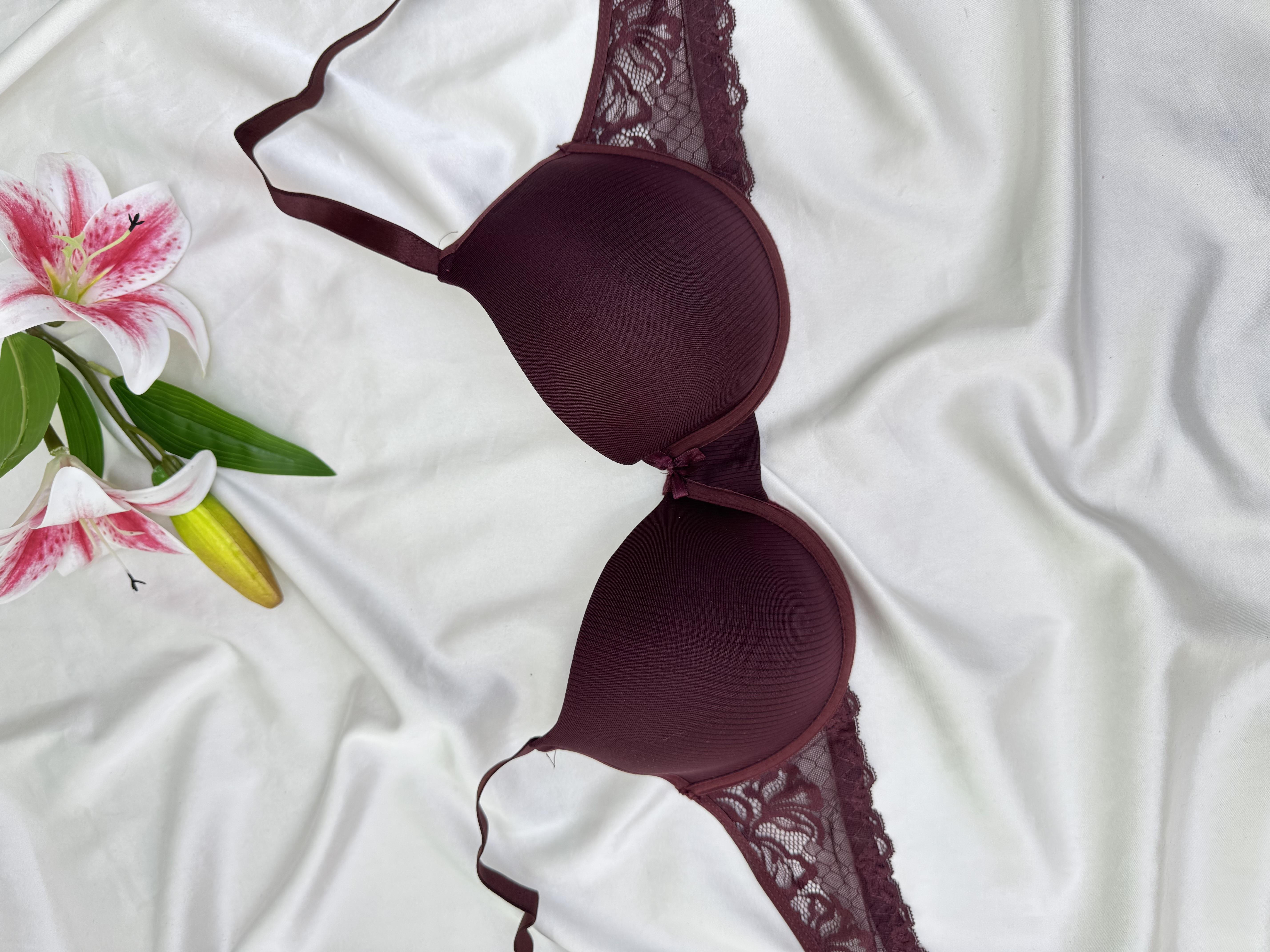 Ç144 ÇİZGİ DETAYLI B CUP DOLGUSUZ SÜTYEN- MÜRDÜM (Ç144)