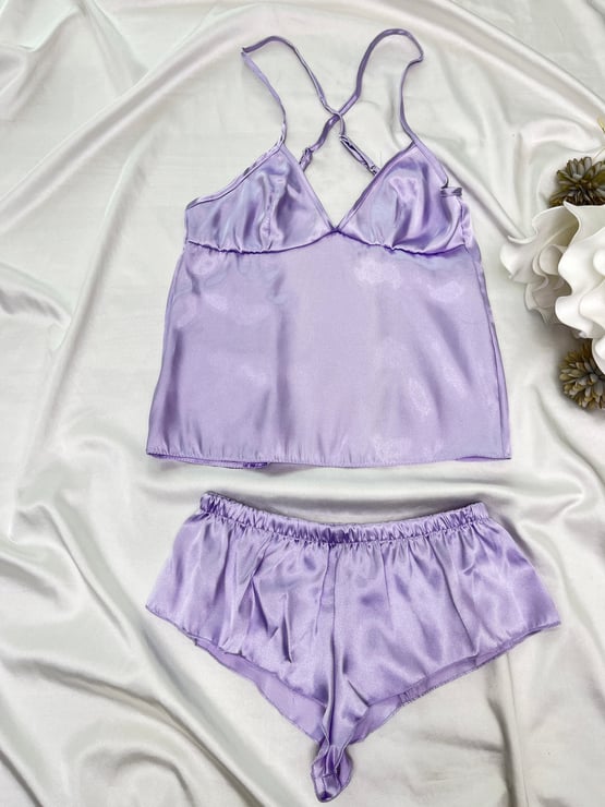 ç1455 - mini şortlu ip askılı dekolteli takım - lila (ç1455)