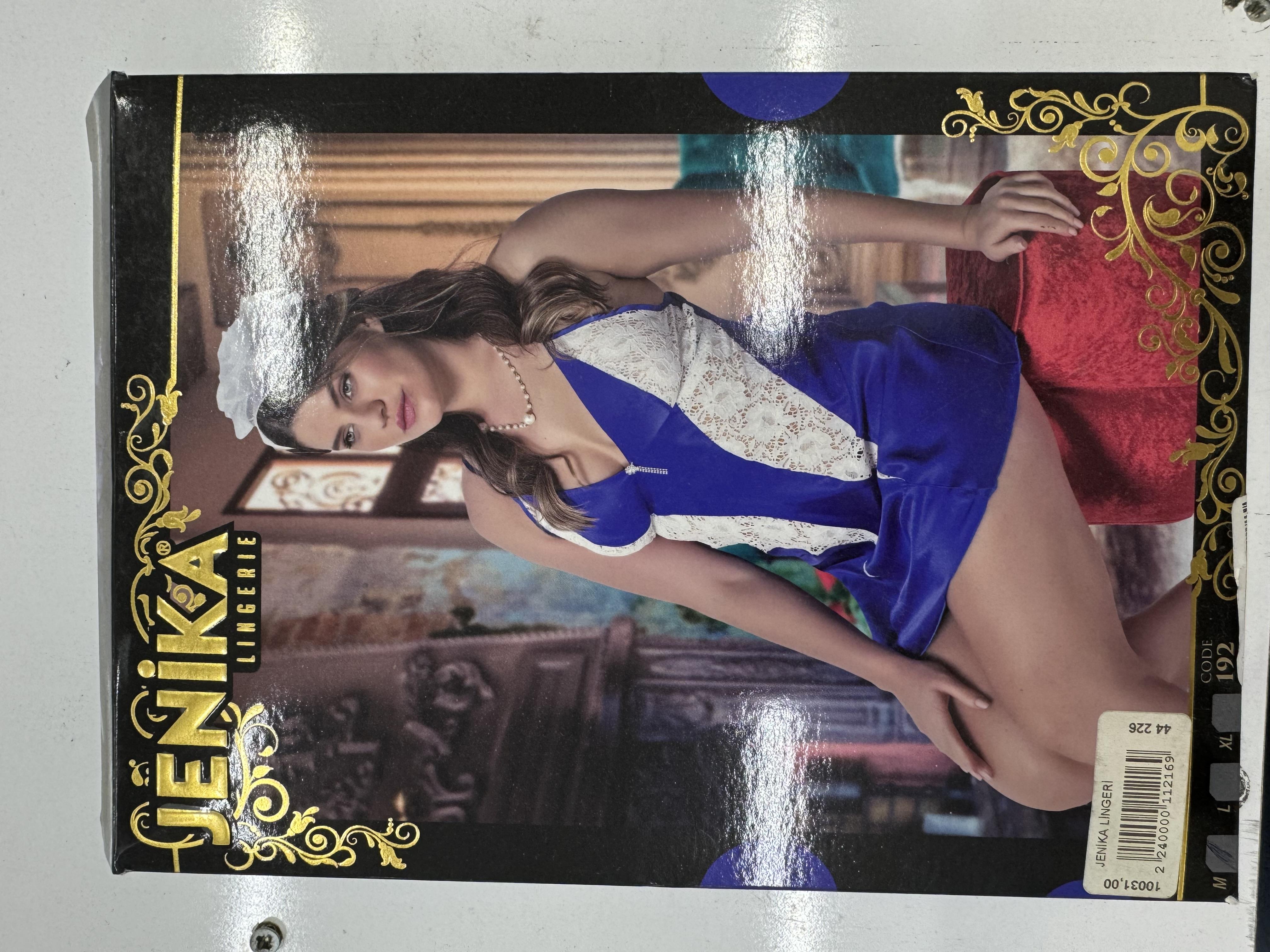 Ç192 Beyaz Dantelli Mavi Saten Gecelik (Ç192)