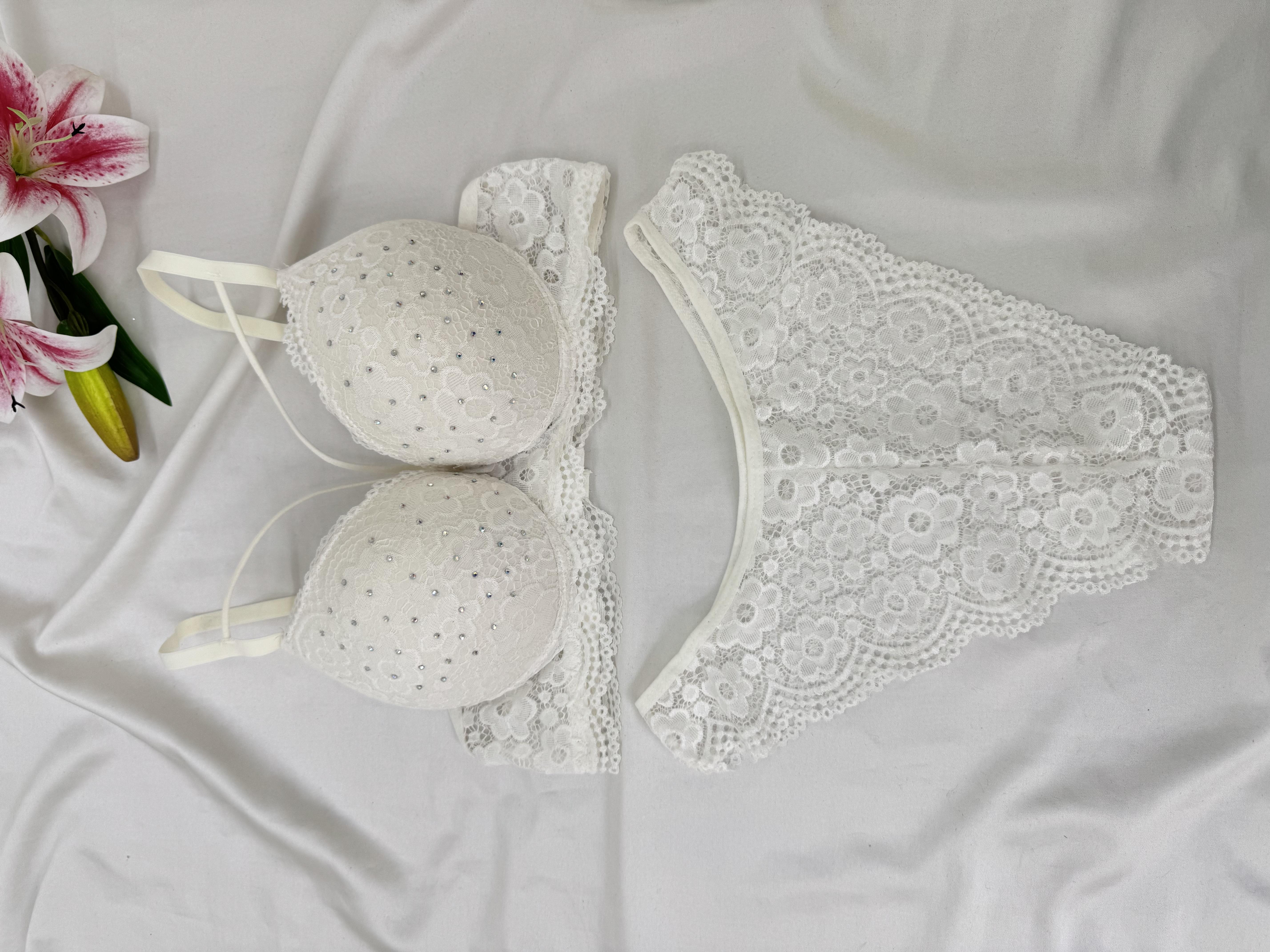 Ç1961 DESTEKLİ ÇAPRAZ TAŞLI SÜTYEN TAKIMI-BEYAZ (Ç1961)