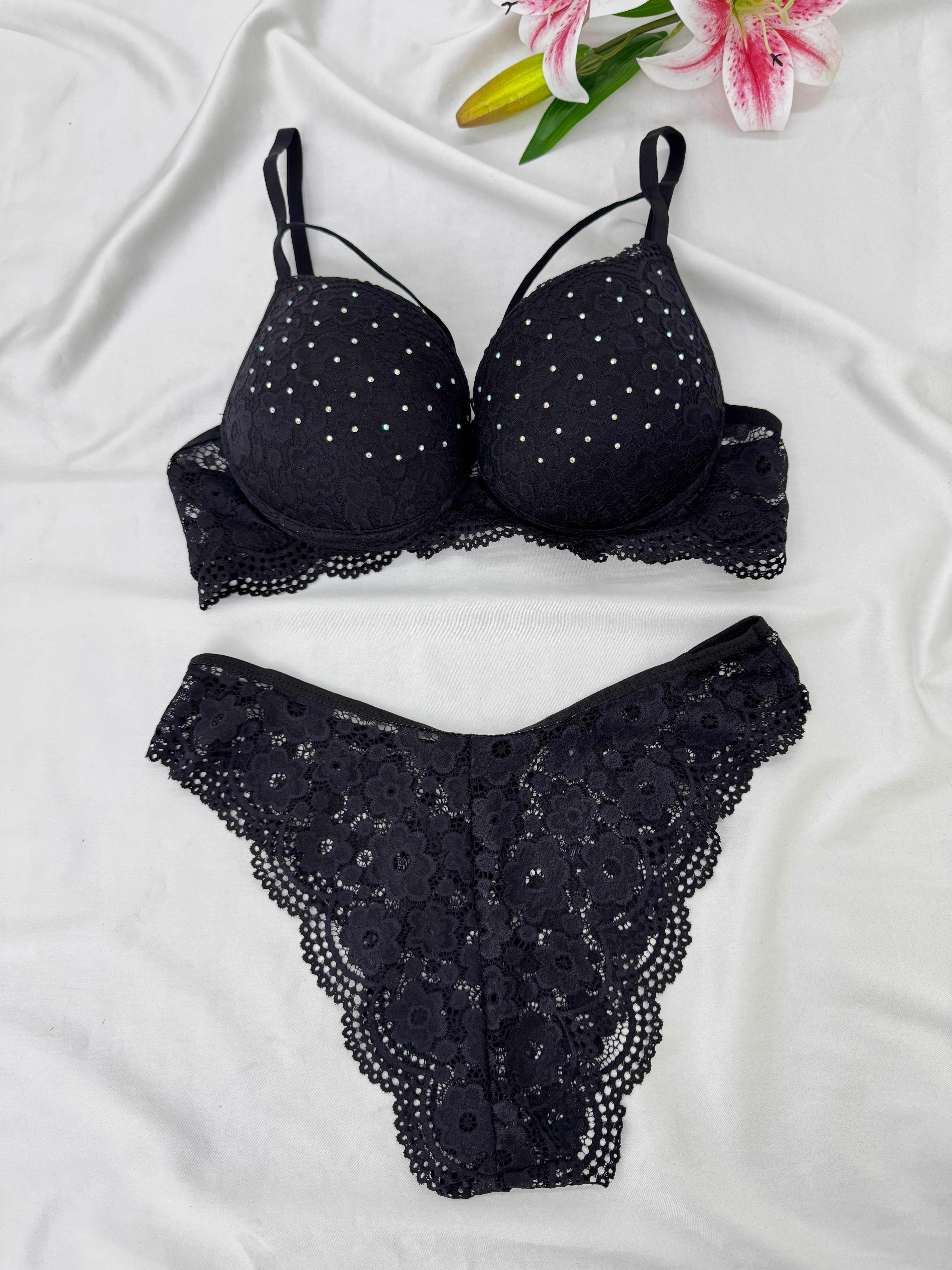 Ç1961 DESTEKLİ ÇAPRAZ TAŞLI SÜTYEN TAKIMI-SİYAH (Ç1961)