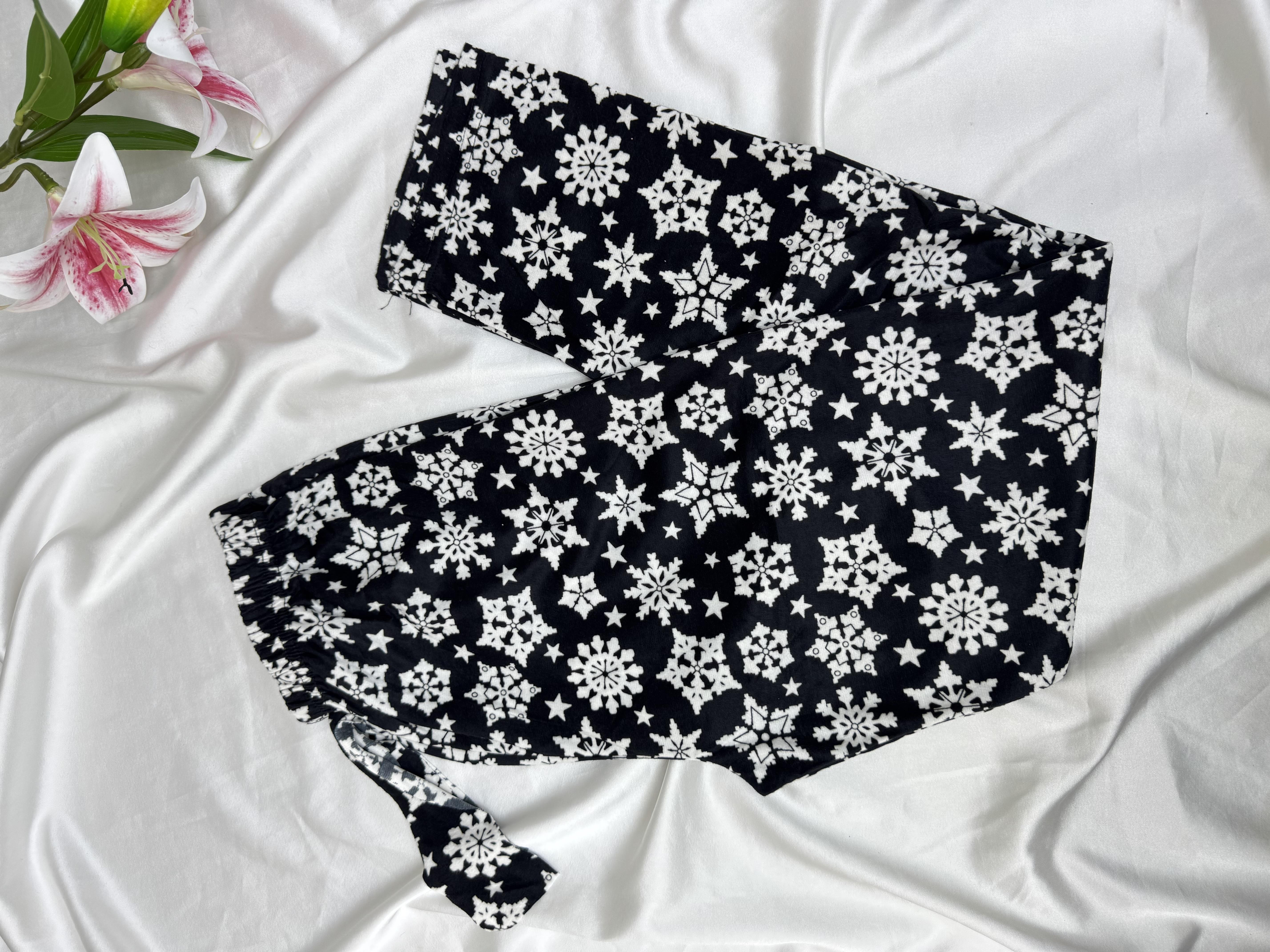 Ç2028 - süet kumaş büyük kar taneli pijama altı - siyah (Ç2028)