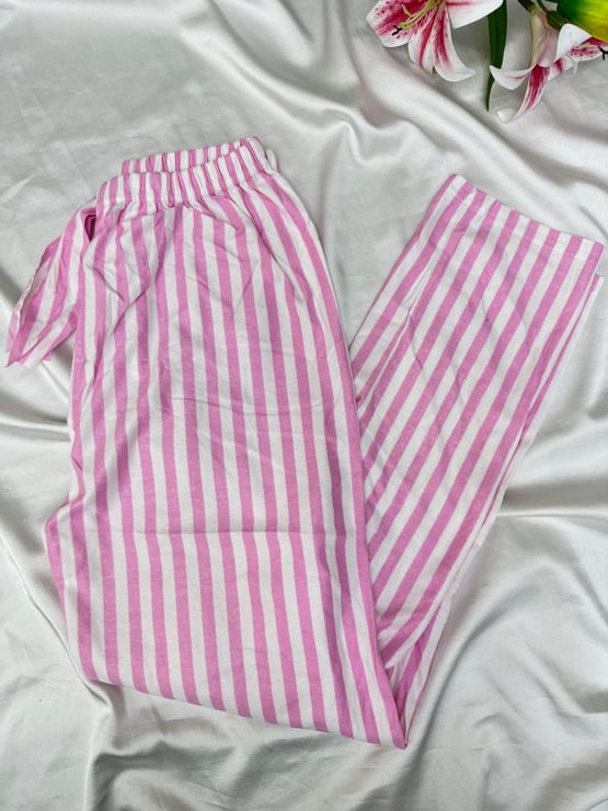 Ç2028 - süet kumaş çizgili pijama altı-pembe (Ç2028)