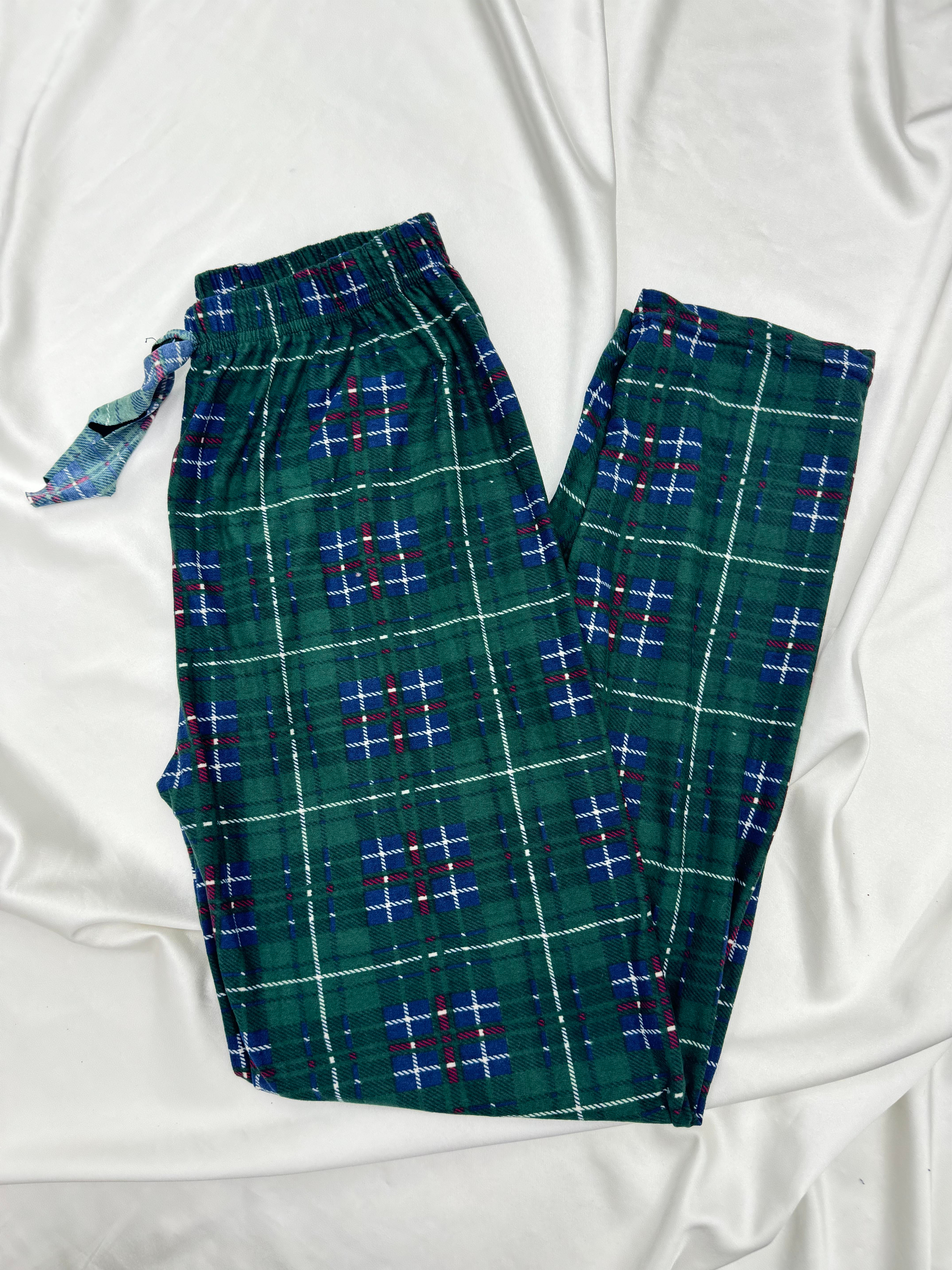 Ç2028 - süet kumaş lacivert kareli pijama altı - KOYU YEŞİL (Ç2028)
