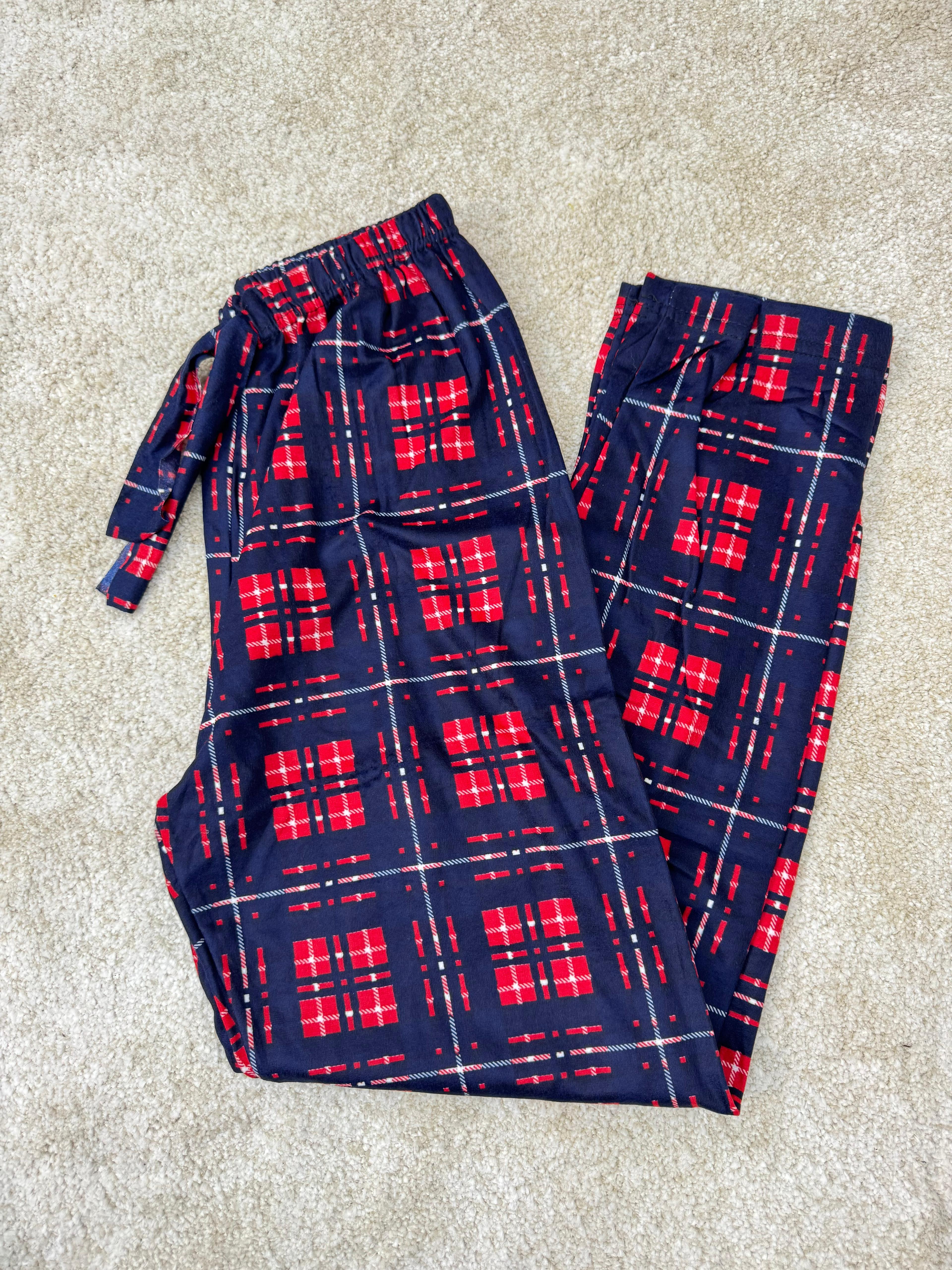 Ç2028 - süet kumaş siyah-kırmızı kareli pijama altı (Ç2028)
