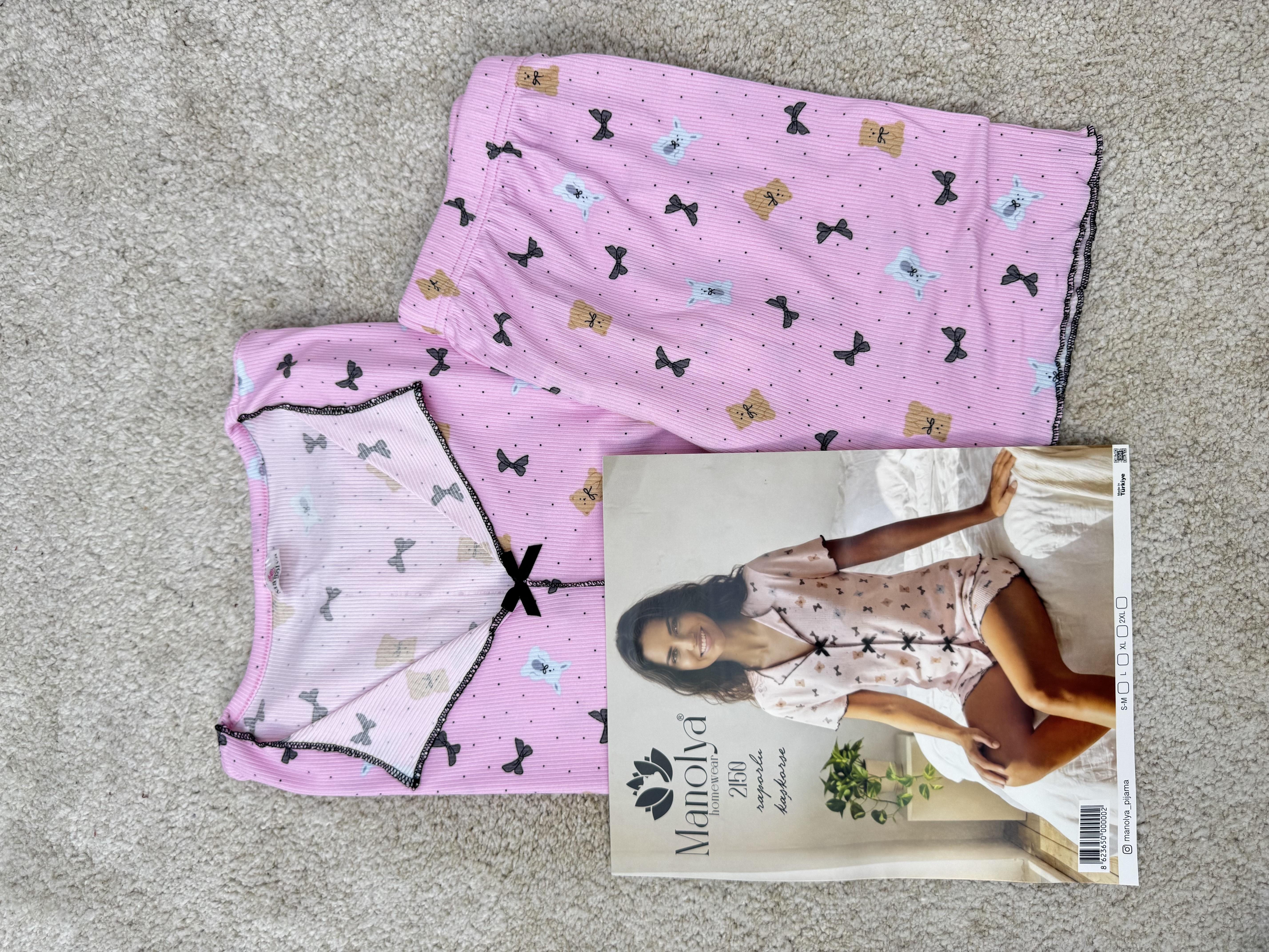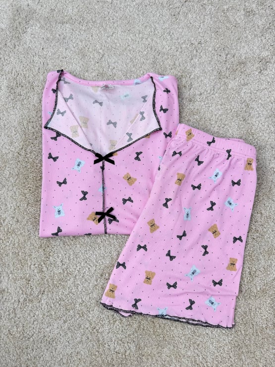 ç2150-raporlu kaşkorse şortlu ayıcıklı pijama takımı-pudra (ç2150)