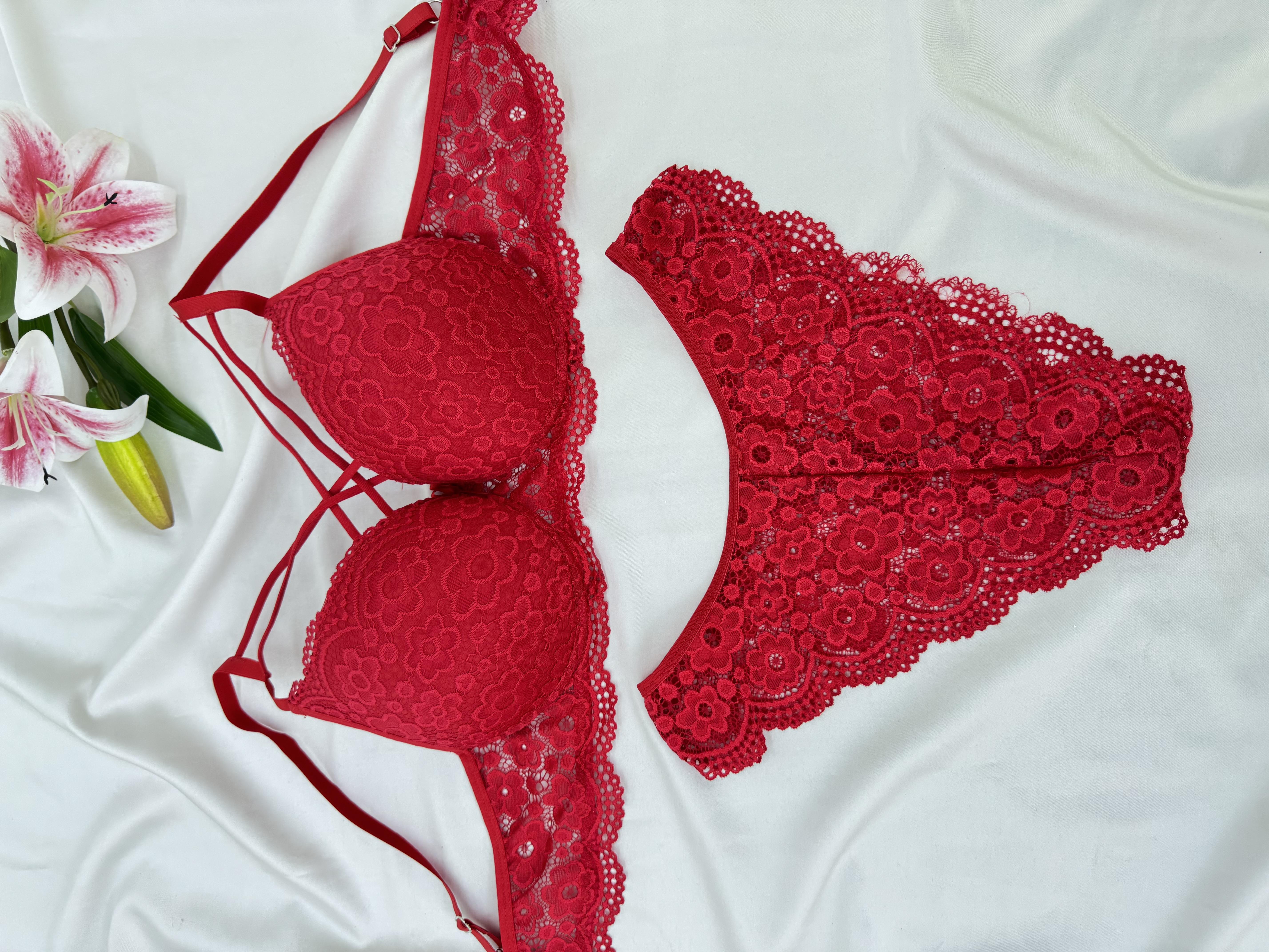 Ç2154 DESTEKLİ ÇAPRAZ DANTELLİ SÜTYEN TAKIMI-KIRMIZI (Ç2154)